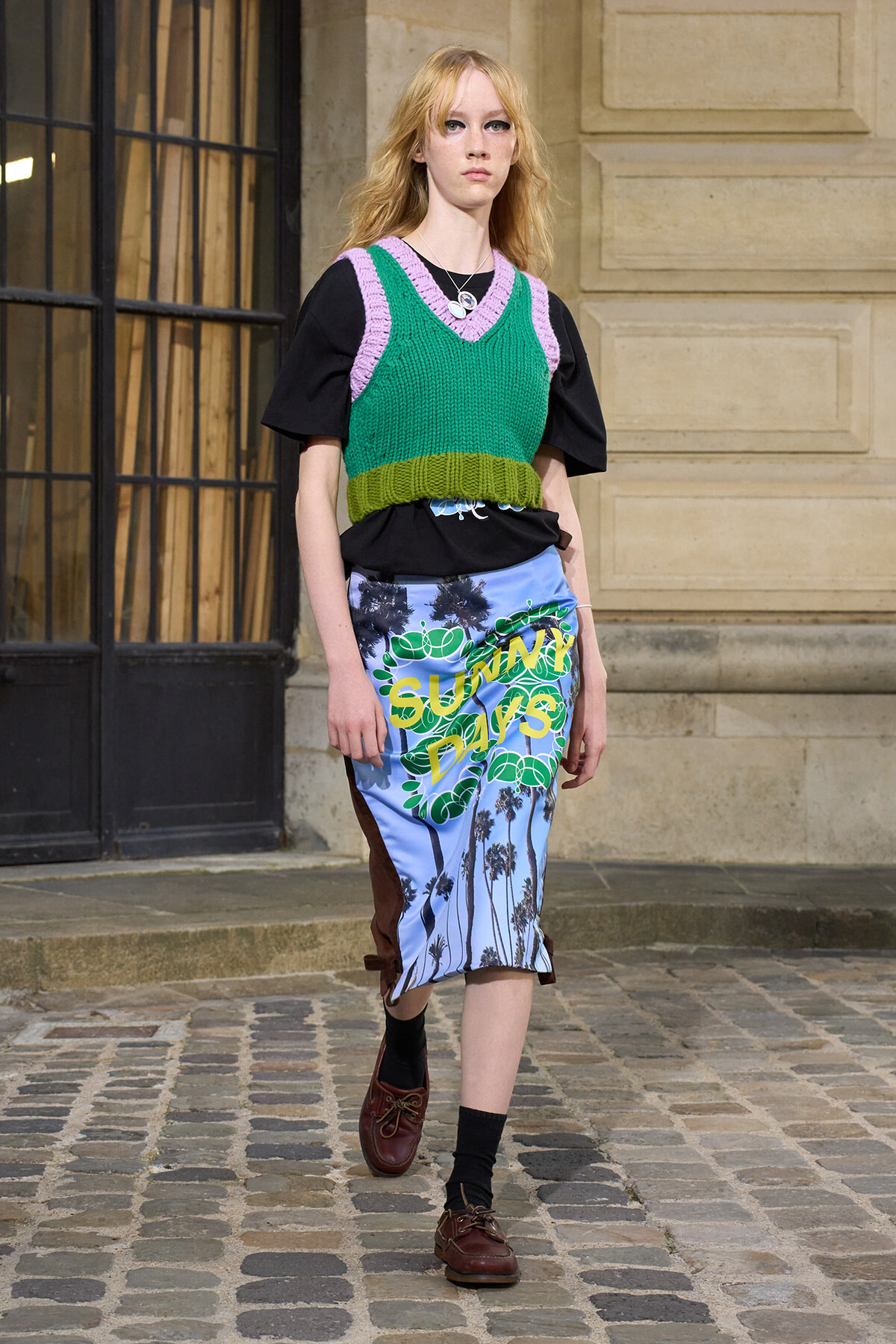 レトロな水着やパレオをアレンジしたリゾートドレス、ウェットスーツ素材のスリムパンツ、ハイビスカスやヤシの木のトロピカルプリントなど、夏のビーチを思わせるサマースタイルがランウェイを席巻。昨夏の猛暑が要因? いえ、それよりも目を向けるべきはその楽観的なエネルギー。都会にいてもヴァカンスの幸せ気分を忘れないで、というメッセージが聞こえてくる。