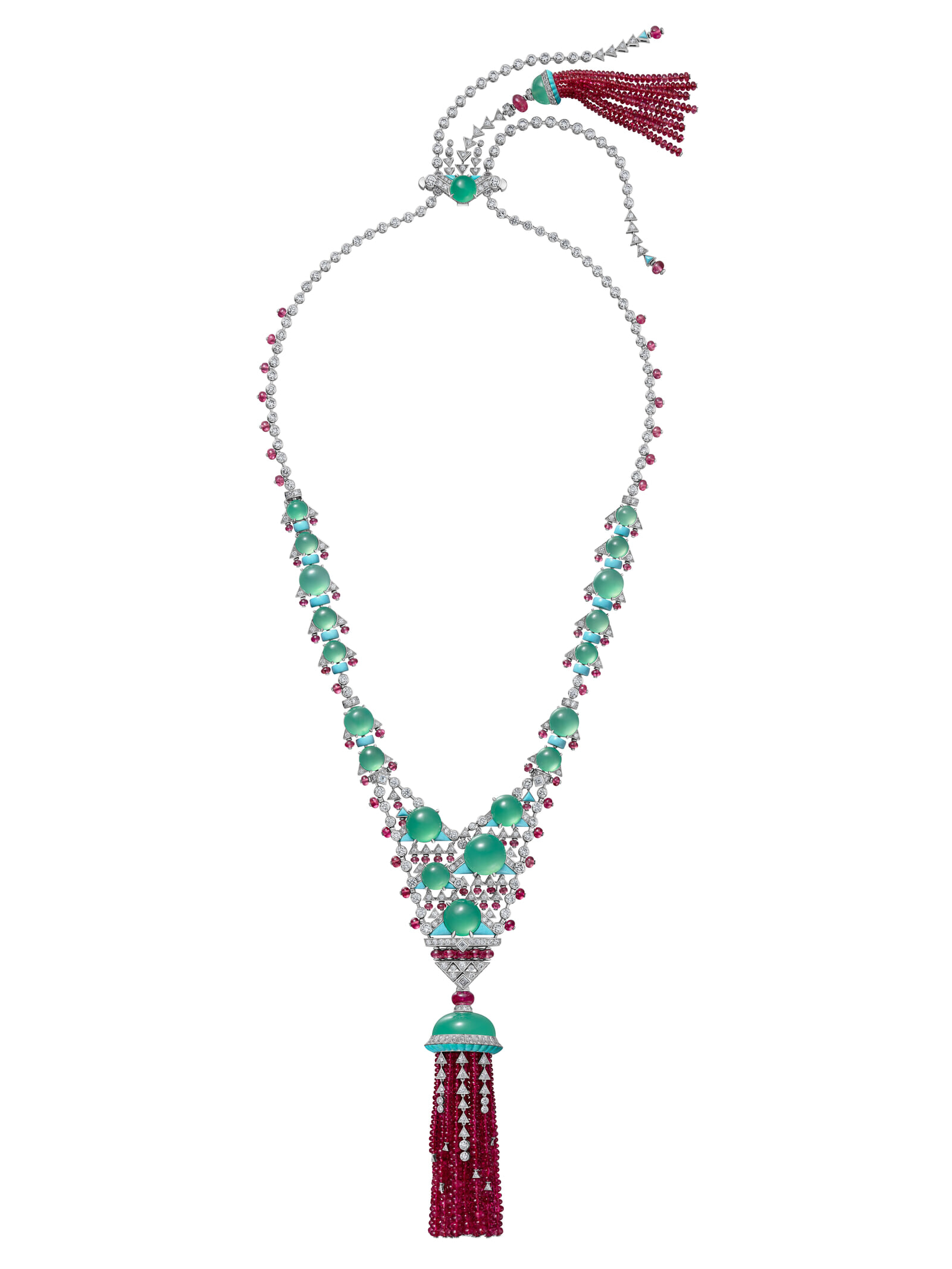 「オンドラ」ネックレス(WG×クリソプレーズ×スピネル×ターコイズ×ダイヤモンド) photography: courtecy of Maxime Govet © Cartier