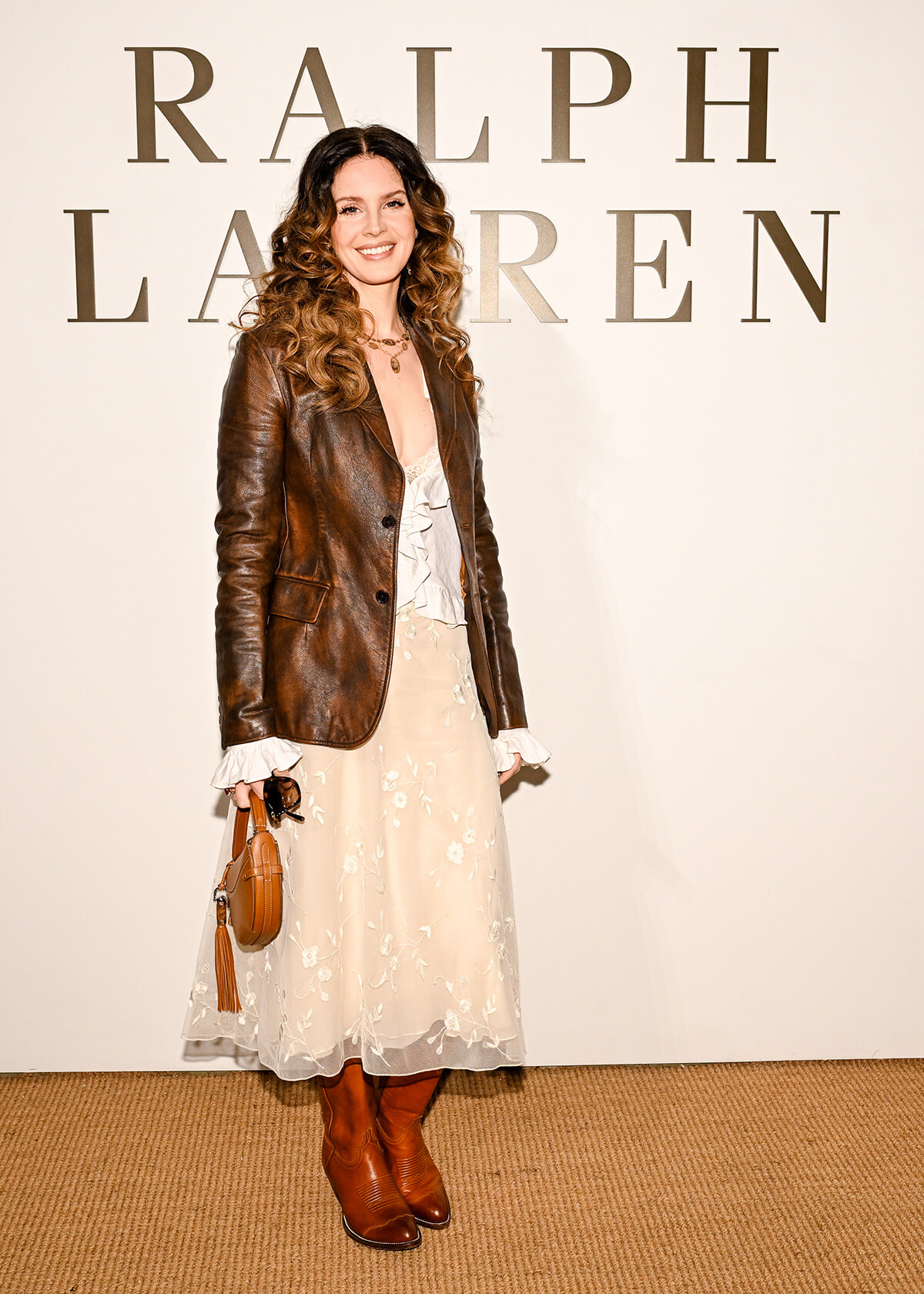 会場には、"ゴシック・アメリカーナの女王"と称される歌手のラナ・デル・レイが、レザーブレザーにフェミニンなフリルブラウス、そしてカウボーイブーツを合わせたスタイルで登場し、コレクションの世界観を体現。ほかにもアン・ハサウェイや新井貴子らがフロントロウを飾り、華やかな一夜となった。
