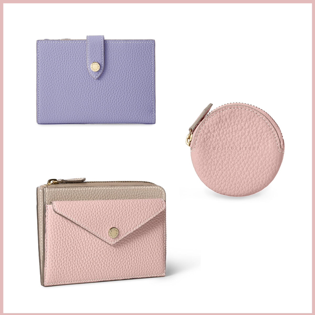ミラノ発ボナベンチュラの名品バッグに桜が咲き誇る季節を想起させるサクラピンク、ウィステリアパープル、トゥルーグレーのスプリングコレクションがお目見え。春めく日々に、心ときめくバッグを携えて。
