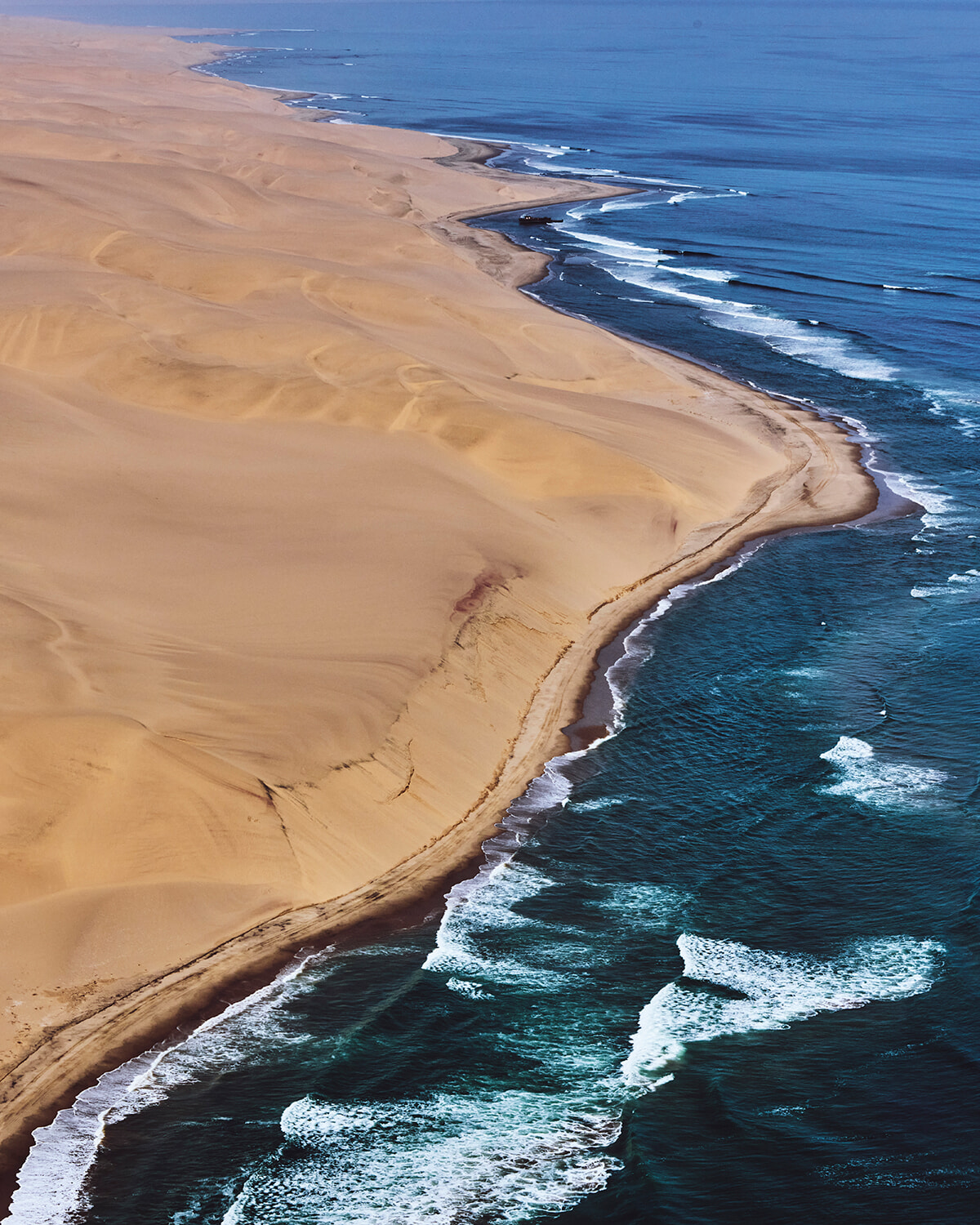 砂漠に面した大西洋岸。この海中からダイヤモンド採集船が大型の掃除機で海底の土砂を吸い取る。