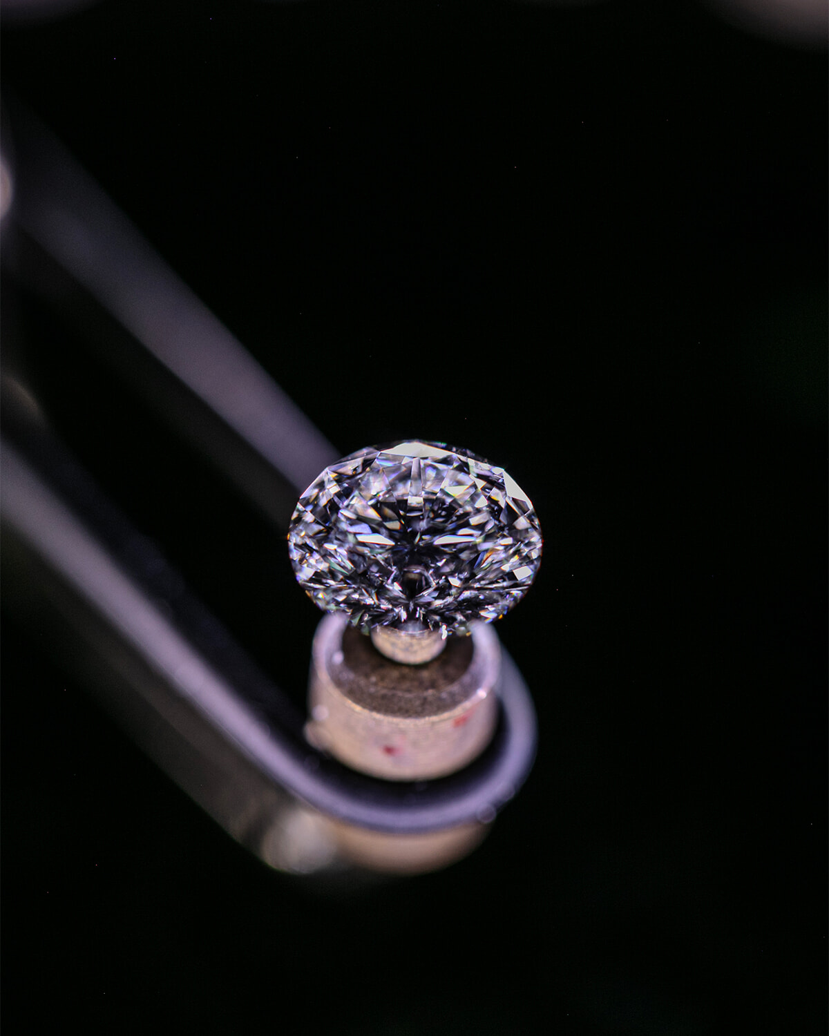 カットされたダイヤ。完璧に整ったファセットと輝きで、石が宝石となった瞬間。