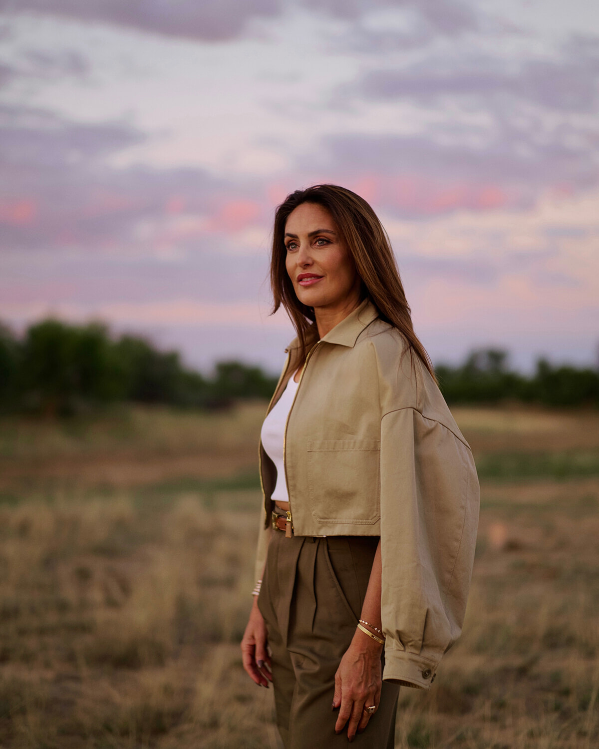 メシカの創業者にしてアーティスティックディレクターである、ヴァレリー・メシカ。ナミビアの壮大なサバンナにて。