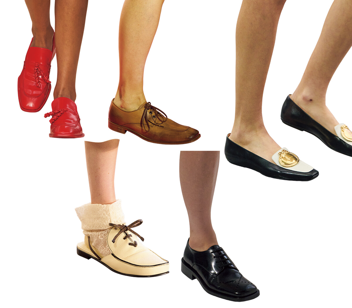 ウィッシュリスト入り間違いなしのディオールのメダリオン付きスリッポンを代表に、メンズライクなトラッドシューズがランウェイを駆け抜ける。オックスフォードあり、タッセルローファーありだが、決め手はシャープなスクエアトウ。