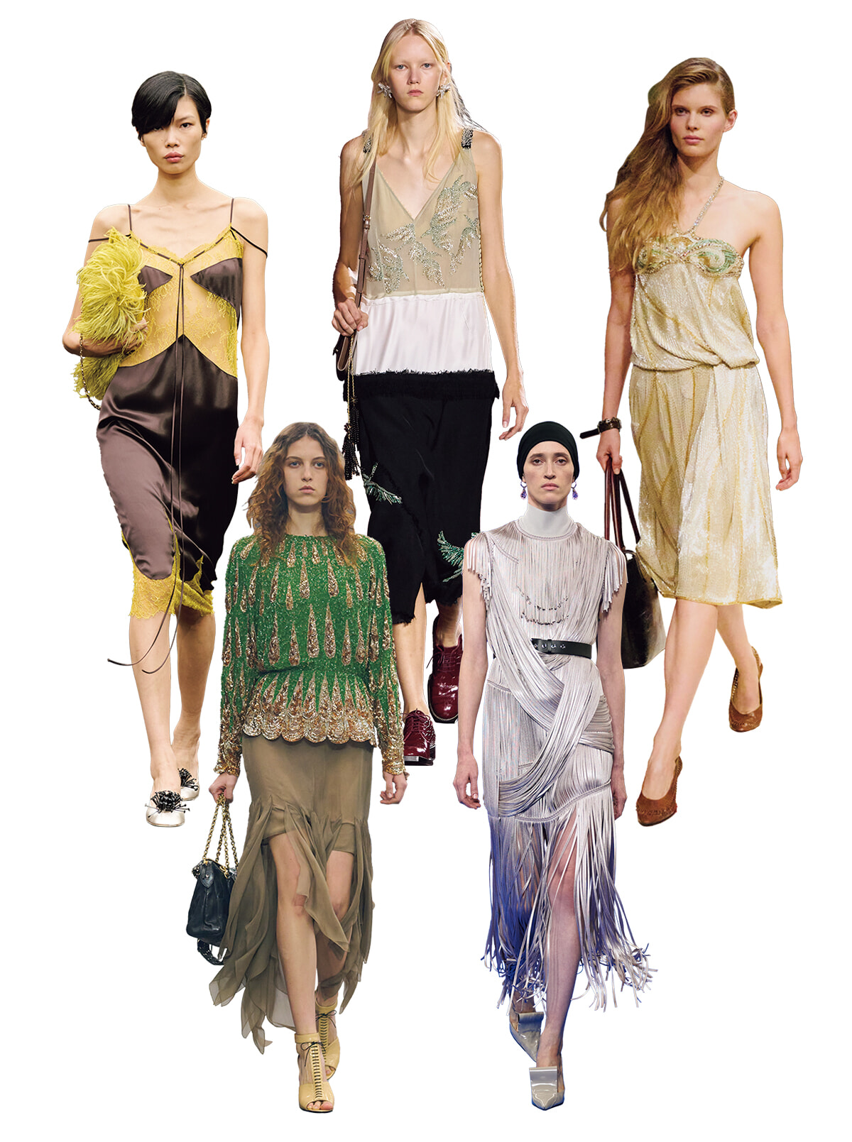 直線的シルエットに煌めきの刺繍。アールデコ博覧会から100年を祝してか、20年代スタイルが戻ってきた。メゾン設立の時代に思いを馳せたフェラガモ、新生シャネルは創業者へオマージュを捧げるようにローウエストを提起。ただの回帰と思わないで。そこにあるのはコルセットから女性を解放した洗練と意志。