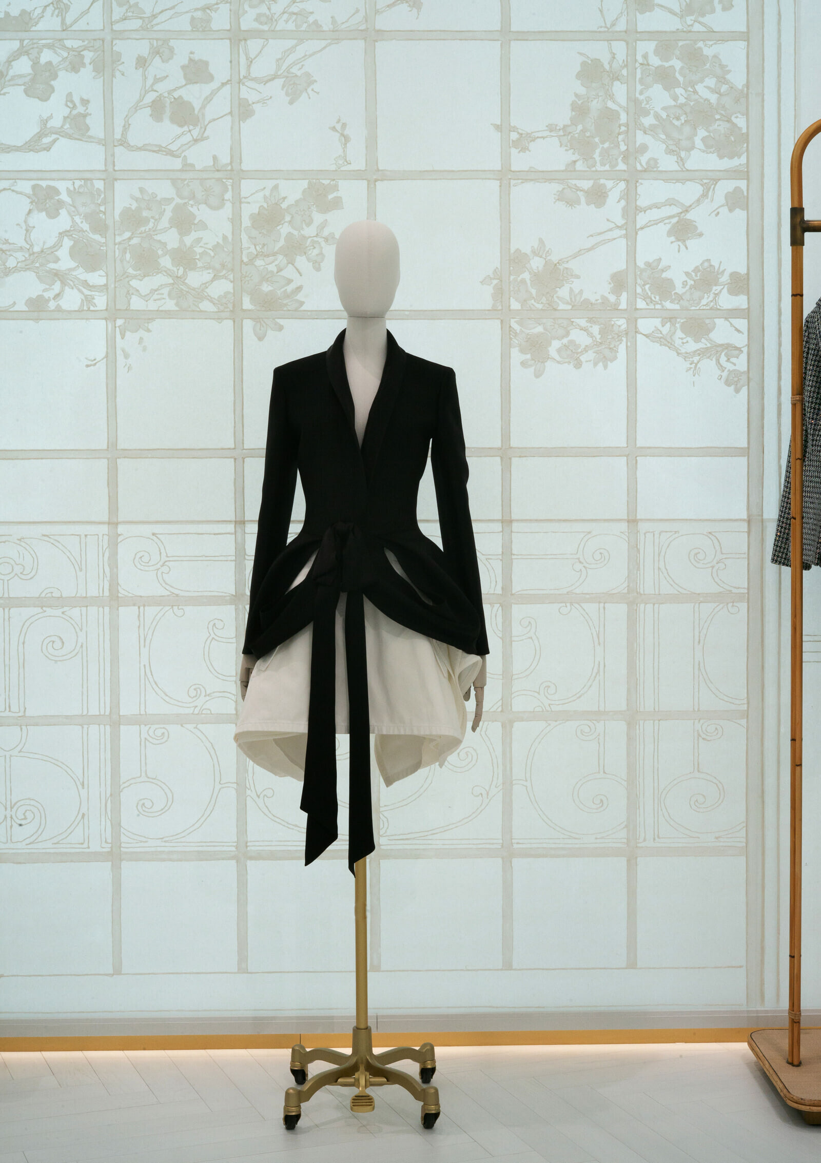 エントランスをくぐるとゲストを迎える、セントラル スペースは空間全体の思想を象徴する場所。今シーズンは京都の老舗、小嶋商店が制作した提灯のディスプレイが置かれ、大きく開かれた余白のあるスペース構成は、ゲストたちが自由に回遊しながら各ルームを訪れる導線として機能するだけでなく、季節に応じたポップアップイベントの舞台としても活用される予定。展示スペースとしての柔軟性を備えつつ、メゾンの世界観をダイレクトに体感できる設計は、従来のストア概念を超えた”文化的パビリオン”としての役割を強く印象づける。