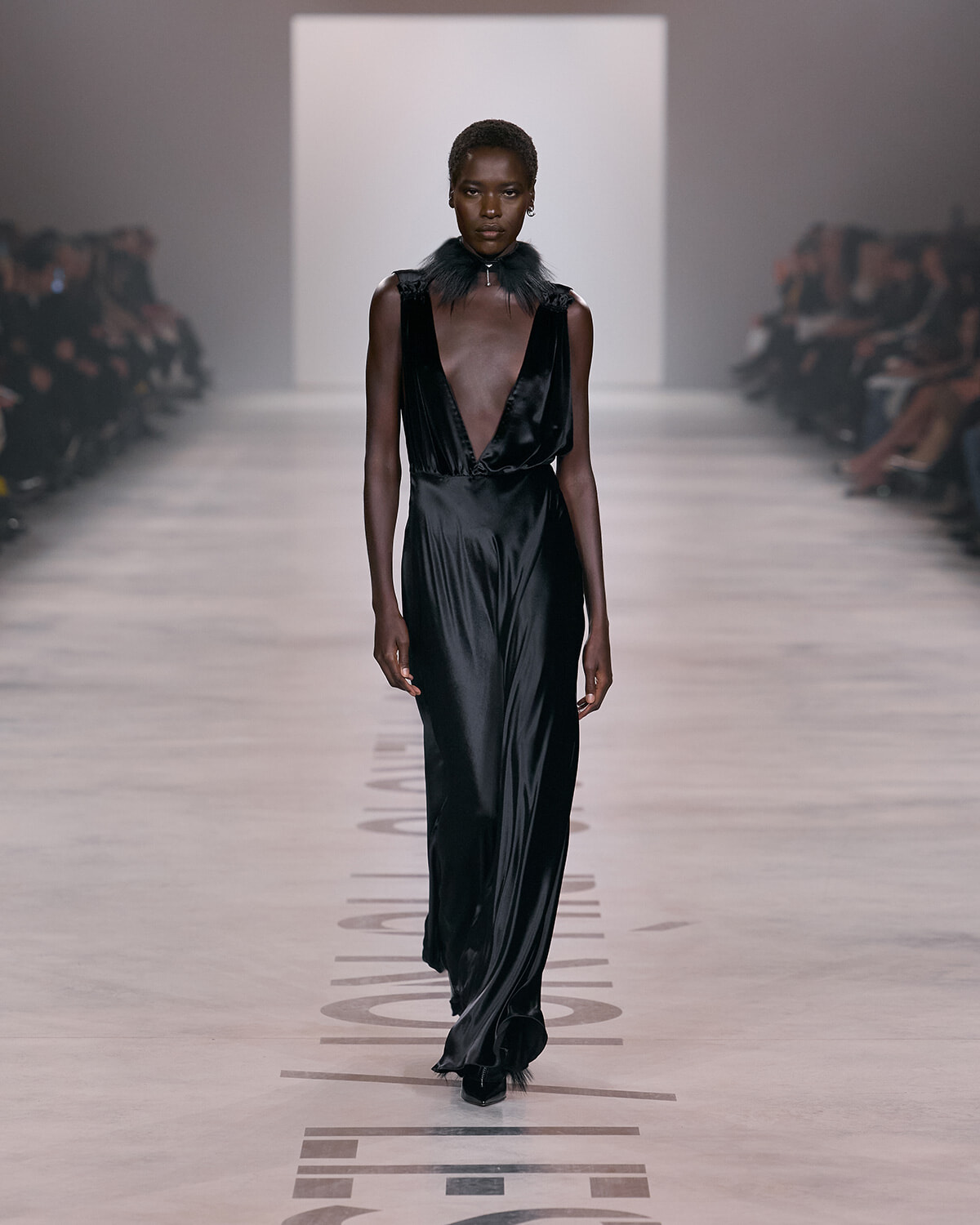 「シルクのキャミソールワンピース。首元にファーが付いていてとても繊細。全部繊細なのに、同時に大胆で強さも感じるルックで、ファッションへの憧れが詰まっているように感じました。」