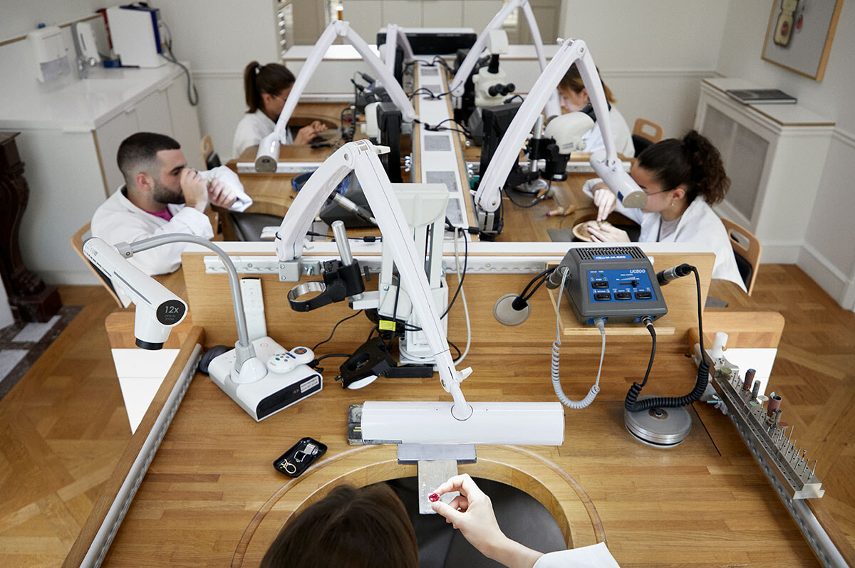「カルティエ ジュエリー インスティテュートのもうひとつの大切な役割は、ジュエリー制作の専門学校や教育機関との連携による教育の提供です。私たちはパリ及びフランス全土の優れたジュエリー制作の専門学校と強い繋がりを維持しており、なかでもパリのオート エコール ドゥ ジョワイエリーからは現在も15名ほどが見習い職人のインターンとしてジュエリー制作を学んでいます。多くの学生は卒業後、カルティエのアトリエに就職しますが、それ以外の道に進む者もおりますから、フランス及びヨーロッパ全土のジュエリー業界の技術の底上げにも貢献できているのかもしれません」