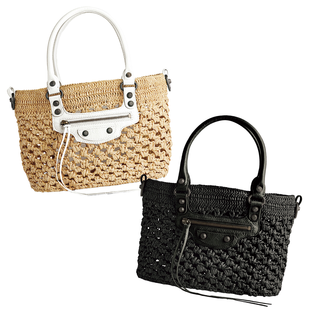 新作はいずれもイベントで先行発売。「ル・シティ バスケット スモール」(H20×W27×D11cm)各¥163,900(ともに予定価格、ブラックは日本限定)/ともにバレンシアガ(バレンシアガ クライアントサービス)