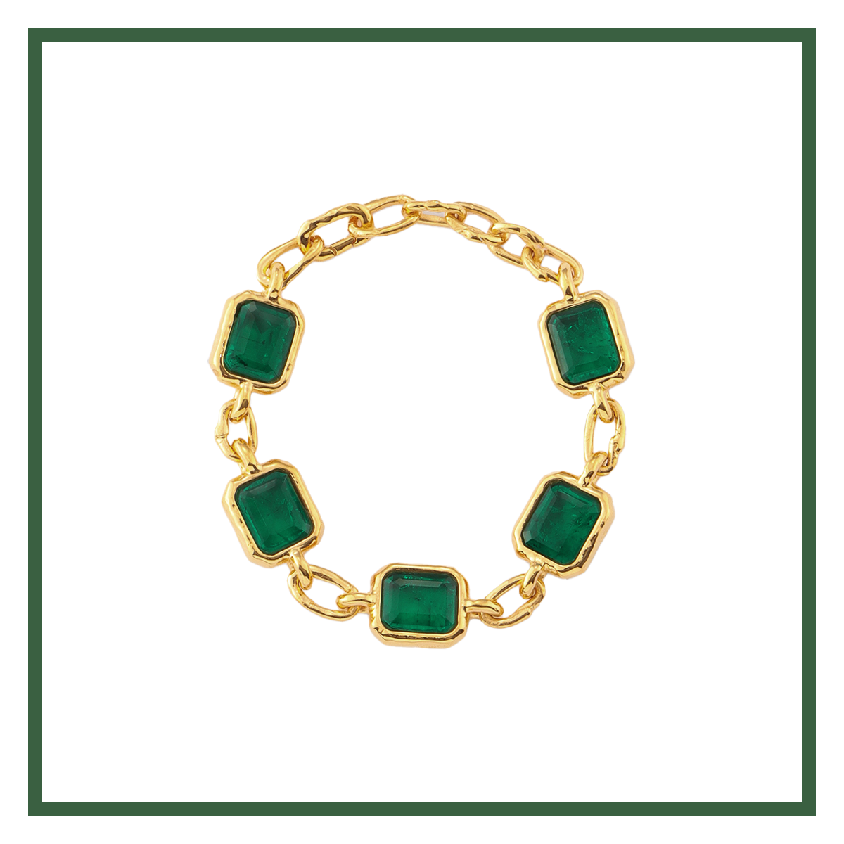 オリジナルで開発したグリーンのクォーツをスクエアカットでセット。アンティークジュエリーのような重厚感と、エネルギッシュな佇まいは、身につけるだけで流れをぐっと変えてくれそう。