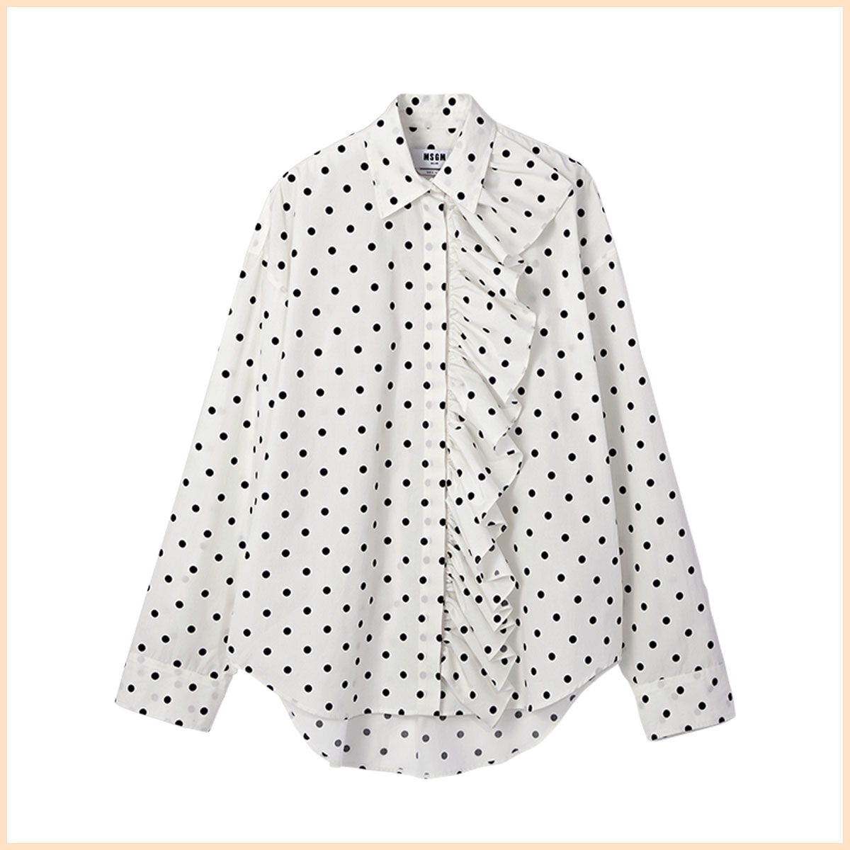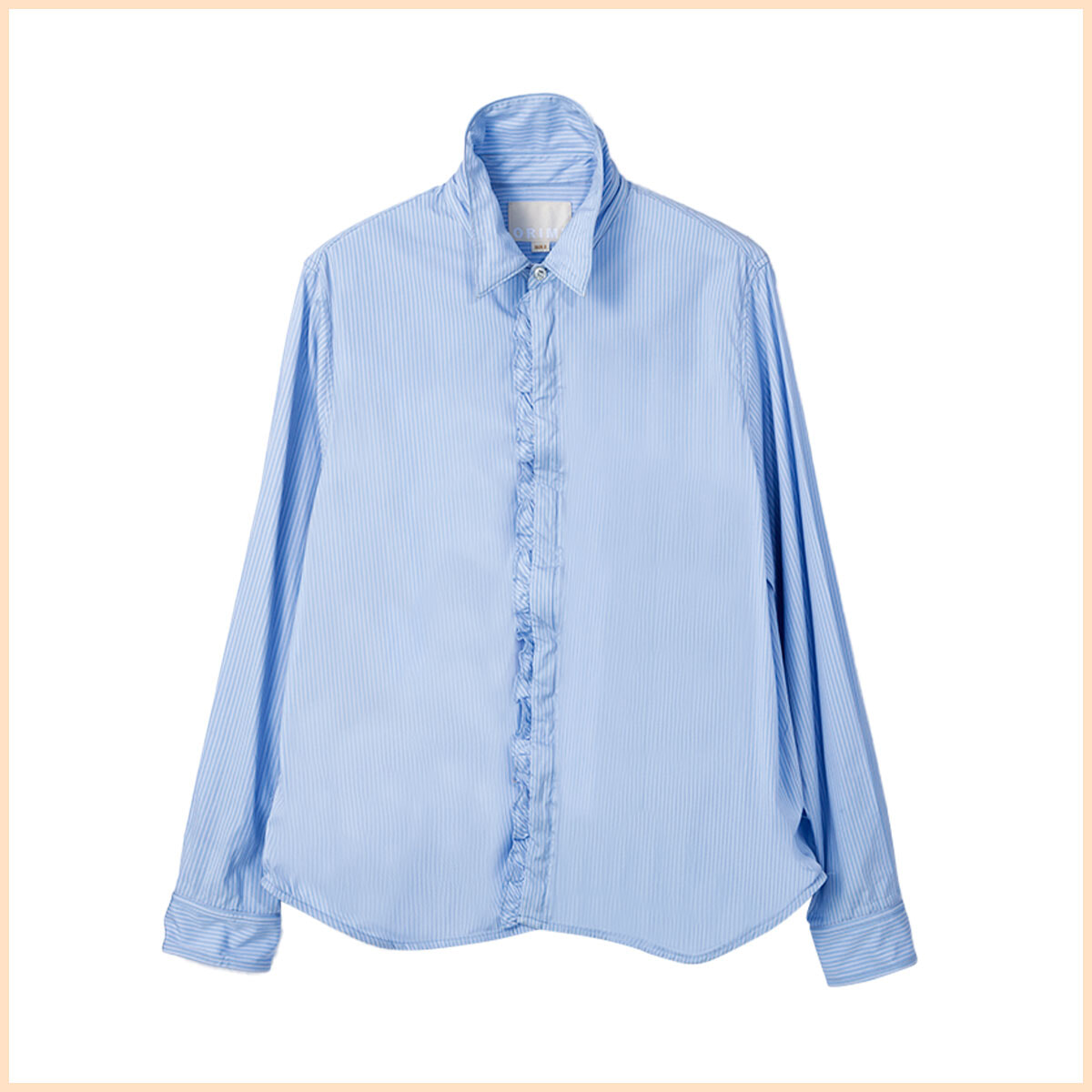 ランウェイでも再提案されたシャツは、今シーズンあらためて注目したいアイテム。マニッシュ代表アイテムだからこそ、今春はフェミニニティが漂う一枚をチョイス、着方も工夫したい。