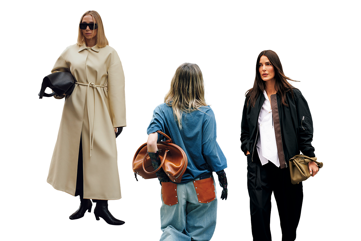 バッグの持ち方にももちろんトレンドあり! 先シーズンまではフォーマルな印象が多かったバッグも、今シーズンは身体になじむようなフワフワの質感に視線集中。