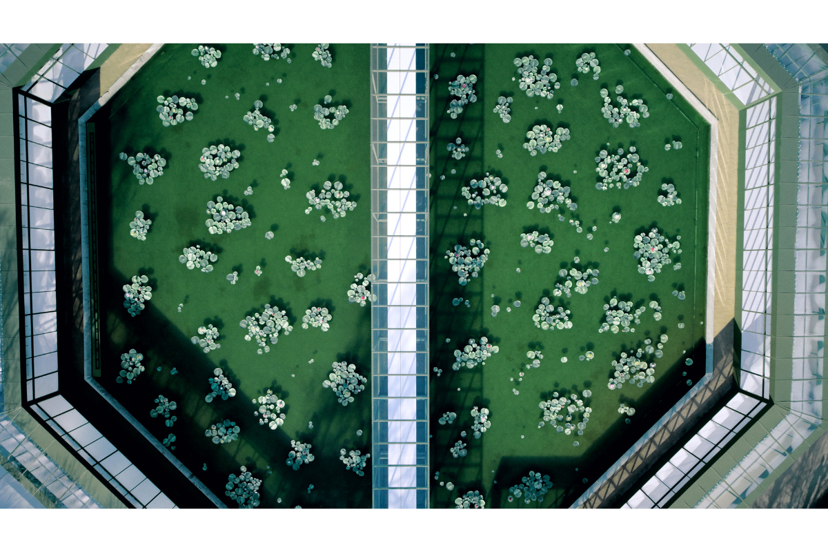 ディオールのウィメンズコレクションの舞台として恒例となったチュイルリー庭園。今回のショーでは、バッサン・オクトゴナルを囲むグリーンのベンチや、池に浮かぶ睡蓮など、モネやスーラを想起させる風景が広がりながらも、どこかシュルレアリスティックなイミテーションの庭園が立ち現れた。