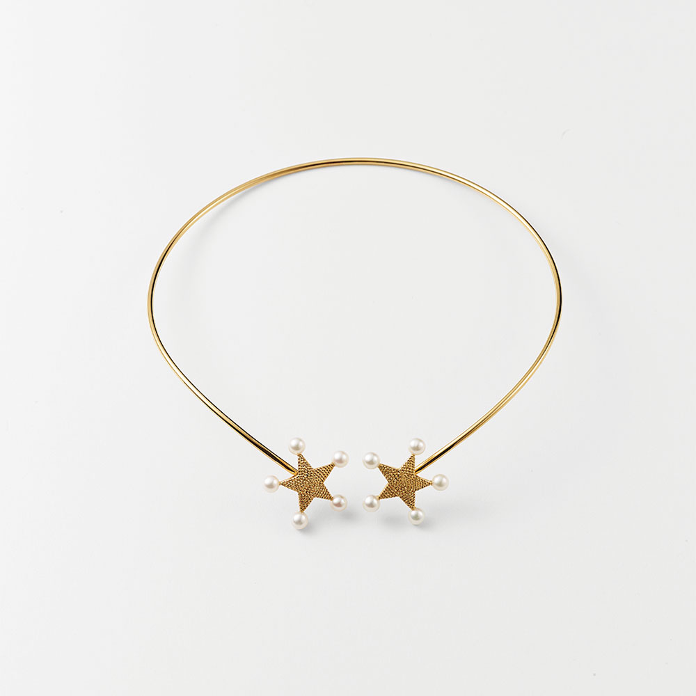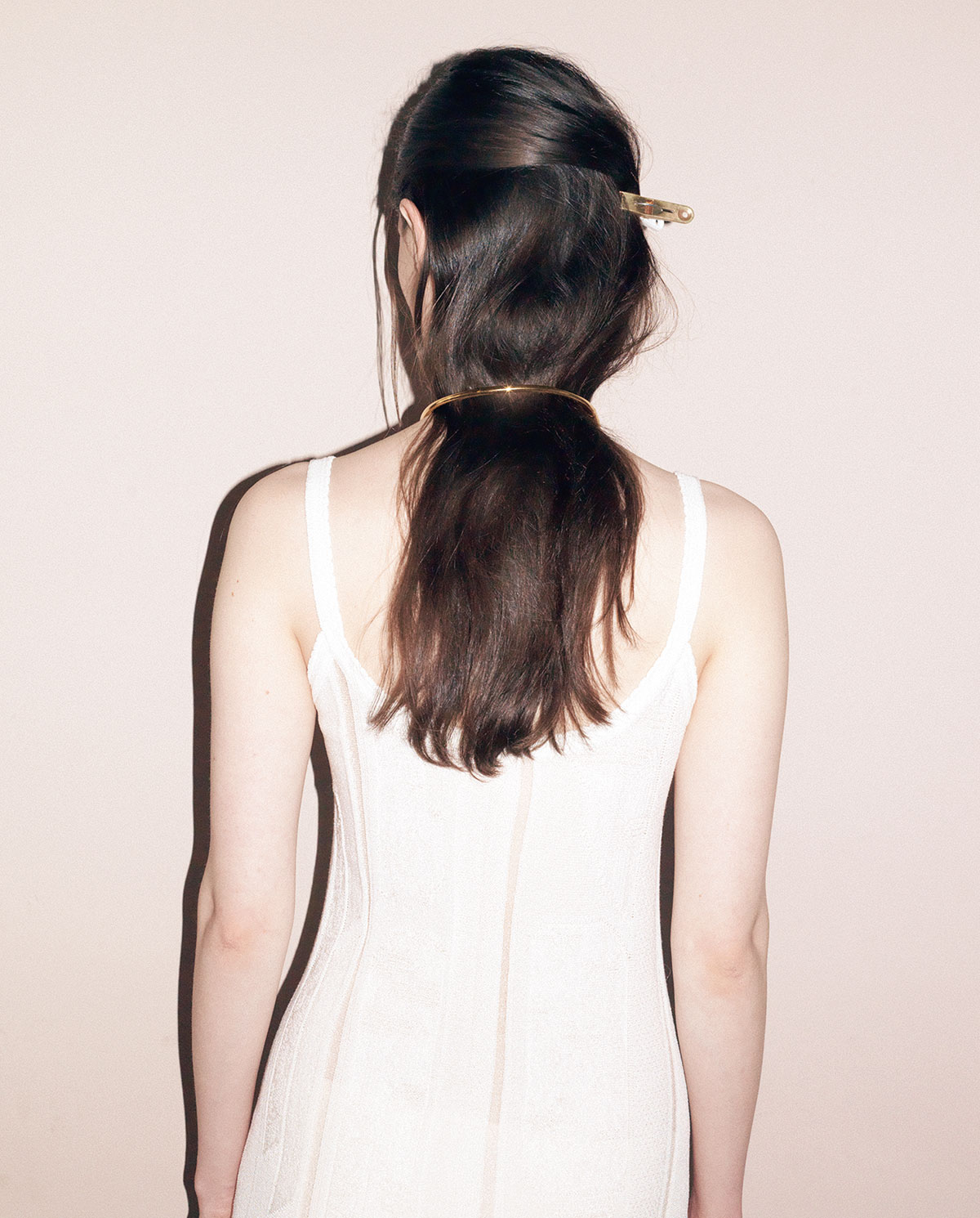 余白を残した装いに、意志ある輝きを一点。構築的なジュエリーやヘアアクセサリーで、顔まわりを印象的に。