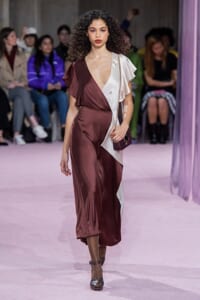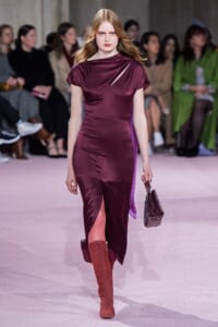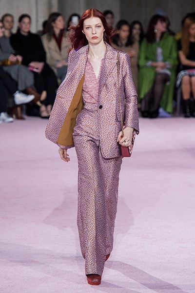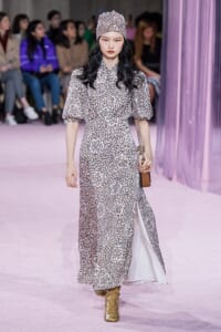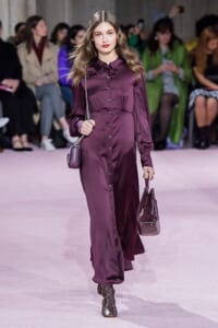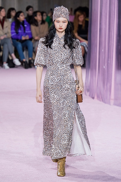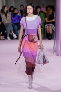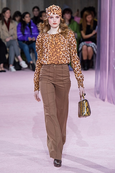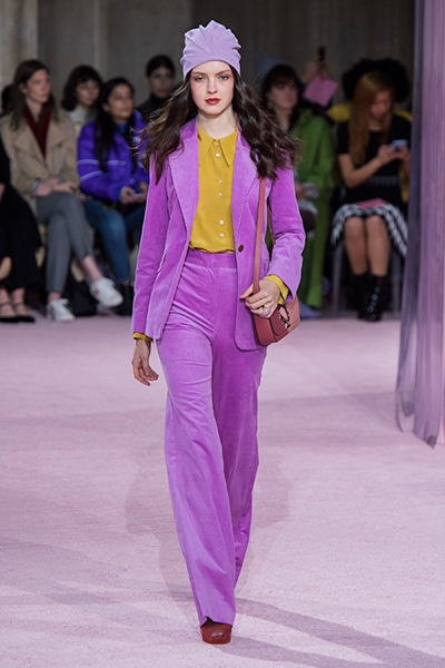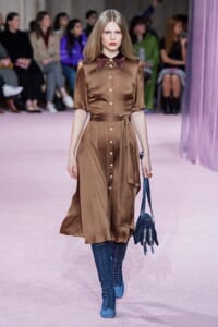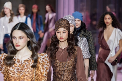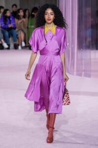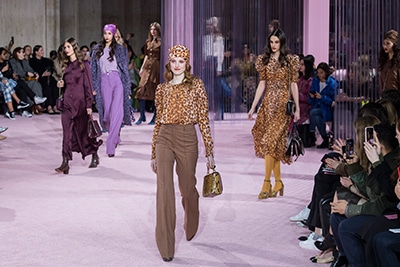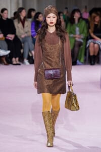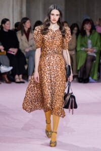 新クリエイティブディレクター、二コラ・グラスによる初の秋冬コレクションを発表したケイト・スペード ニューヨーク。 テーマは「Optimistic Femininity(前向きな女性らしさ)。 気負っていないのにフェミニンで真がある女性が、今っぽいグラマラスな女性である。 そんな気分を、マスタードイエロー、パープル、レオパードと秋色、秋柄にのせて表現した。 また、シルクやブロケードなどの素材を使い、リアルクローズながらもほんの少しのリッチ感を香らせ、力の抜けたエヴリデーラグジュアリースタイルを提案。