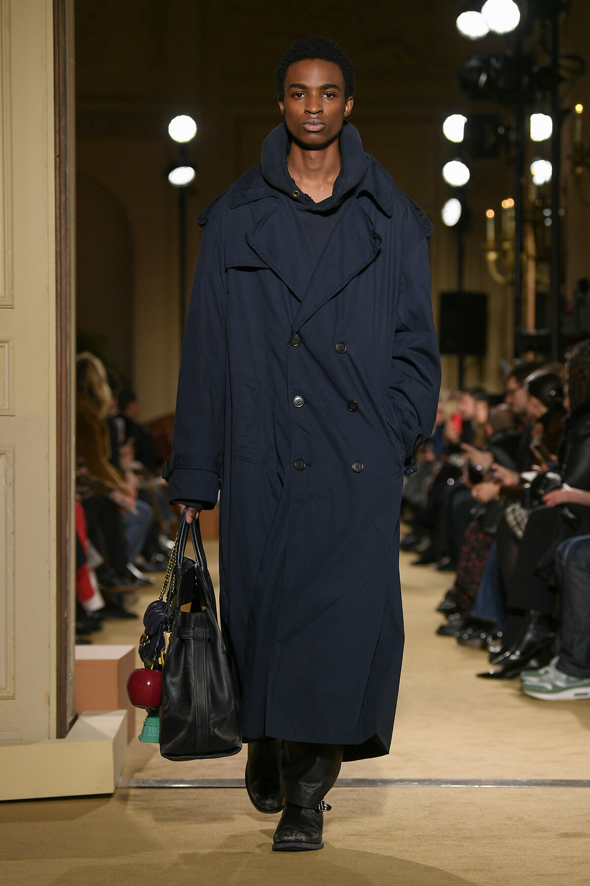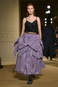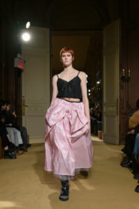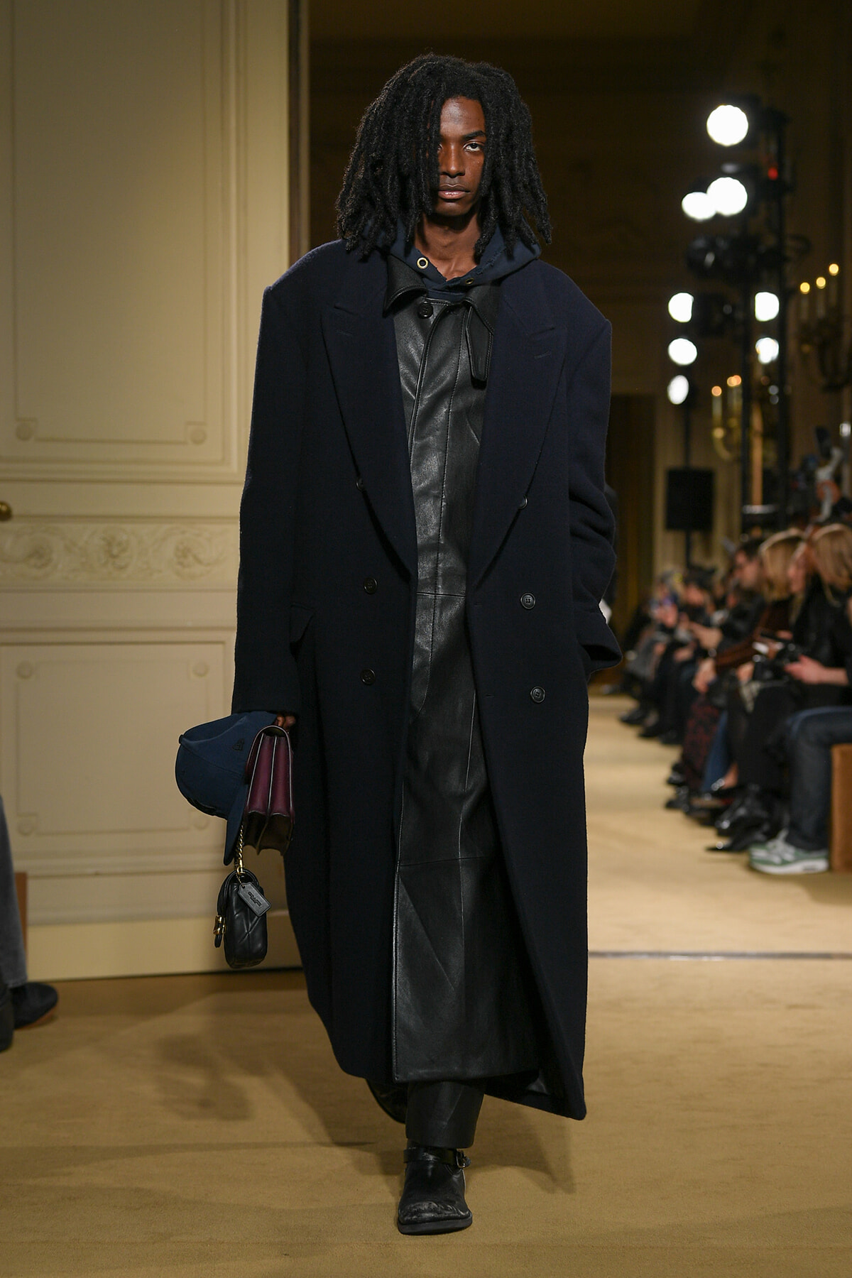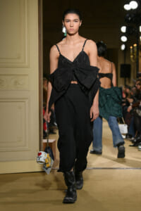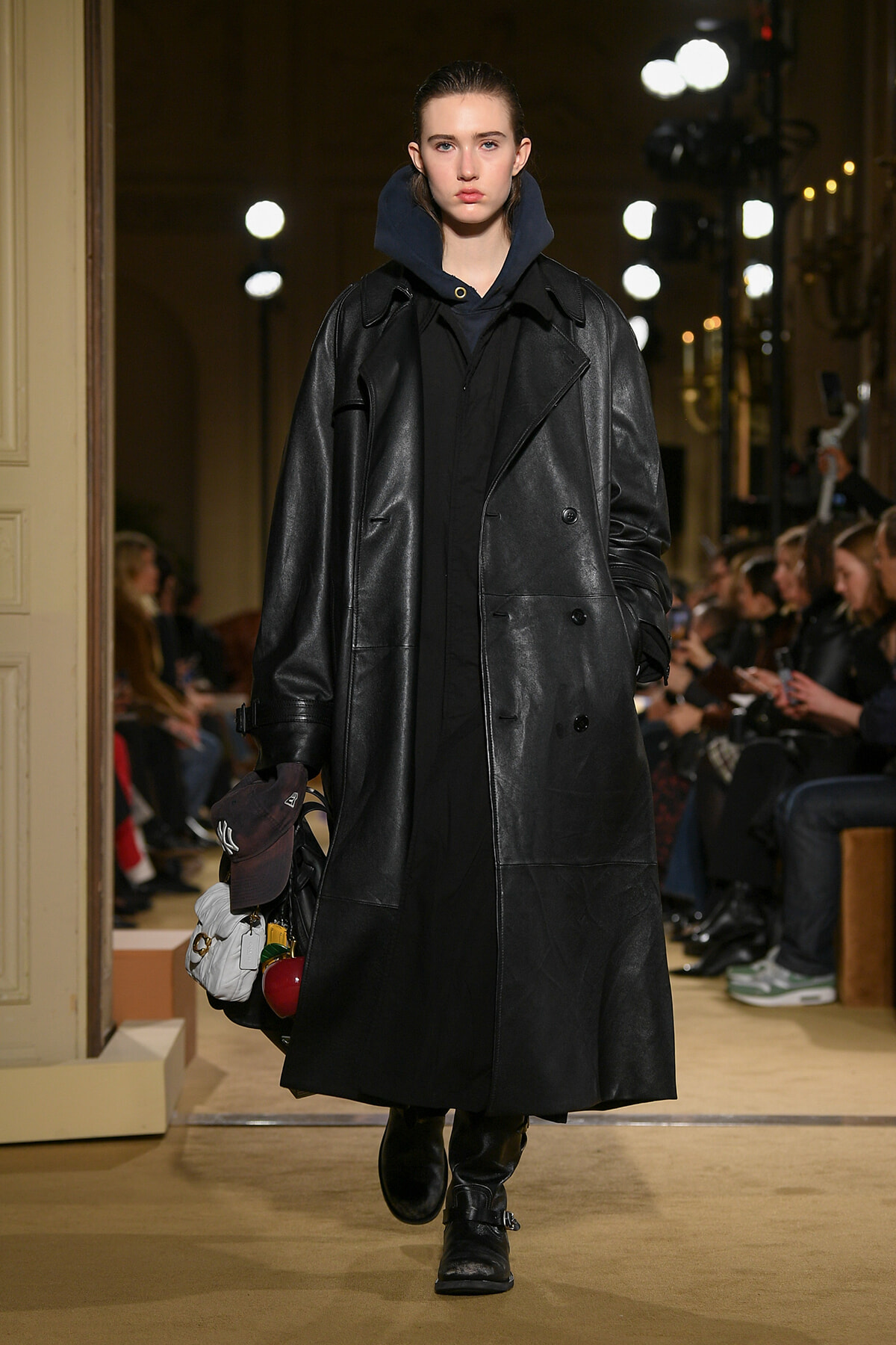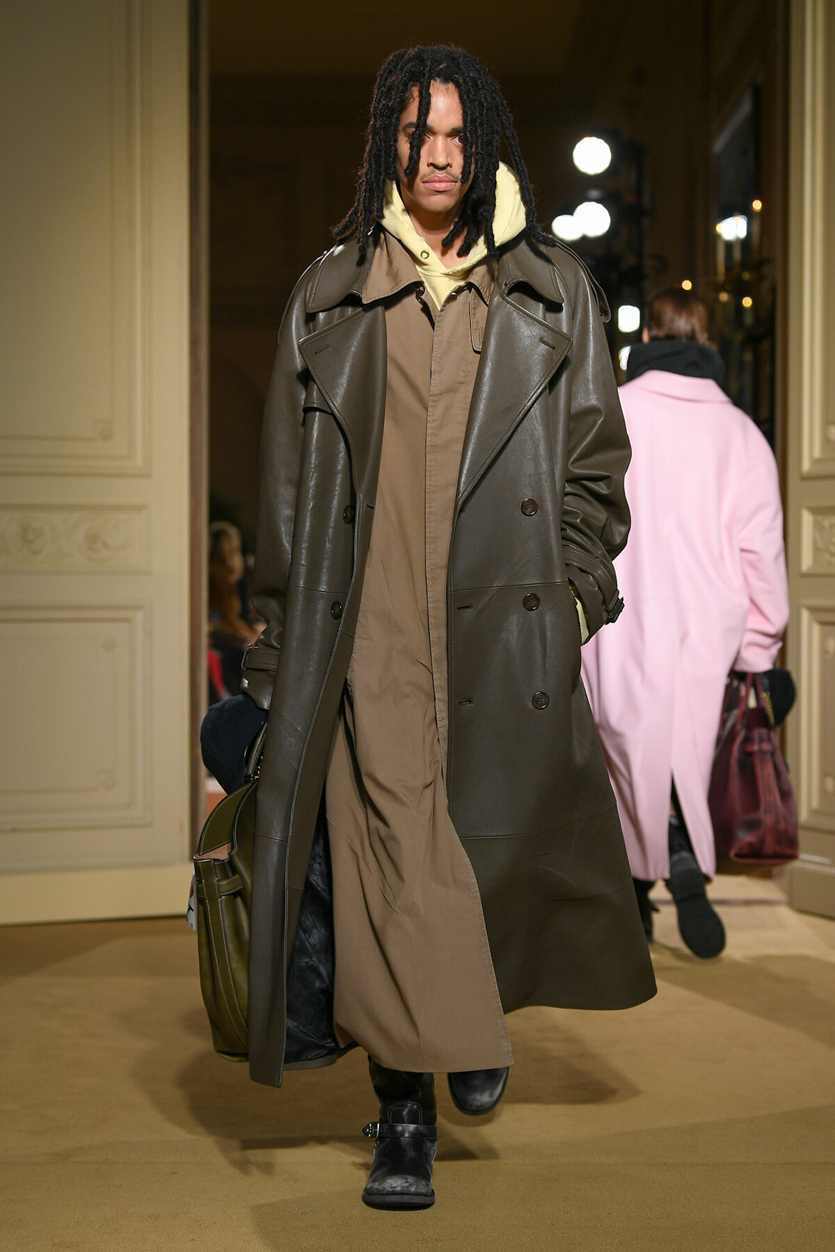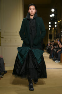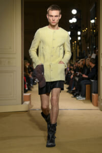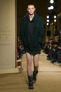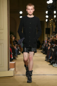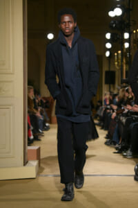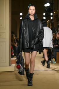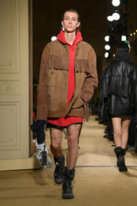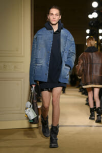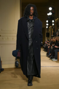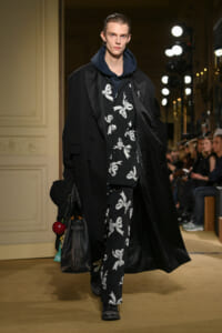 ファッションに対して革新的な発想を持つ若者層にも響くよう、”ラグジュアリー”と”伝統の再構築”をテーマに掲げた今コレクション。オーバーサイズのチェスターコートやダブルブレストのレザーコートにフーディを合わせたスタイリングが特徴的。あえて着古したかのようなデニムやレザーブーツがコーディネートのアクセントに。