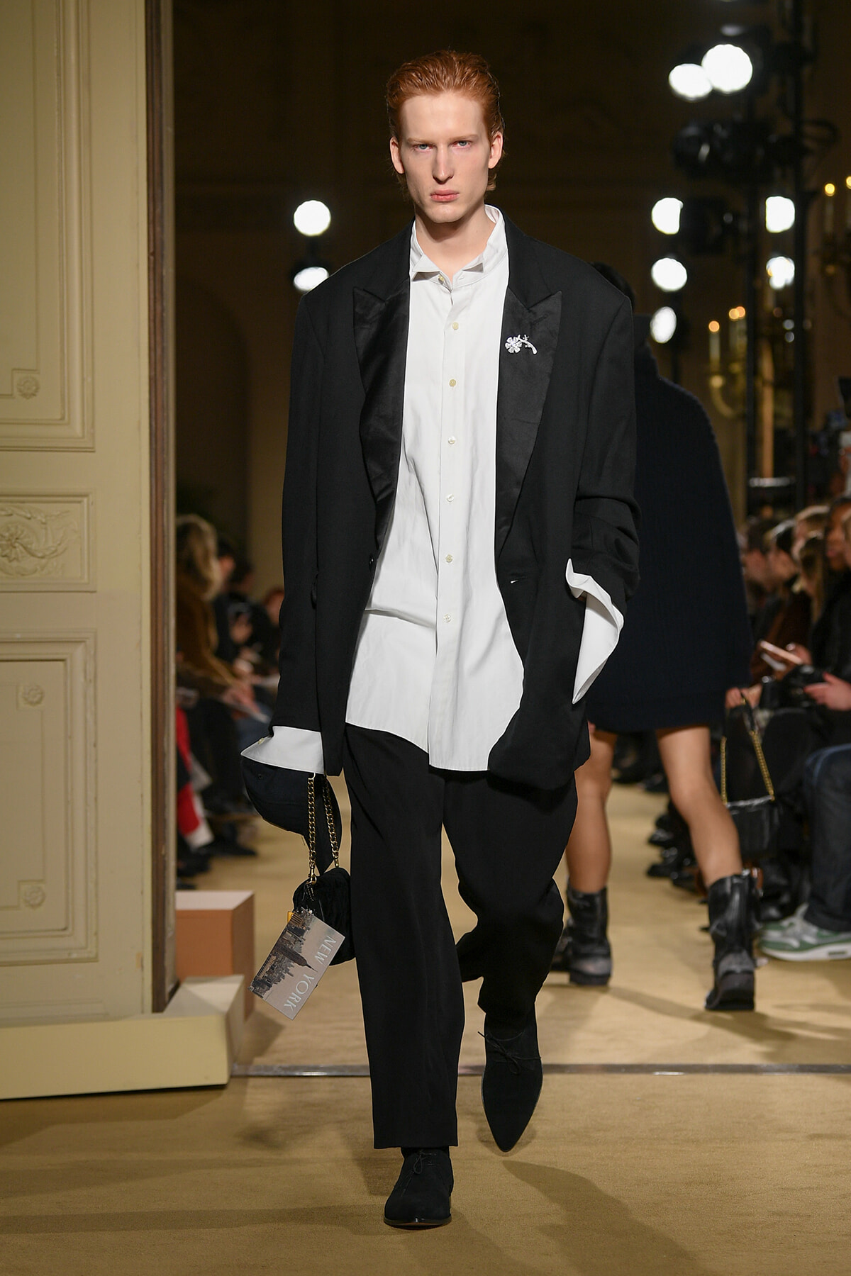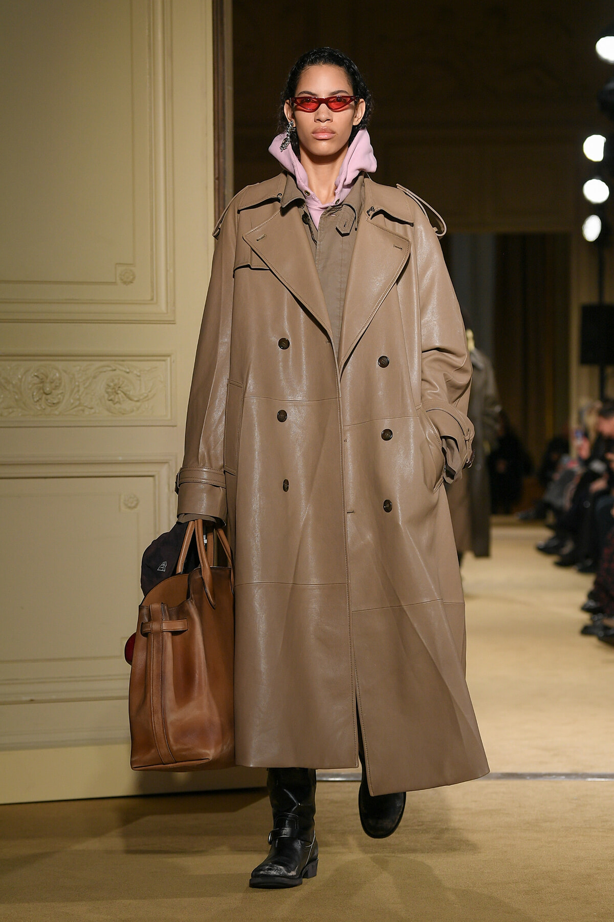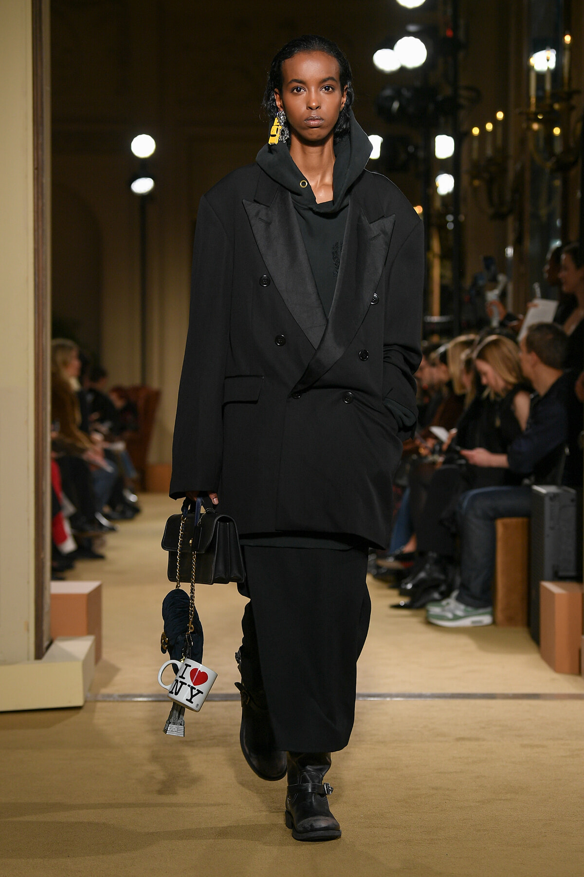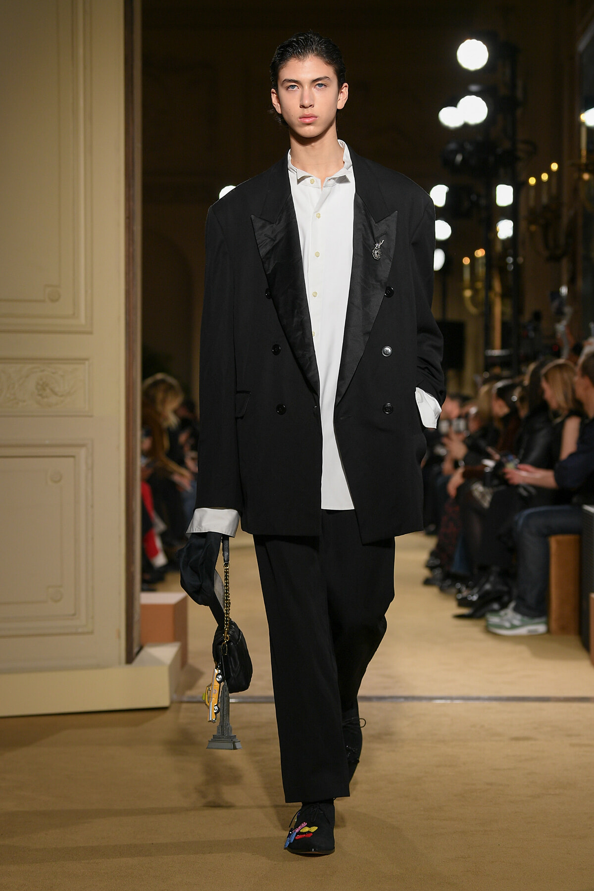 ファッションに対して革新的な発想を持つ若者層にも響くよう、”ラグジュアリー”と”伝統の再構築”をテーマに掲げた今コレクション。オーバーサイズのチェスターコートやダブルブレストのレザーコートにフーディを合わせたスタイリングが特徴的。あえて着古したかのようなデニムやレザーブーツがコーディネートのアクセントに。