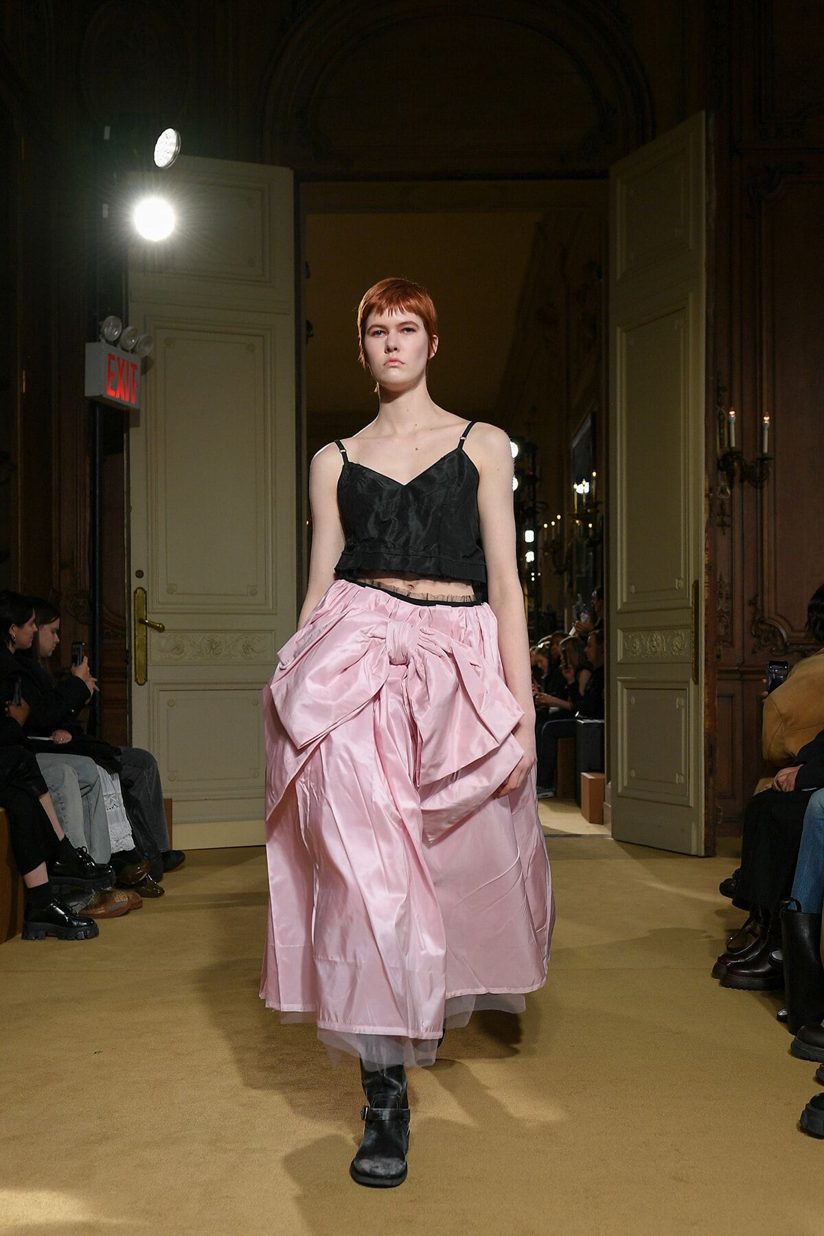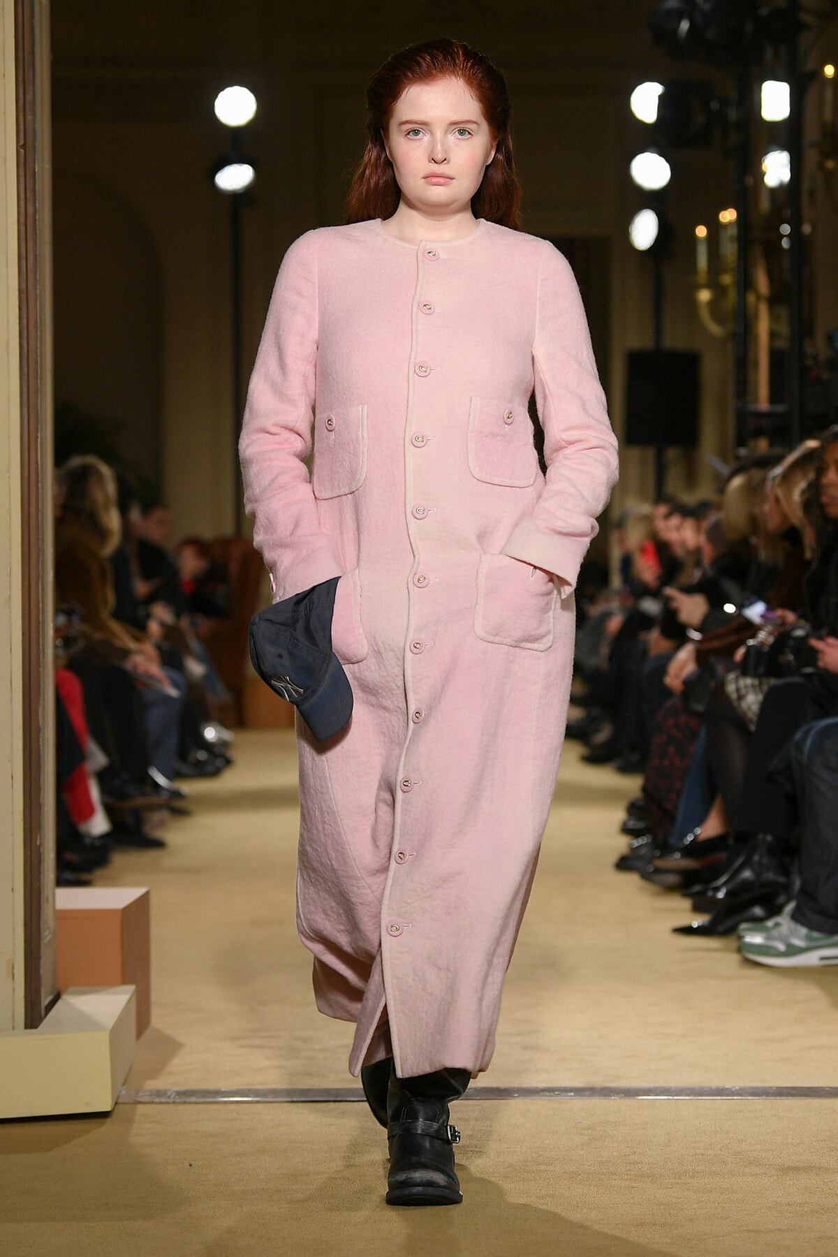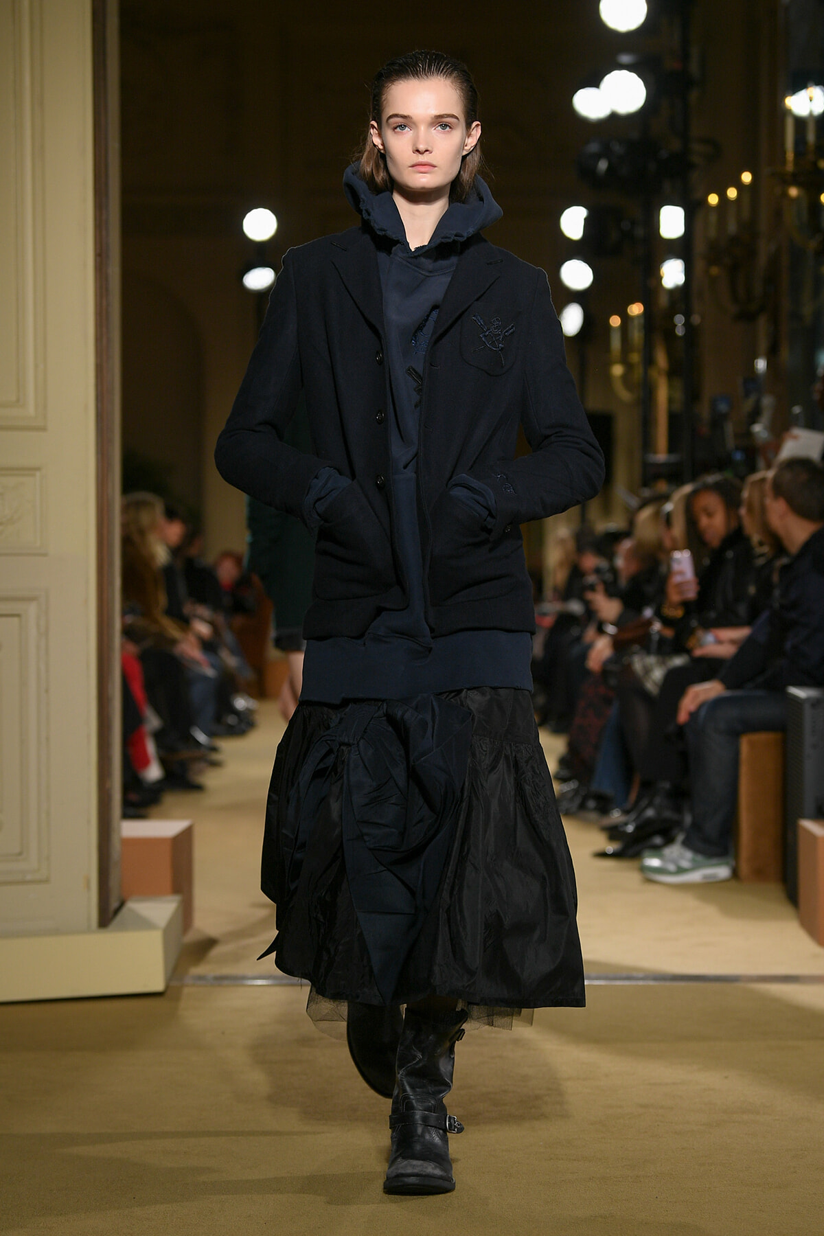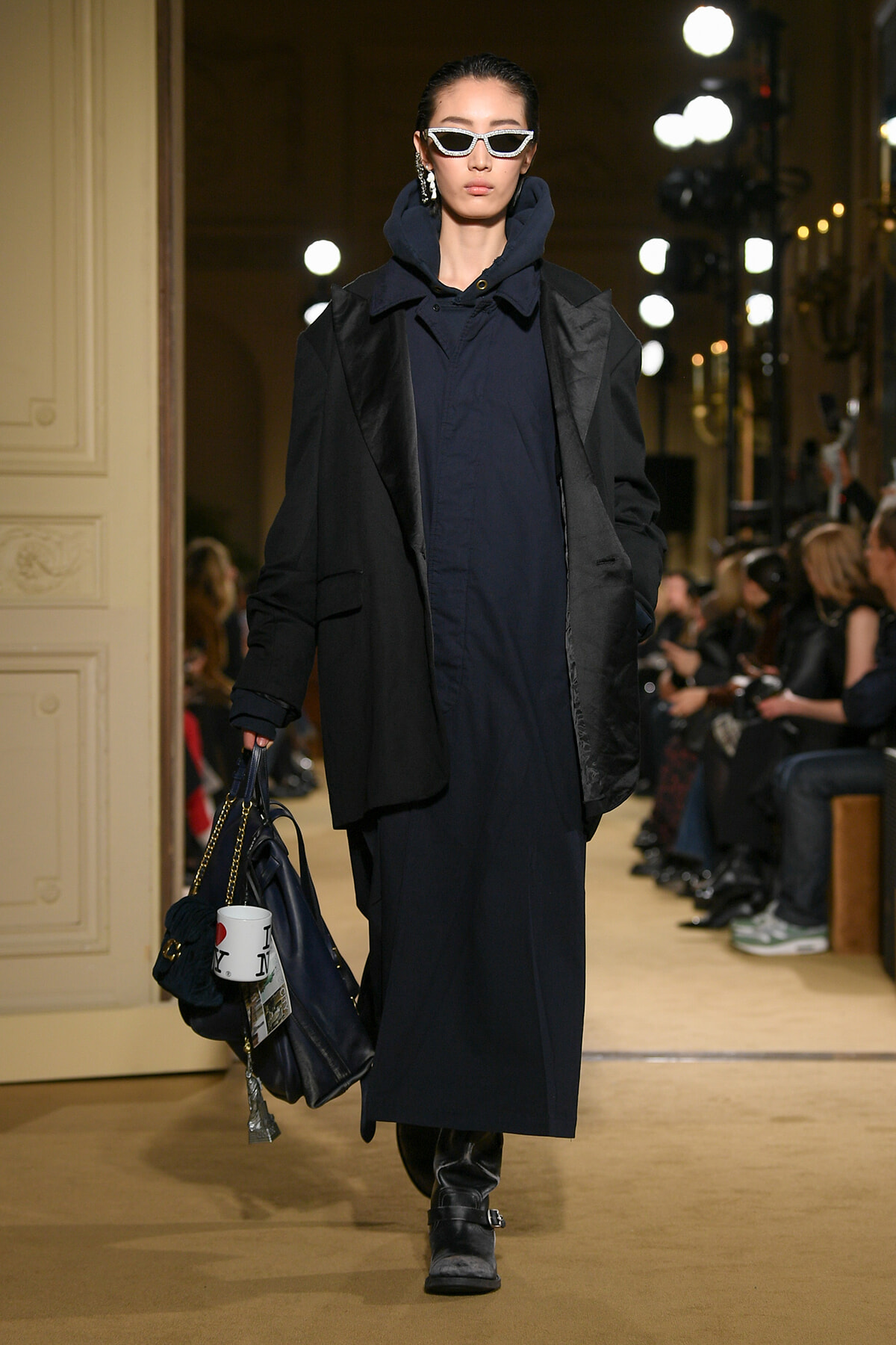 ファッションに対して革新的な発想を持つ若者層にも響くよう、”ラグジュアリー”と”伝統の再構築”をテーマに掲げた今コレクション。オーバーサイズのチェスターコートやダブルブレストのレザーコートにフーディを合わせたスタイリングが特徴的。あえて着古したかのようなデニムやレザーブーツがコーディネートのアクセントに。