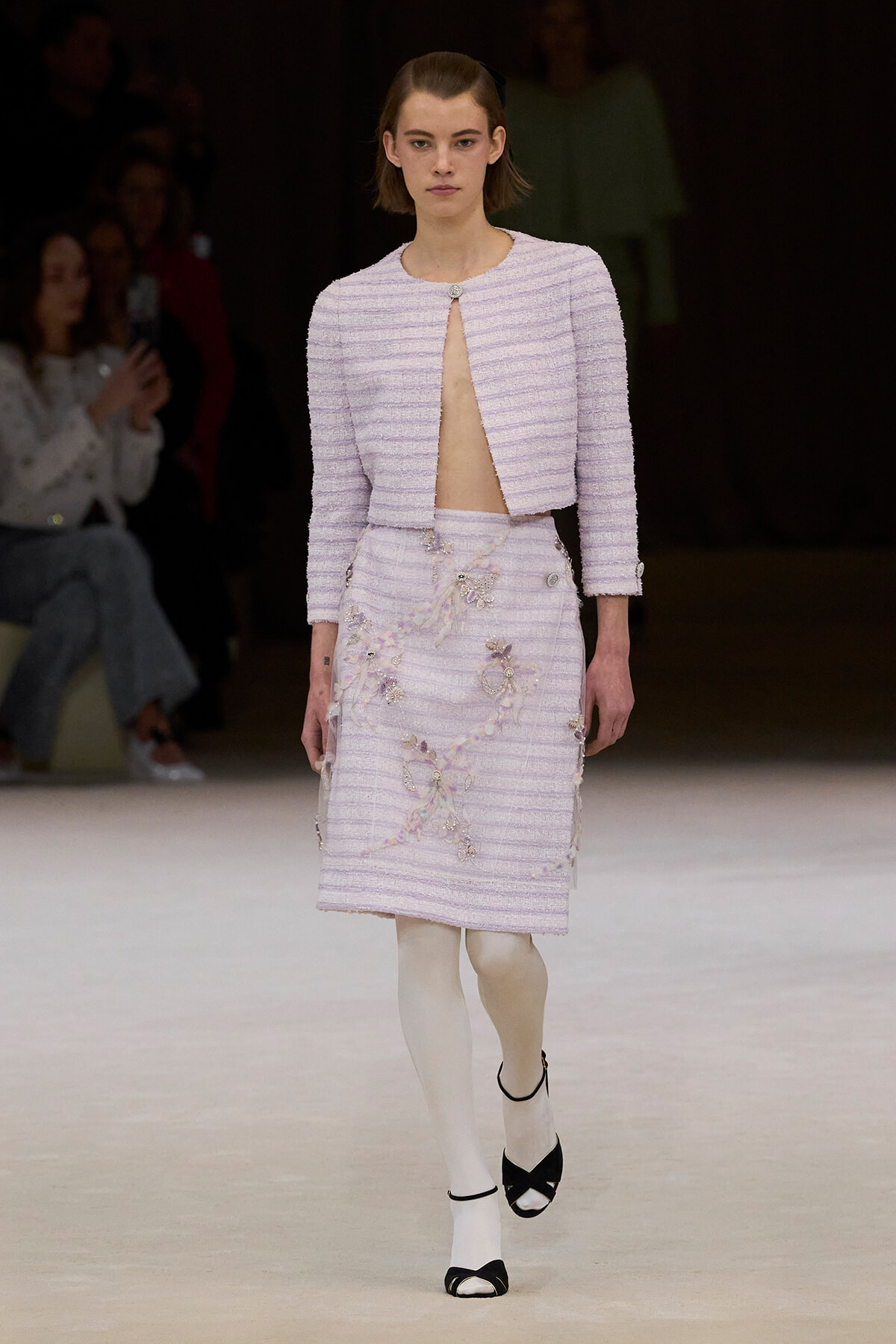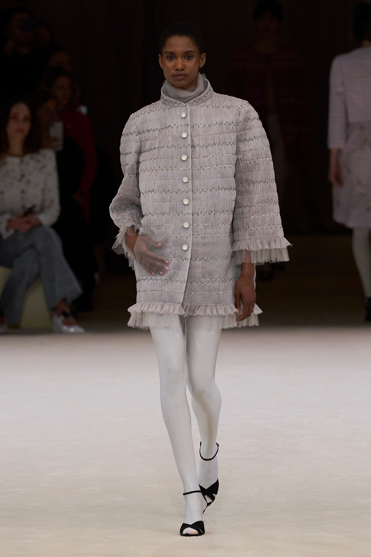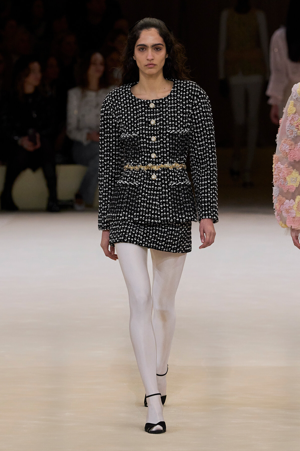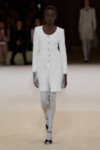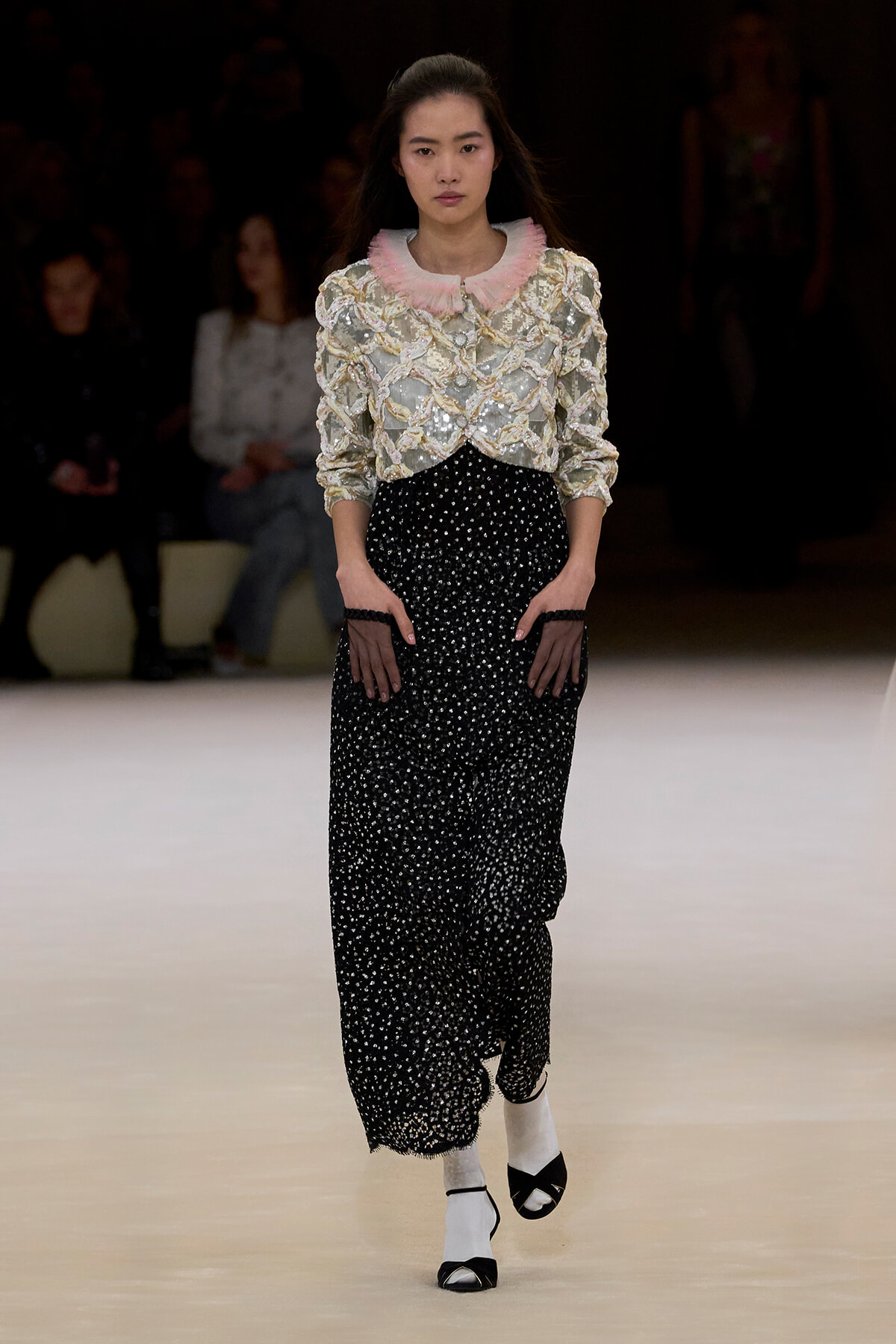 今回の着想源は、装飾品であり実用性の高い”ボタン”。ボタンはそもそも衣類の着脱や開け閉めを容易にするものであり、かつてそのボタンのおかげで女性たちは動きを制限していたものから解放され、自由を得てきた。そして、ガブリエル・シャネルもボタンを非常に重要視してきた。洋服のプロフェッショナルであり、卓越した職人だった彼女が生み出す唯一無二のアリュールにとって、ボタンはまるで宝石のように大胆さと輝きを添えてくれる存在だったのだ。今コレクションでは、女性の解放の象徴であるボタンを出発点に、バレエやダンスの世界へと、物語を広げていく。