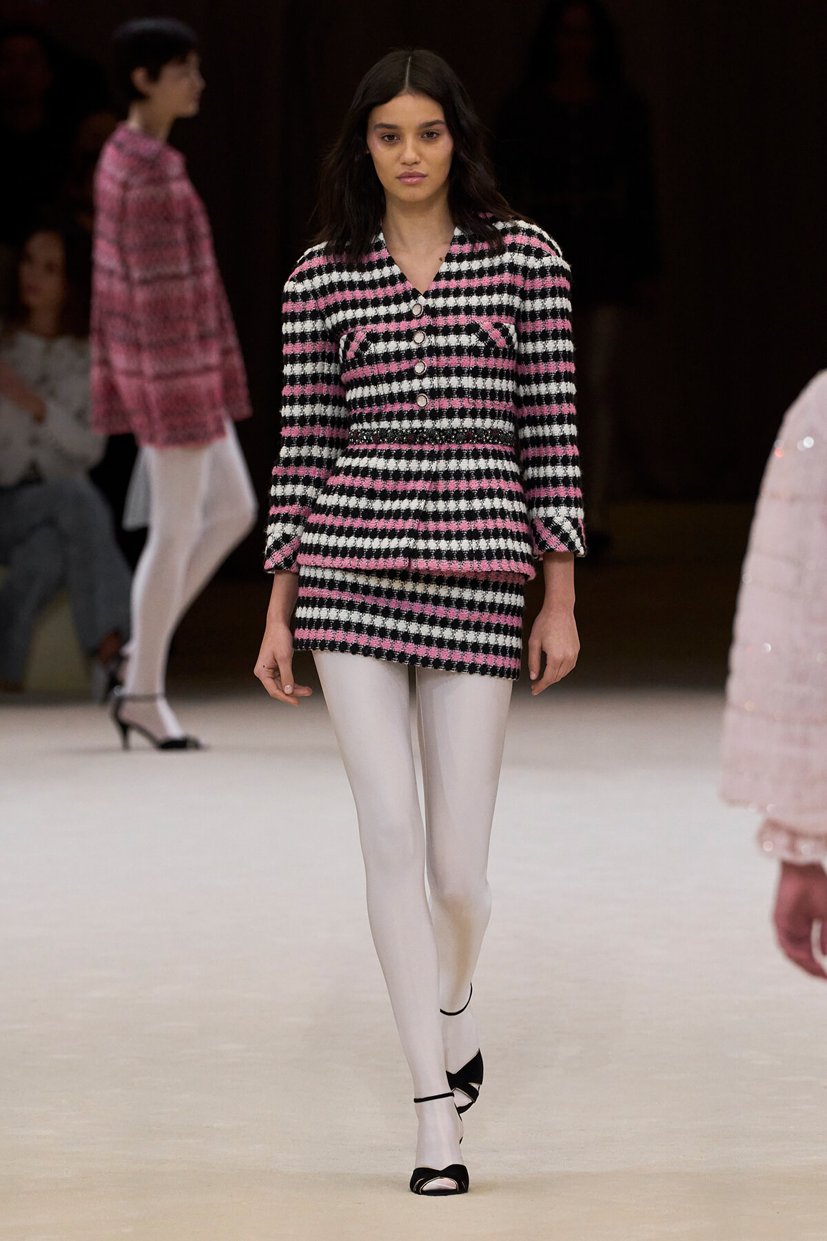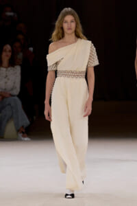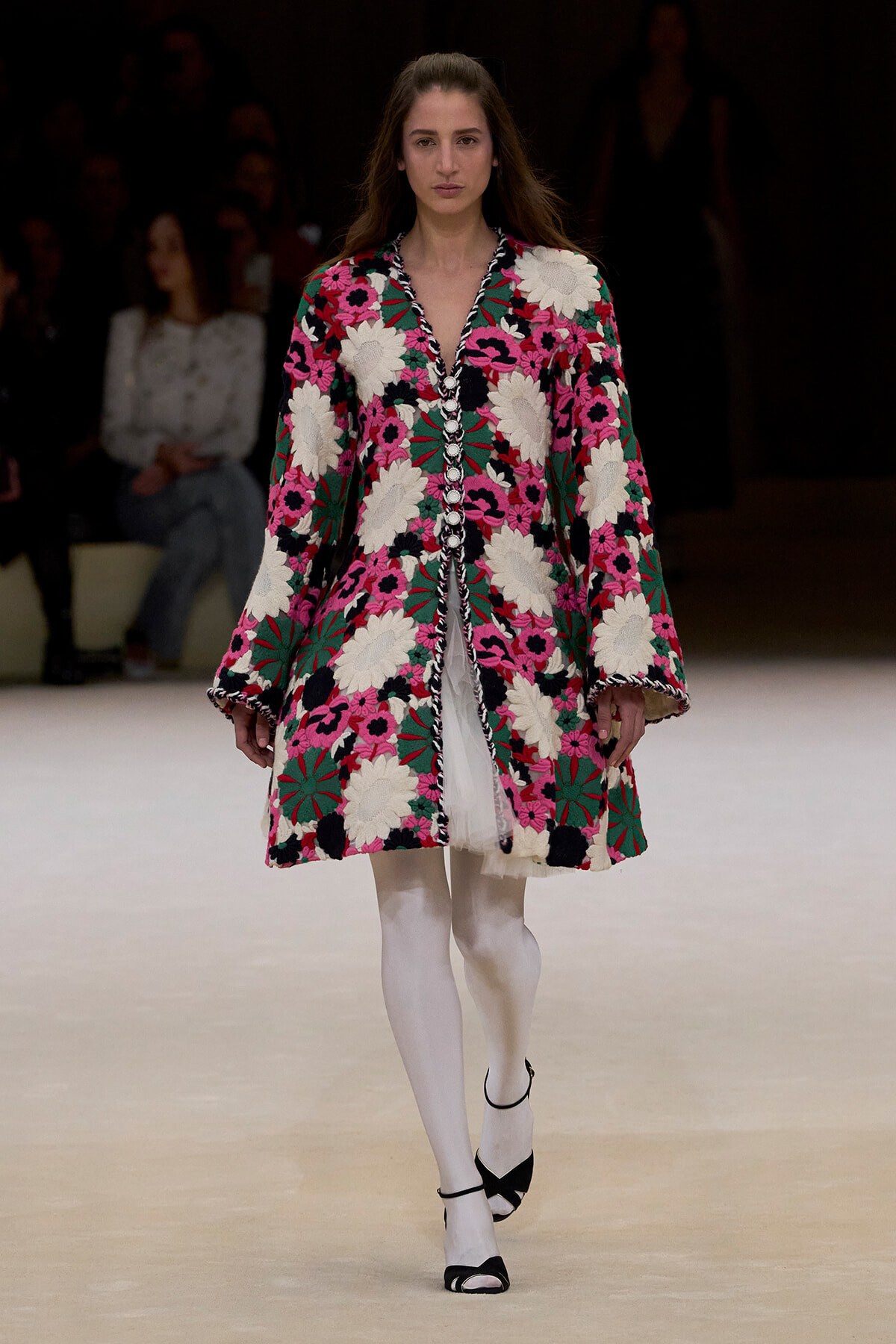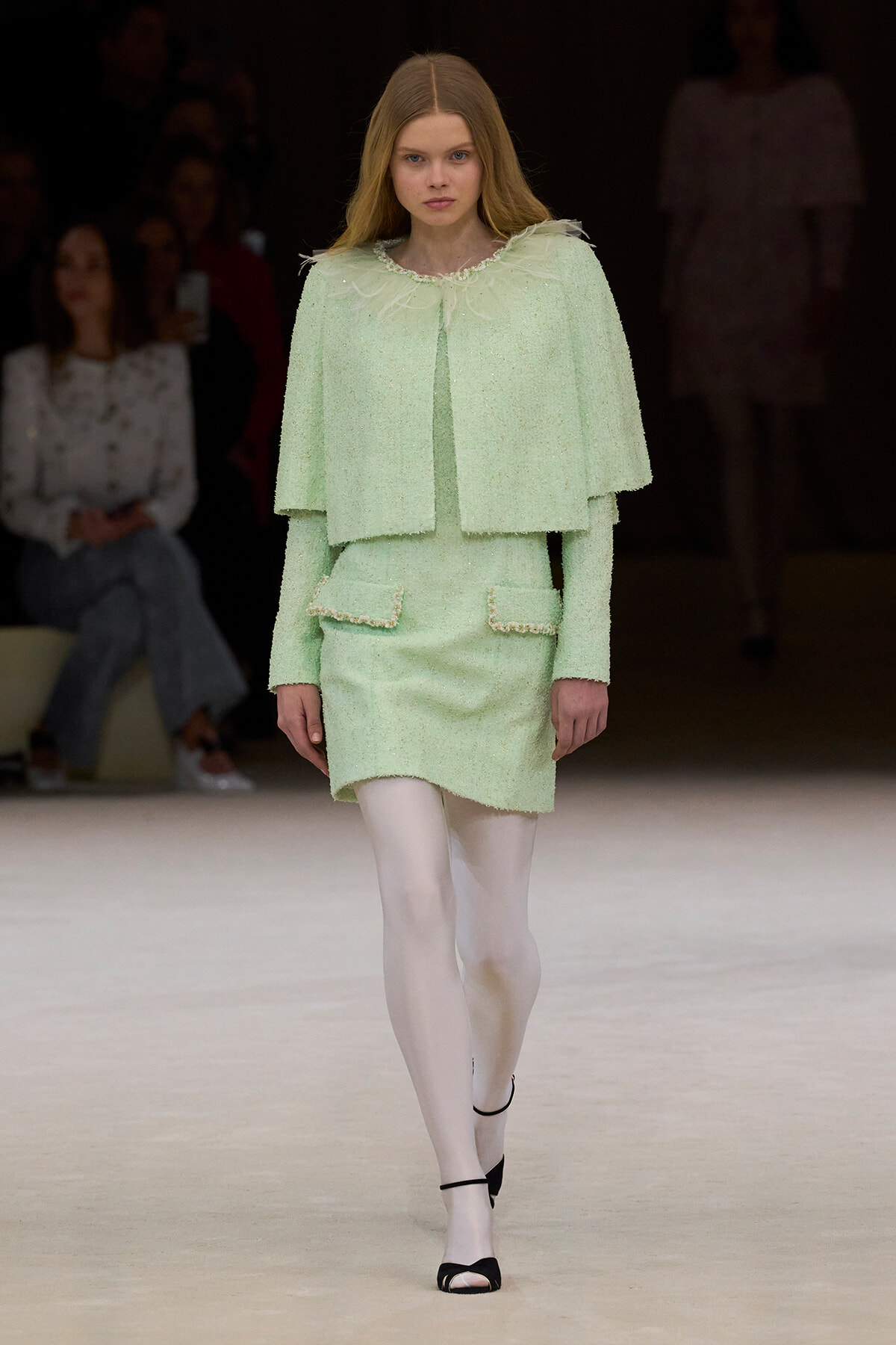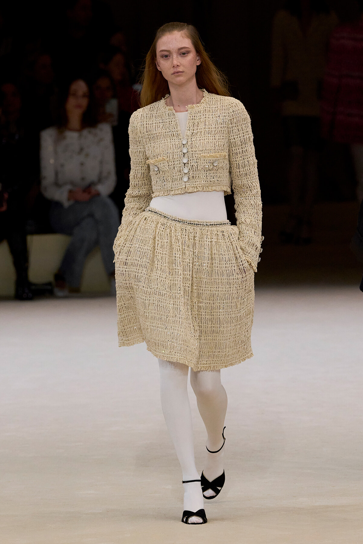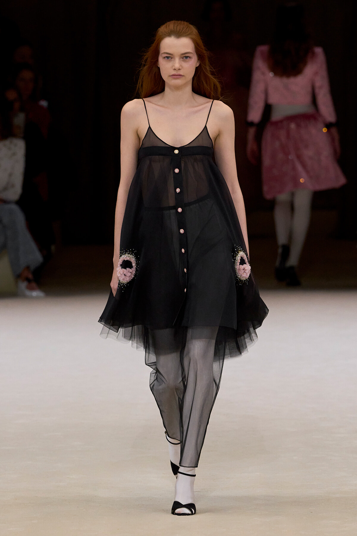 今回の着想源は、装飾品であり実用性の高い”ボタン”。ボタンはそもそも衣類の着脱や開け閉めを容易にするものであり、かつてそのボタンのおかげで女性たちは動きを制限していたものから解放され、自由を得てきた。そして、ガブリエル・シャネルもボタンを非常に重要視してきた。洋服のプロフェッショナルであり、卓越した職人だった彼女が生み出す唯一無二のアリュールにとって、ボタンはまるで宝石のように大胆さと輝きを添えてくれる存在だったのだ。今コレクションでは、女性の解放の象徴であるボタンを出発点に、バレエやダンスの世界へと、物語を広げていく。
