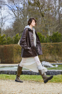 ブランドのルーツでもある、上品なブルジョワルックに英国のアウトドアワードローブや90年代のグランジスタイルを自由にミックス。ハンティングジャケットにはスパンコール刺繍のスリップドレスを。デニムジャケットにはムートンベストを重ねて、E-BOY風のレイヤードシルエットも登場。輝きを放つのは手仕事を駆使したクチュールアイテム。「TEEN CRINO(ティーン クリノ)」とネーミングされた、大きく膨らんだクリノリンスカートは、スワロフスキーストーンやビーズの刺繍を施し、ボンバージャケットやパーカなど日常着とコーディネート。若い世代に向けて夢あふれるスタイルを提案した。