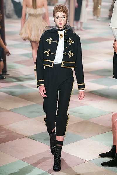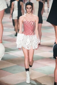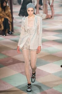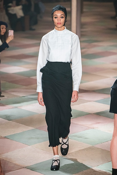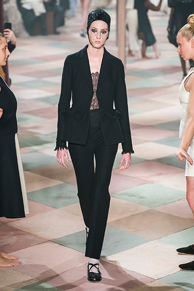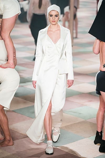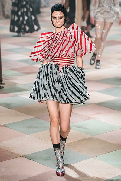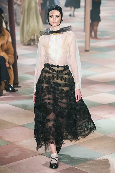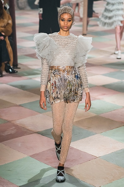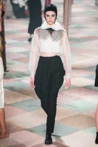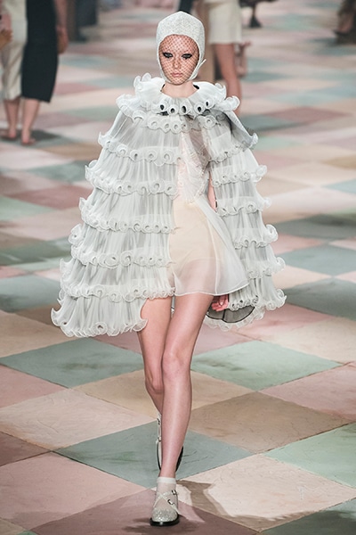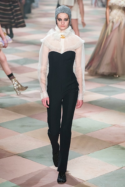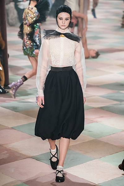 2019年春夏のオートクチュールコレクション、マリア・グラツィア・キウリは、サーカスの思い出と想像をテーマに、ロマンティックな世界を魅せた。 アンクルで絞られたゆったりとしたパンツ、シースルーのシャツ、幾何学的な真っ白いレディなピエロスタイル…… 素材、エンブロイダリー、シルエットが美しく巧みに組み合わさり、サーカスらしい遊び心がありながらも女らしさを表現。 ショーでは、女性のサーカス団Mimbreのパフォーマンスも見られた。