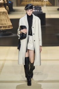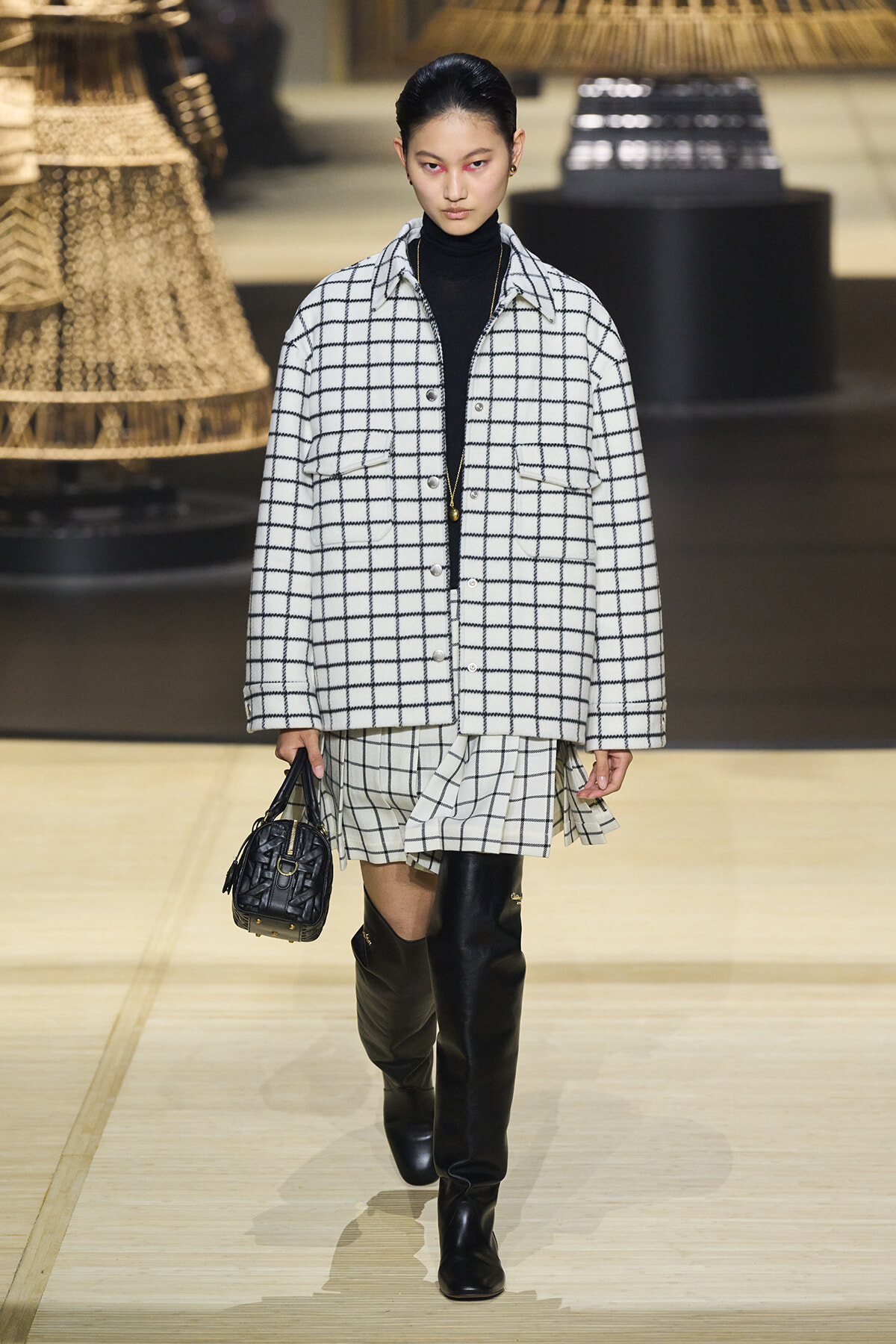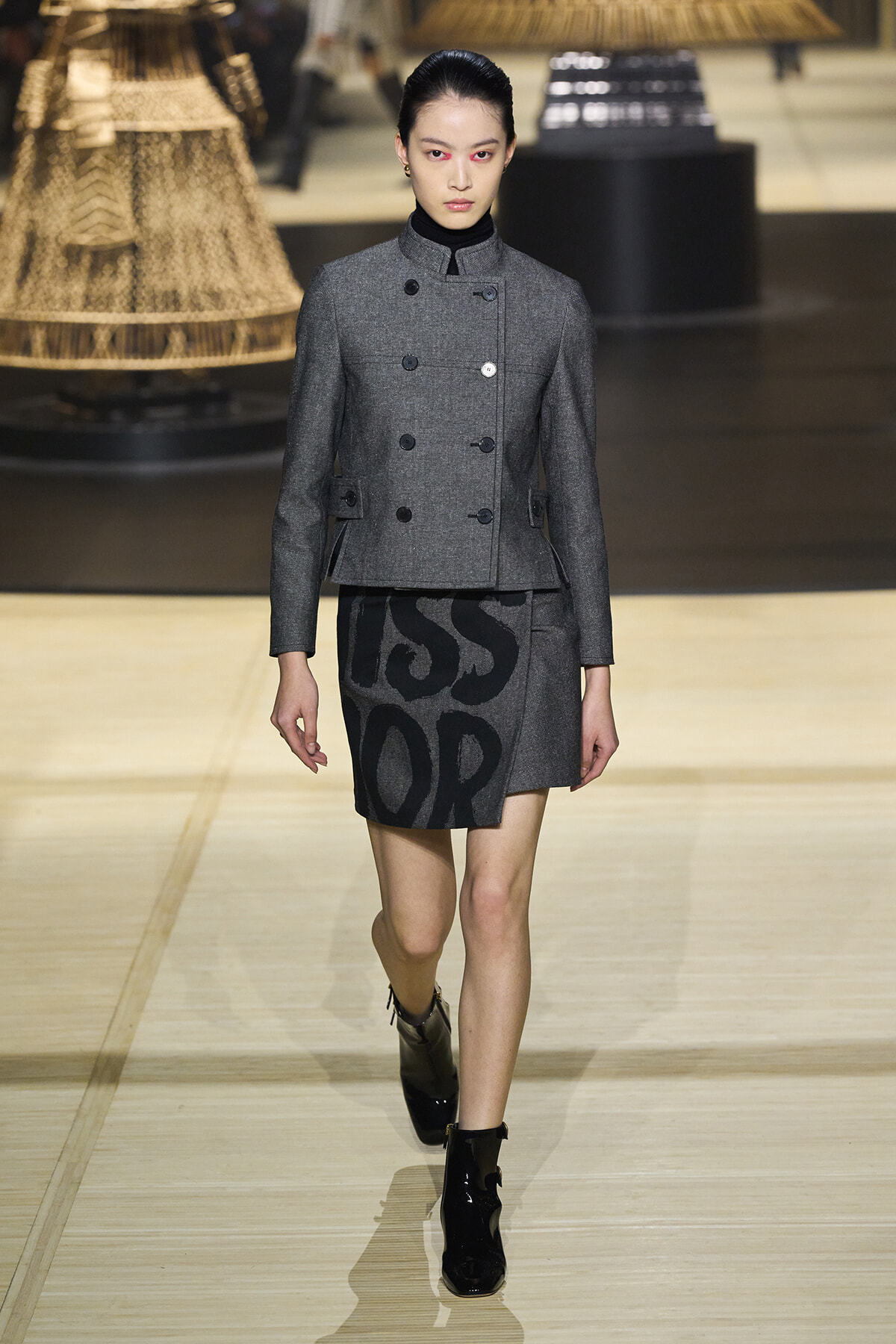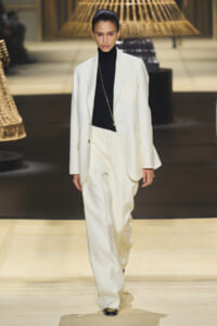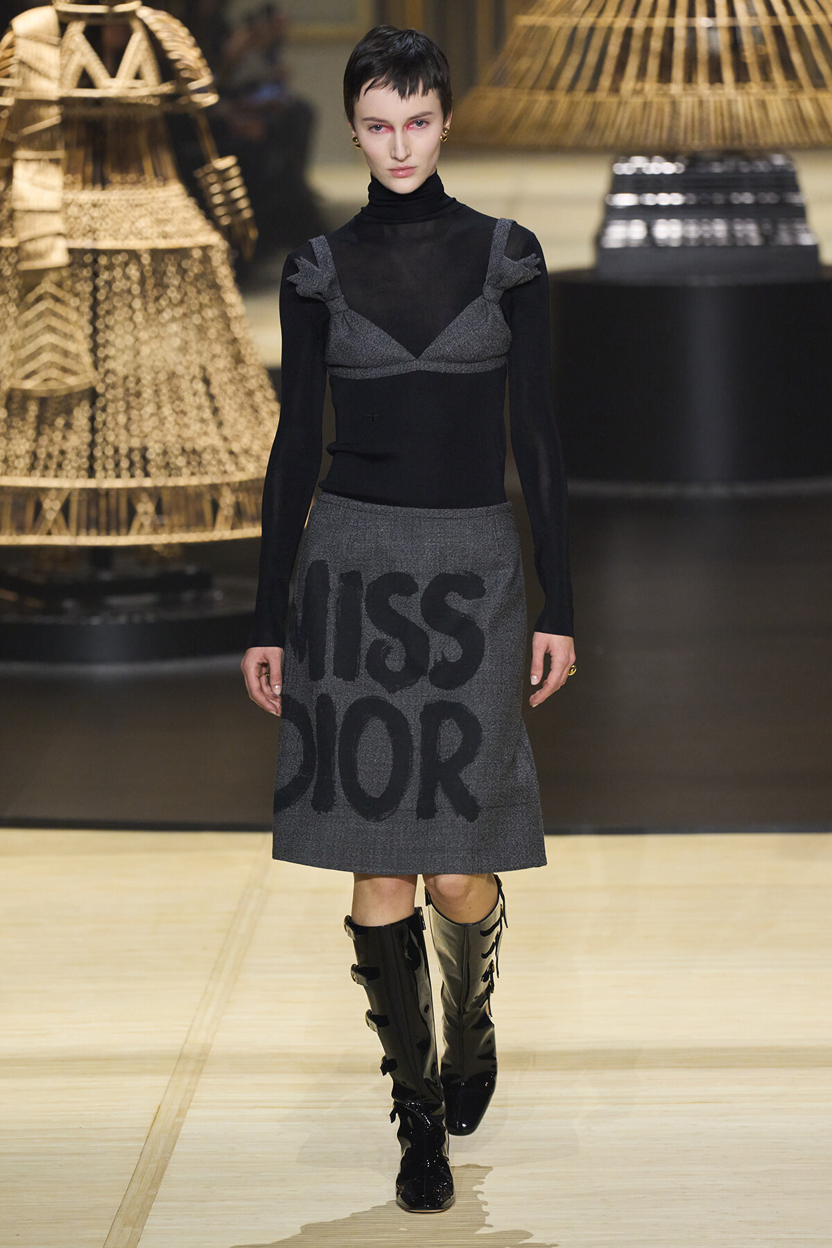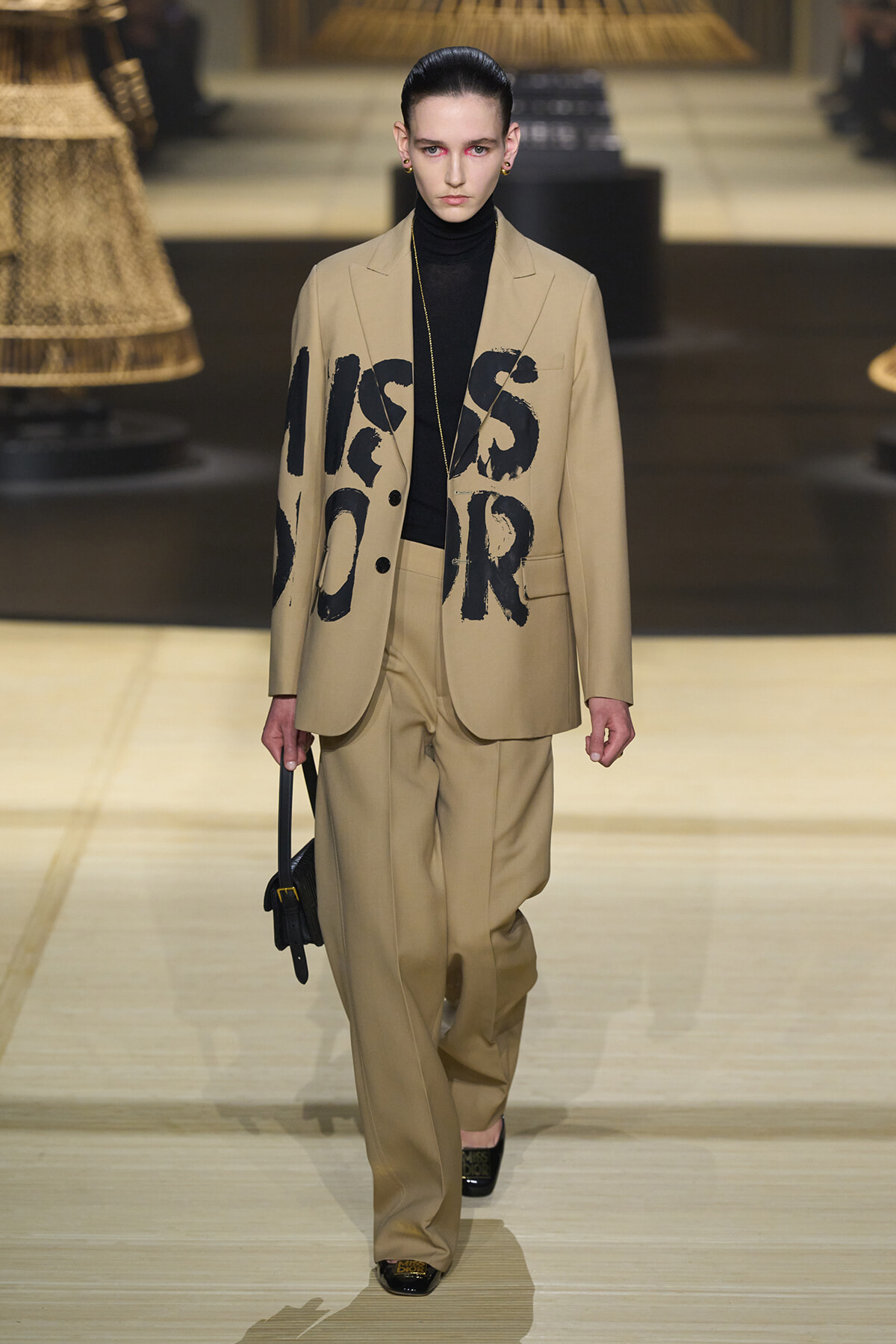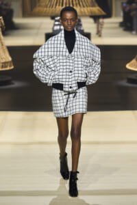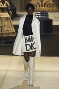 ウーマン・リブが盛り上がり、大量消費社会を迎えて世界的に既製服が普及し始めていた1967年に誕生したプレタポルテのコレクション、「ミス ディオール」をオマージュしたディオール2024-25秋冬コレクション。モデルたちはインド人アーティスト、シャクンタラ・クルカーニによるインスタレーションの中をウォーキング。