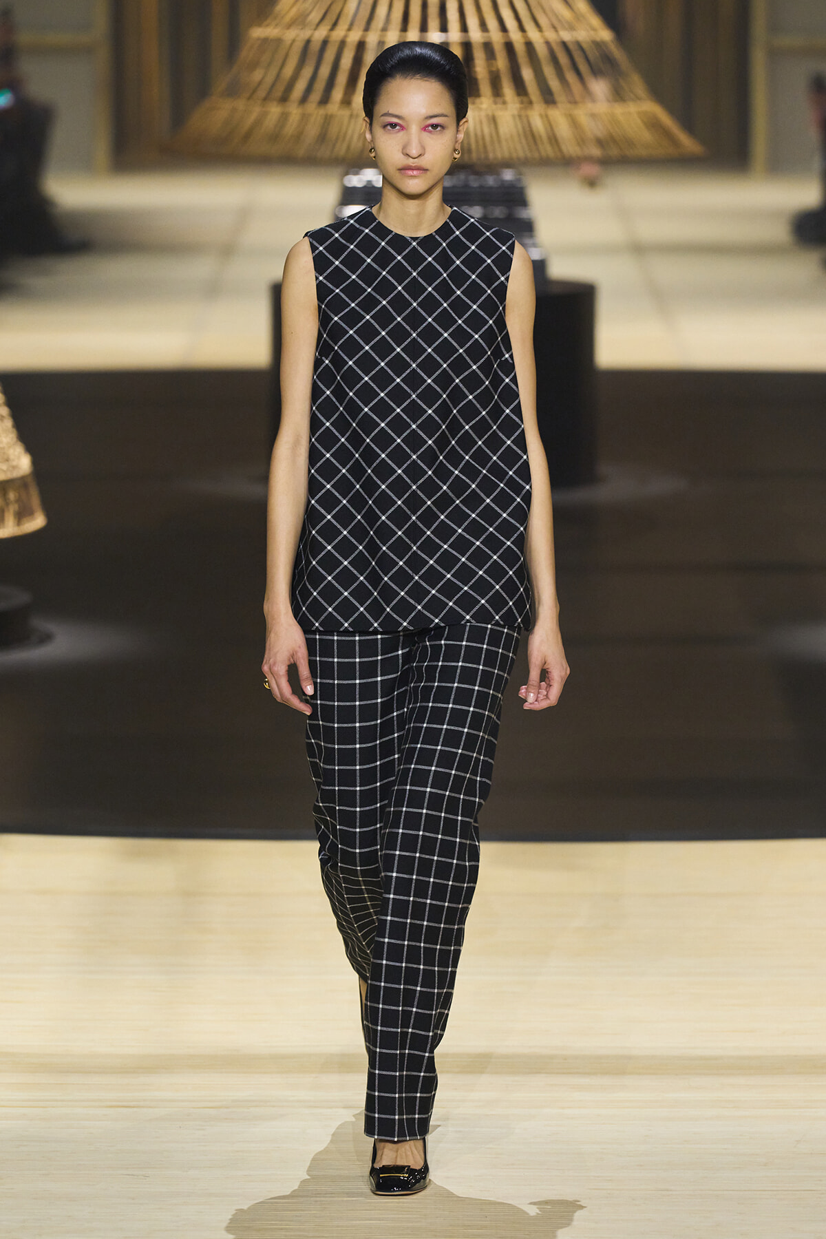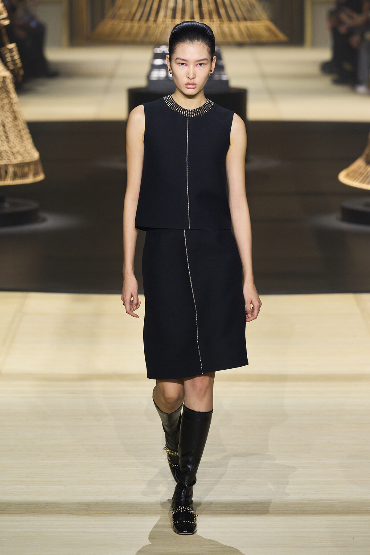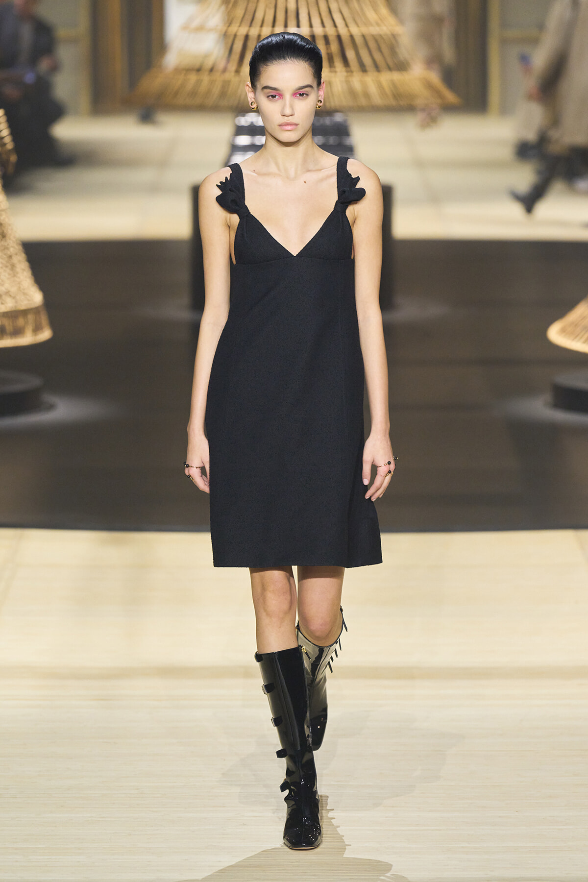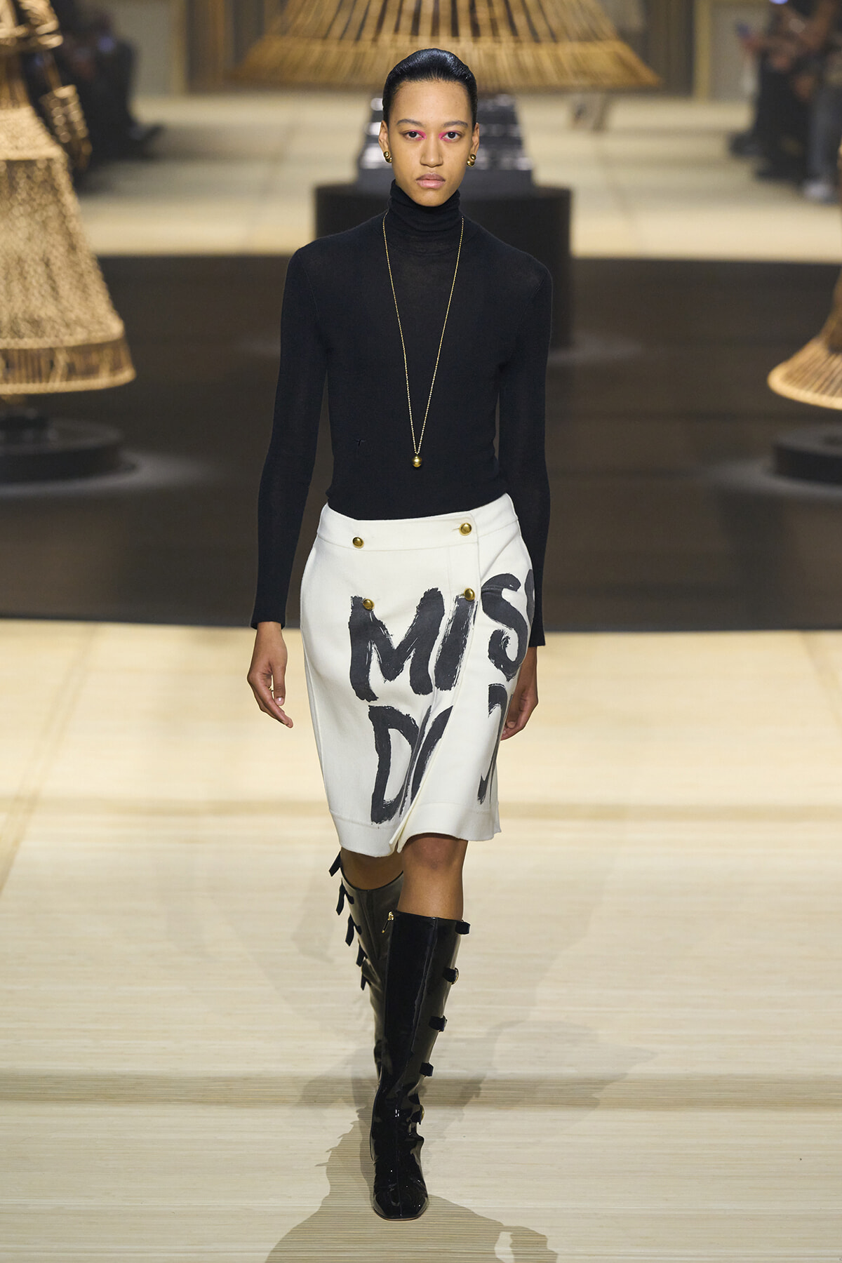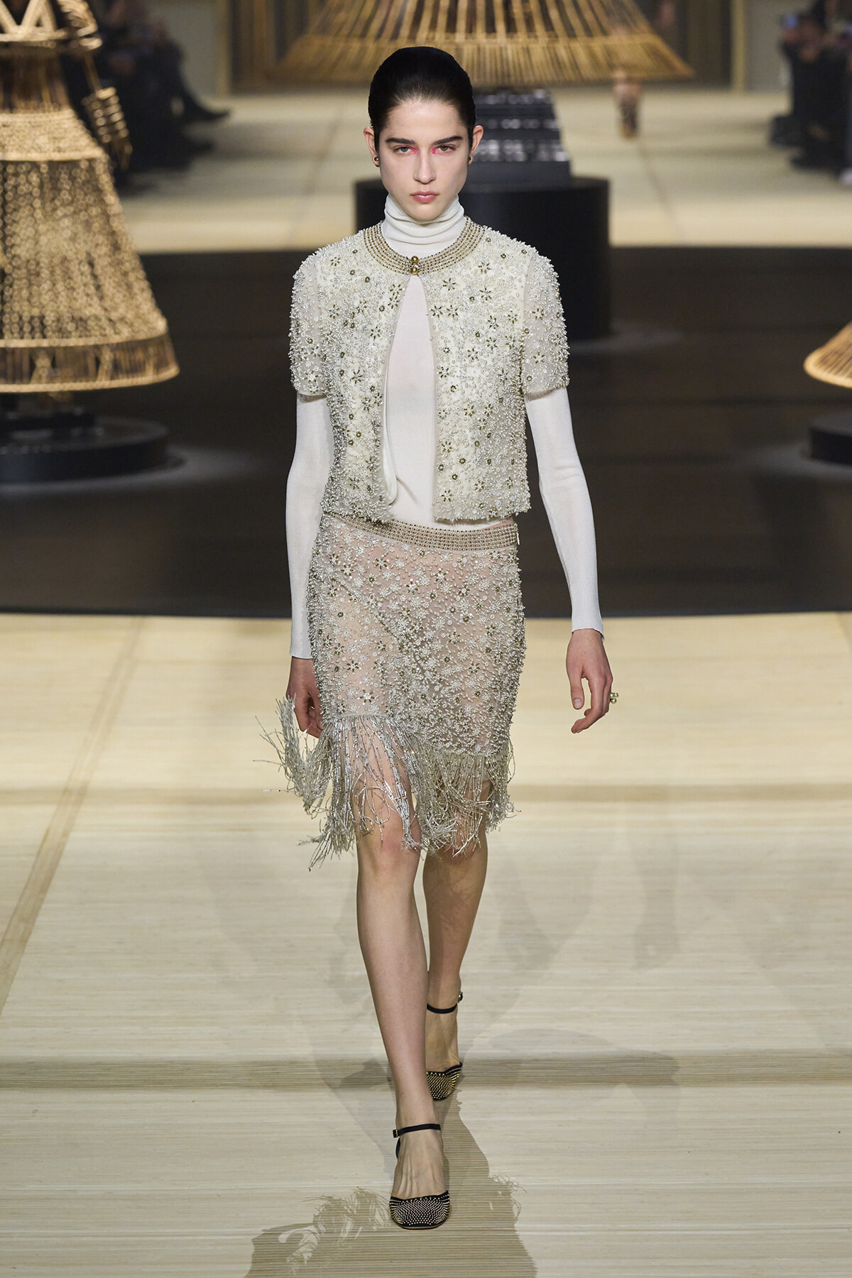 ウーマン・リブが盛り上がり、大量消費社会を迎えて世界的に既製服が普及し始めていた1967年に誕生したプレタポルテのコレクション、「ミス ディオール」をオマージュしたディオール2024-25秋冬コレクション。モデルたちはインド人アーティスト、シャクンタラ・クルカーニによるインスタレーションの中をウォーキング。