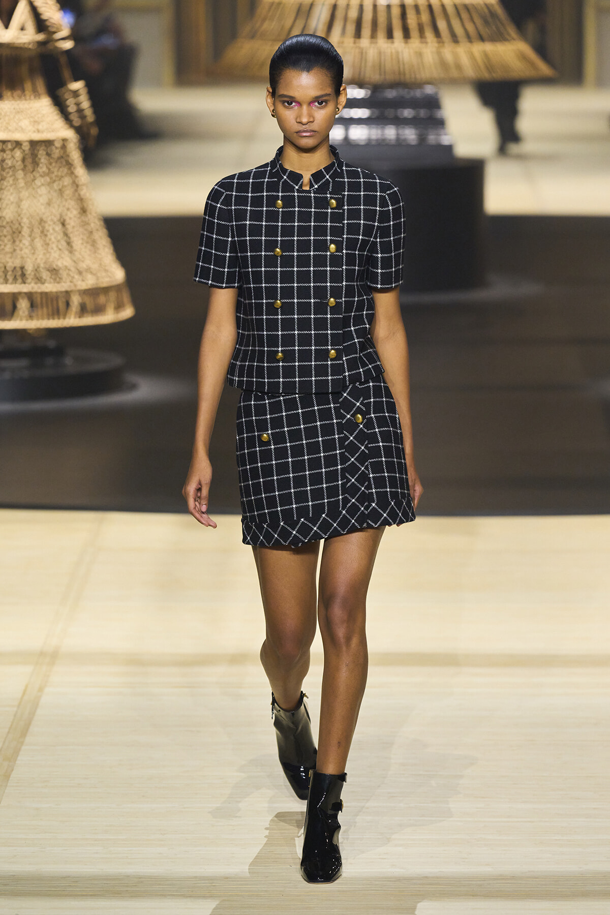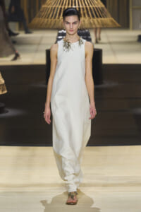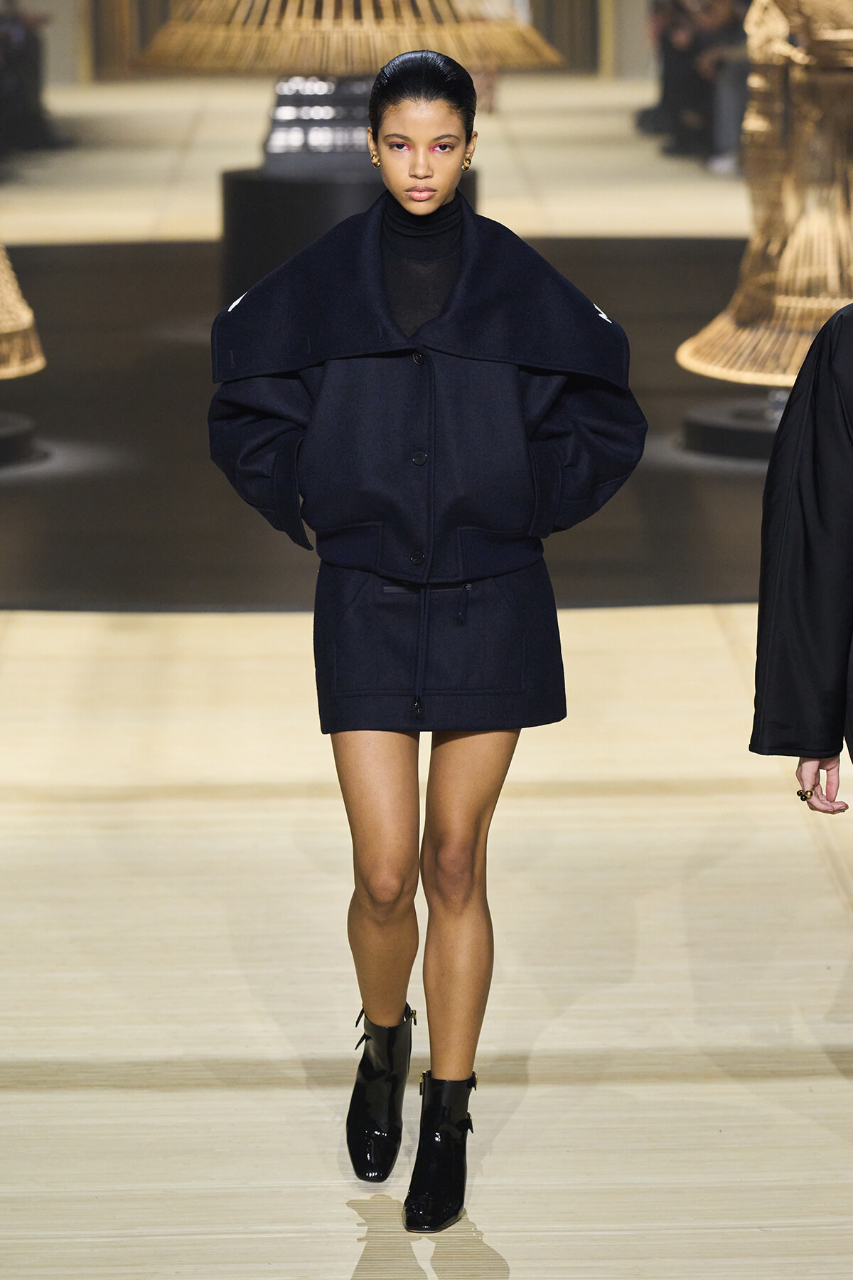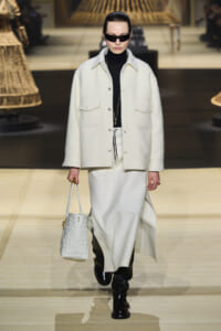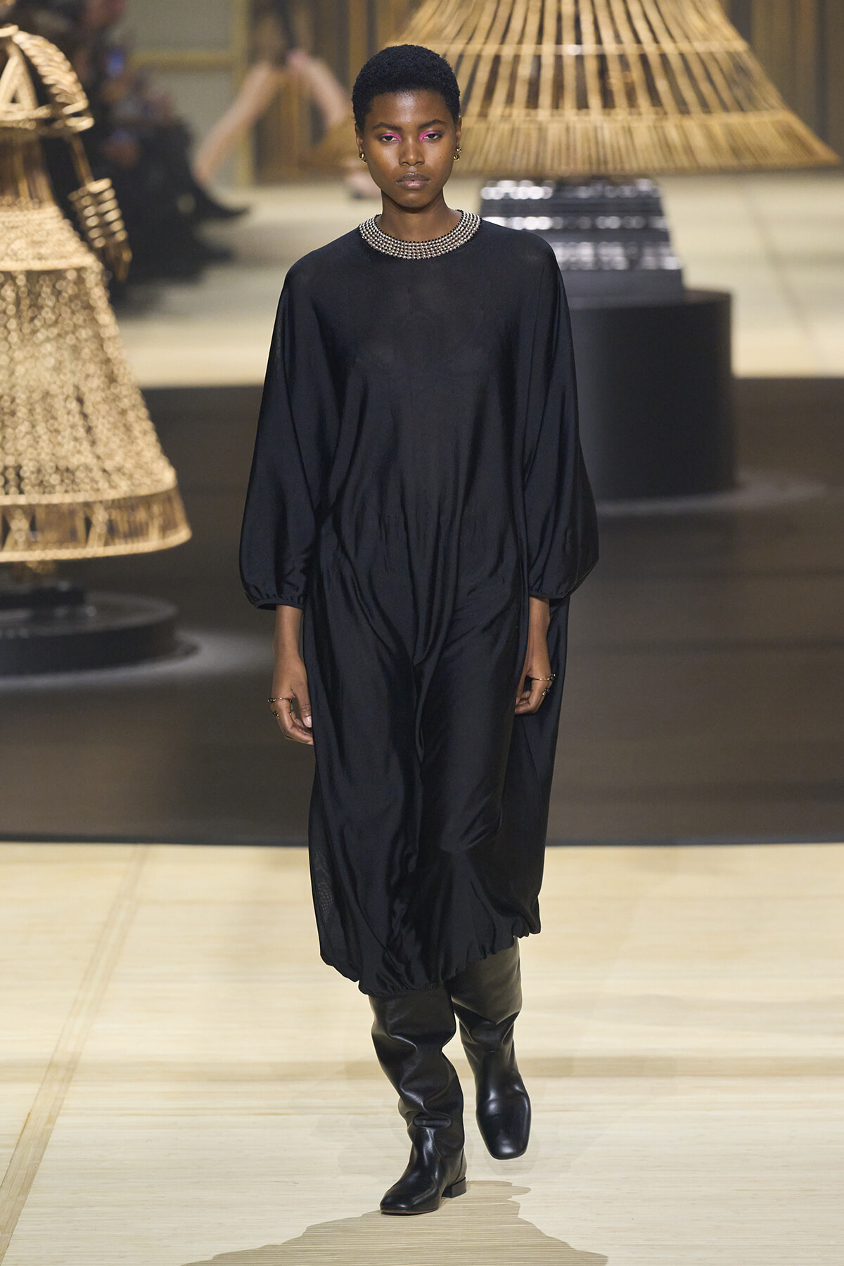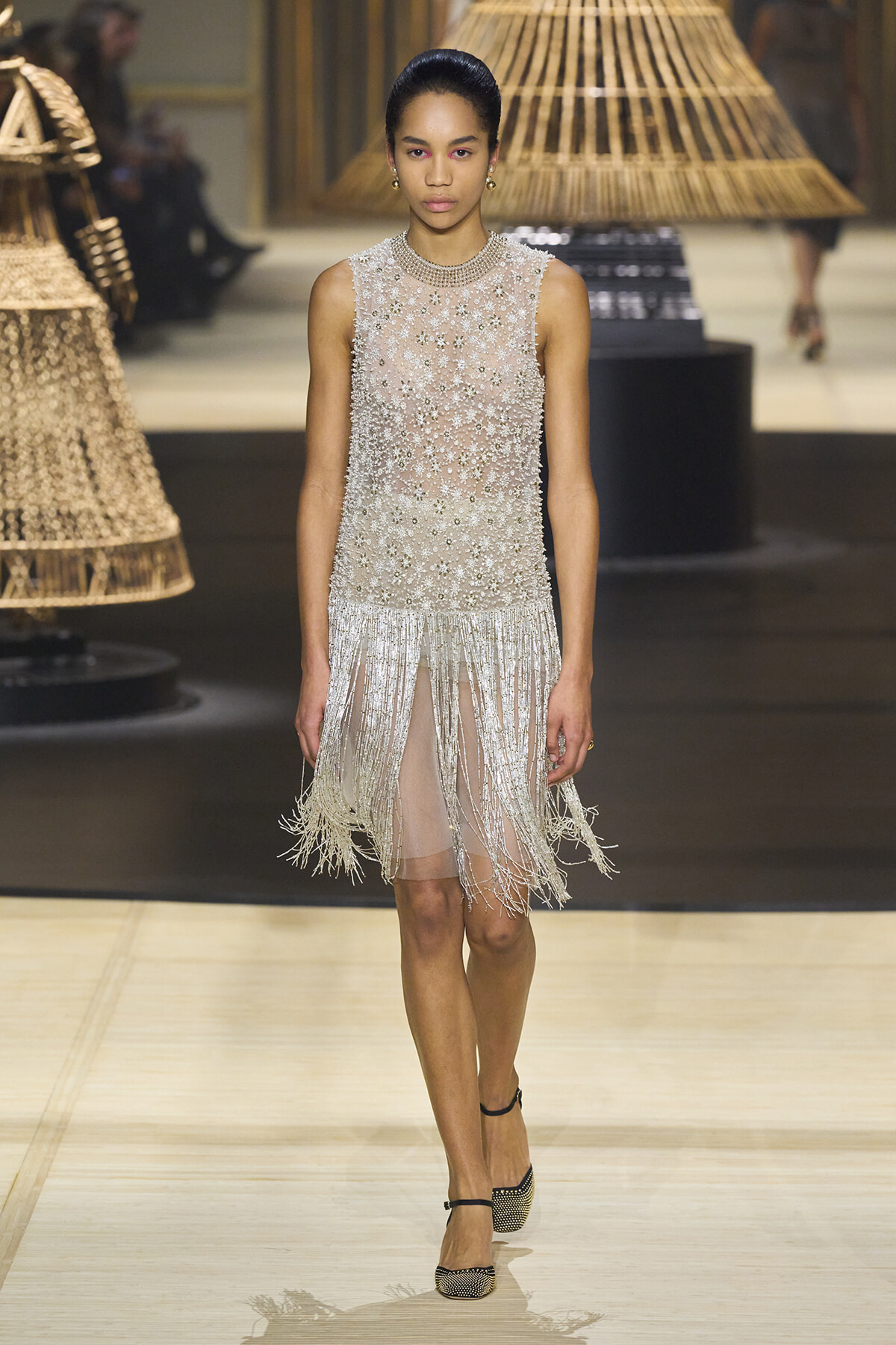 ウーマン・リブが盛り上がり、大量消費社会を迎えて世界的に既製服が普及し始めていた1967年に誕生したプレタポルテのコレクション、「ミス ディオール」をオマージュしたディオール2024-25秋冬コレクション。モデルたちはインド人アーティスト、シャクンタラ・クルカーニによるインスタレーションの中をウォーキング。
