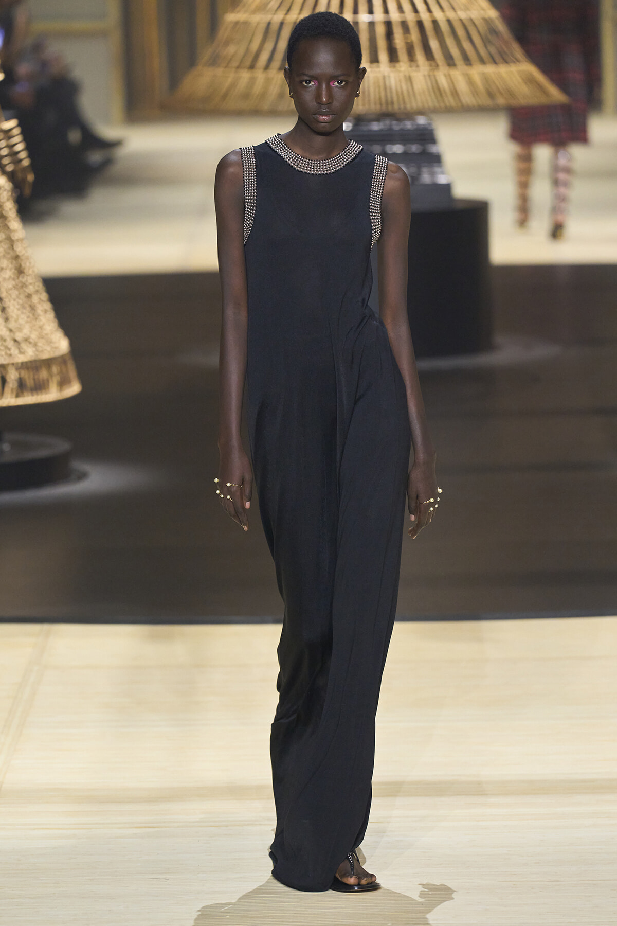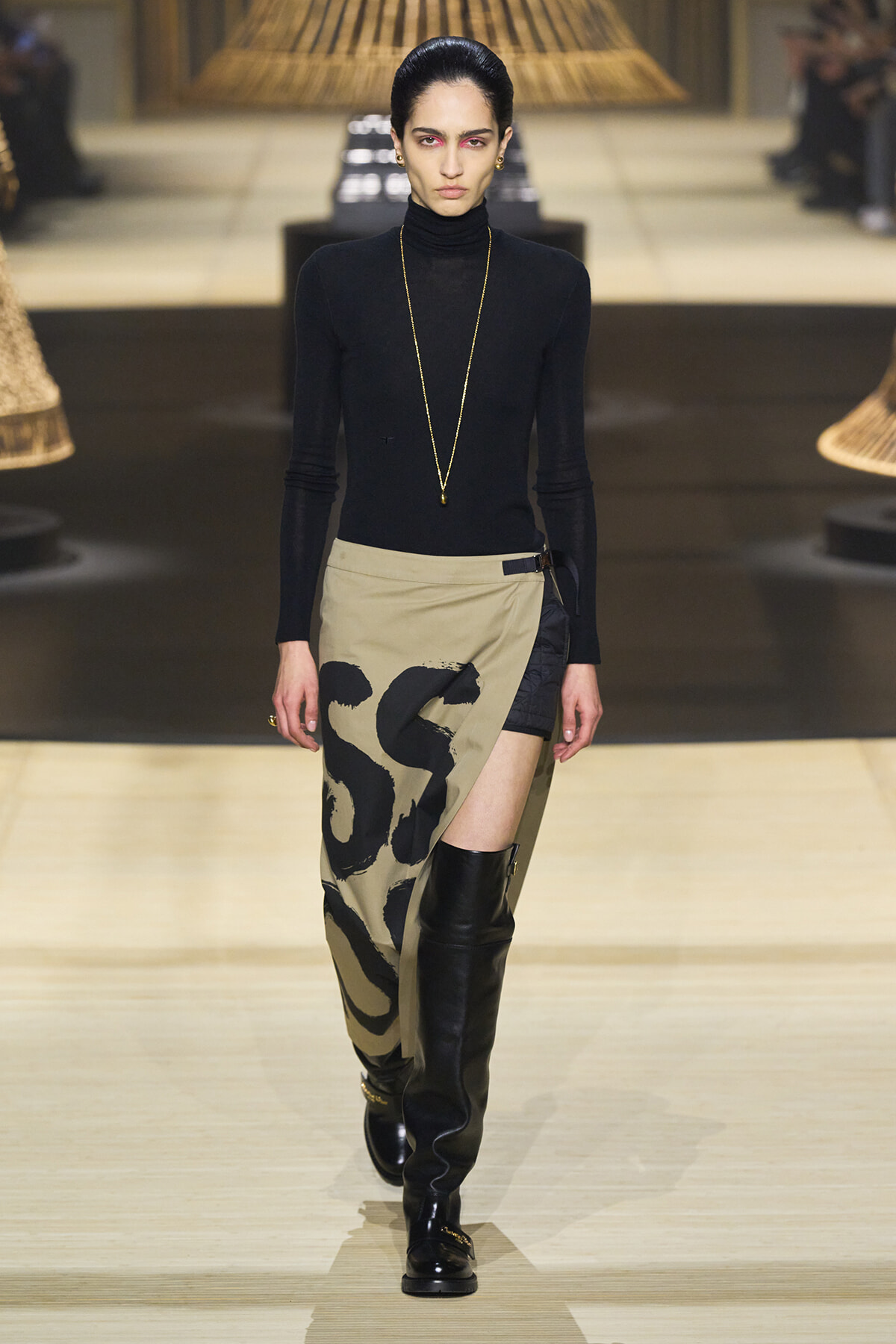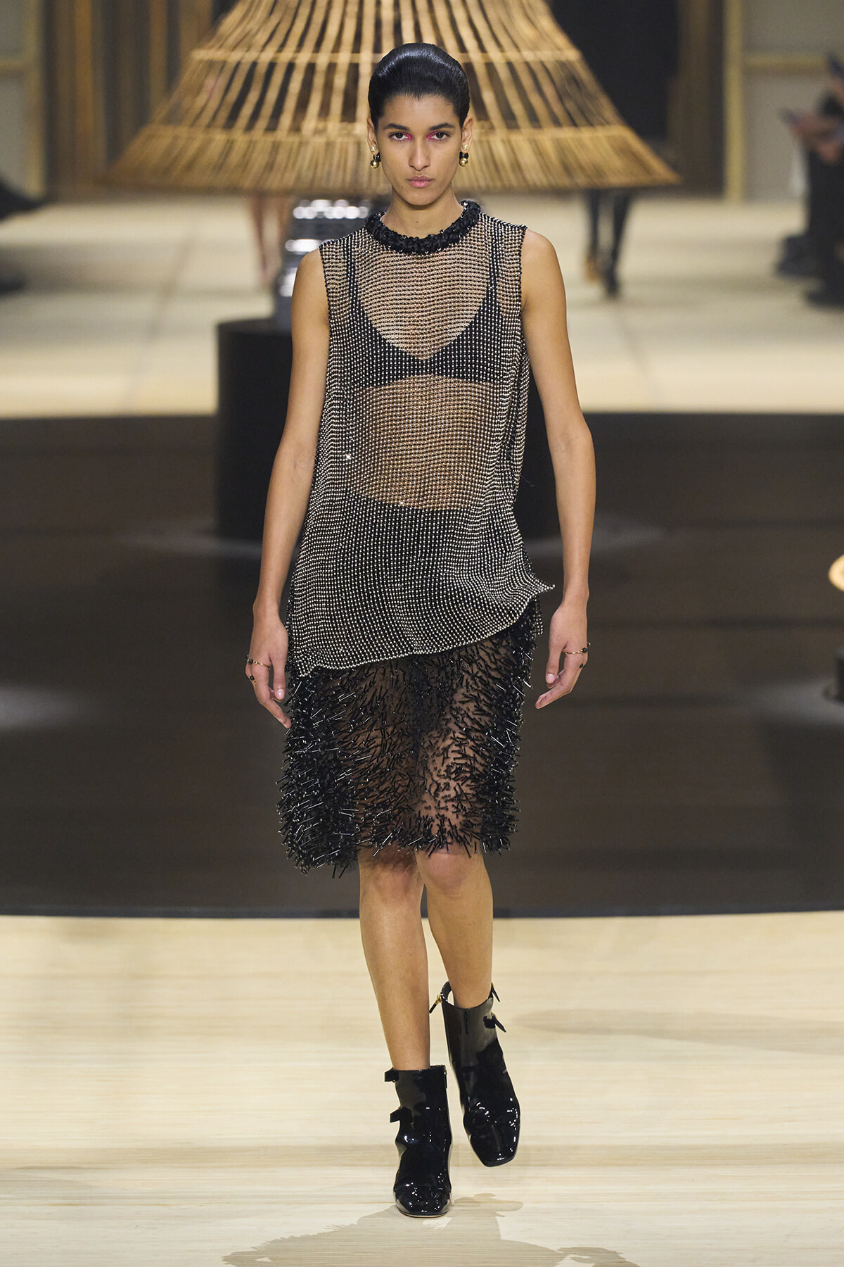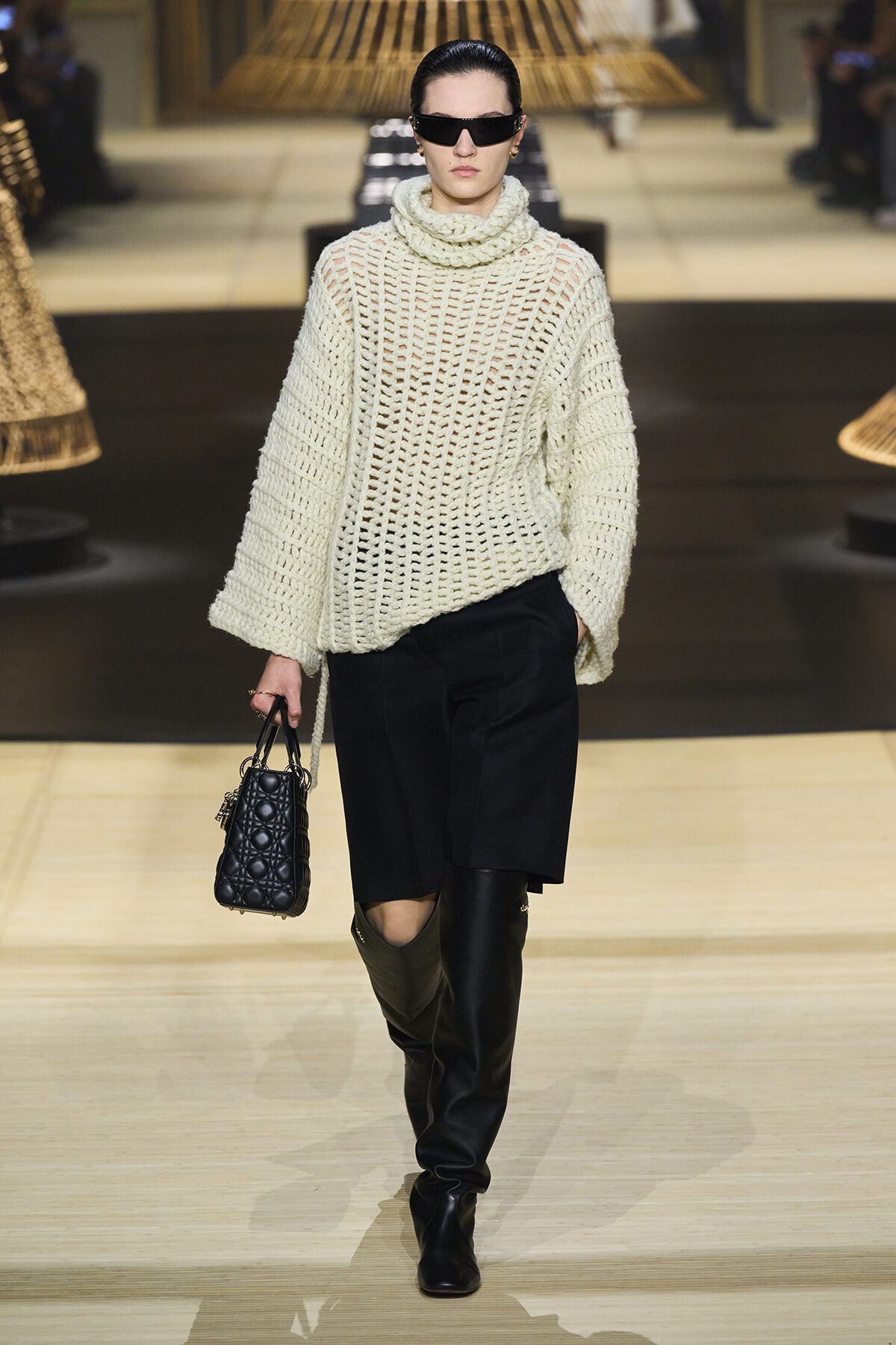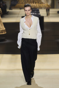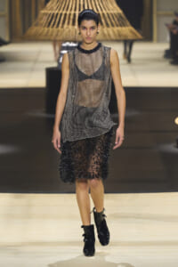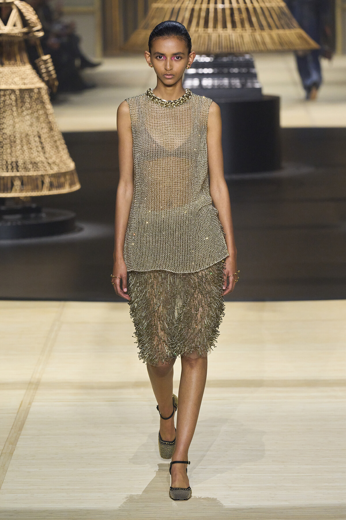 ウーマン・リブが盛り上がり、大量消費社会を迎えて世界的に既製服が普及し始めていた1967年に誕生したプレタポルテのコレクション、「ミス ディオール」をオマージュしたディオール2024-25秋冬コレクション。モデルたちはインド人アーティスト、シャクンタラ・クルカーニによるインスタレーションの中をウォーキング。