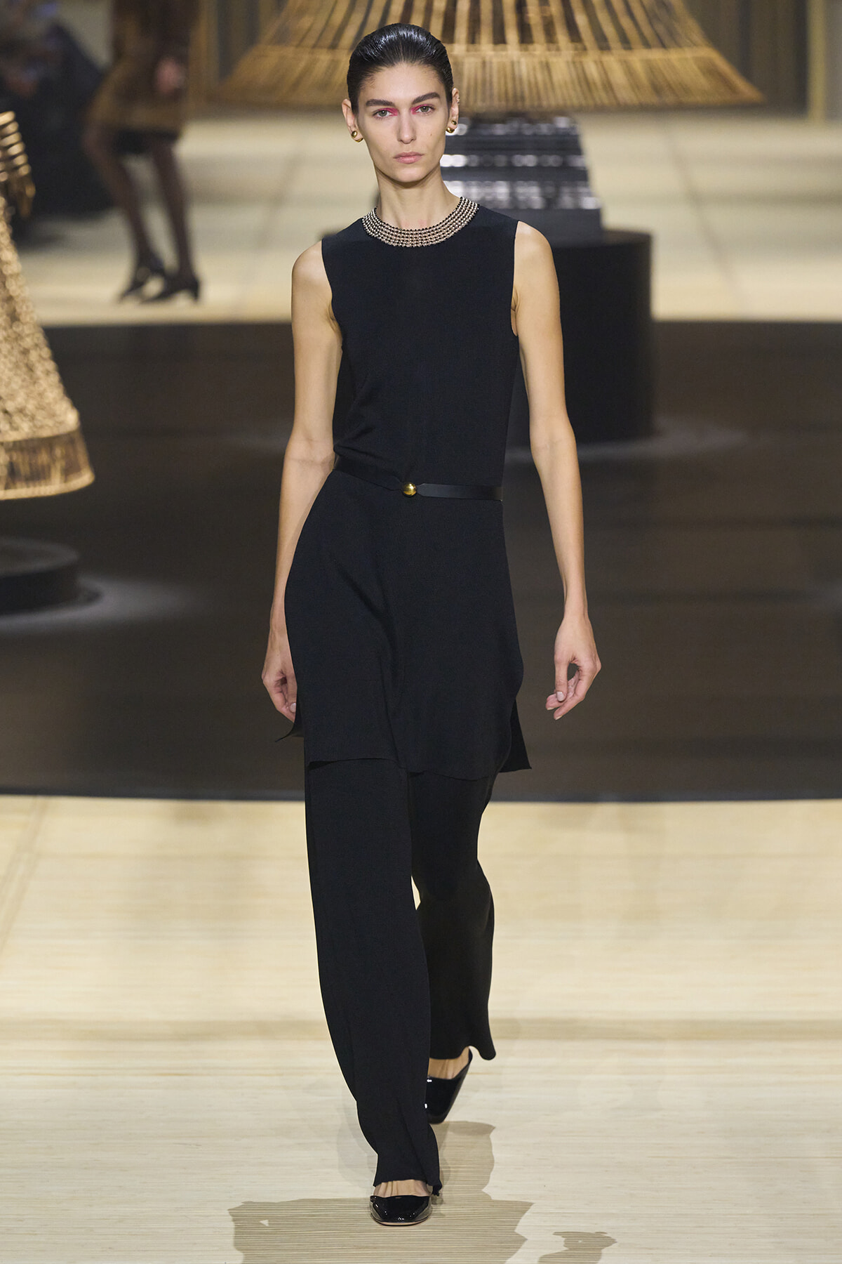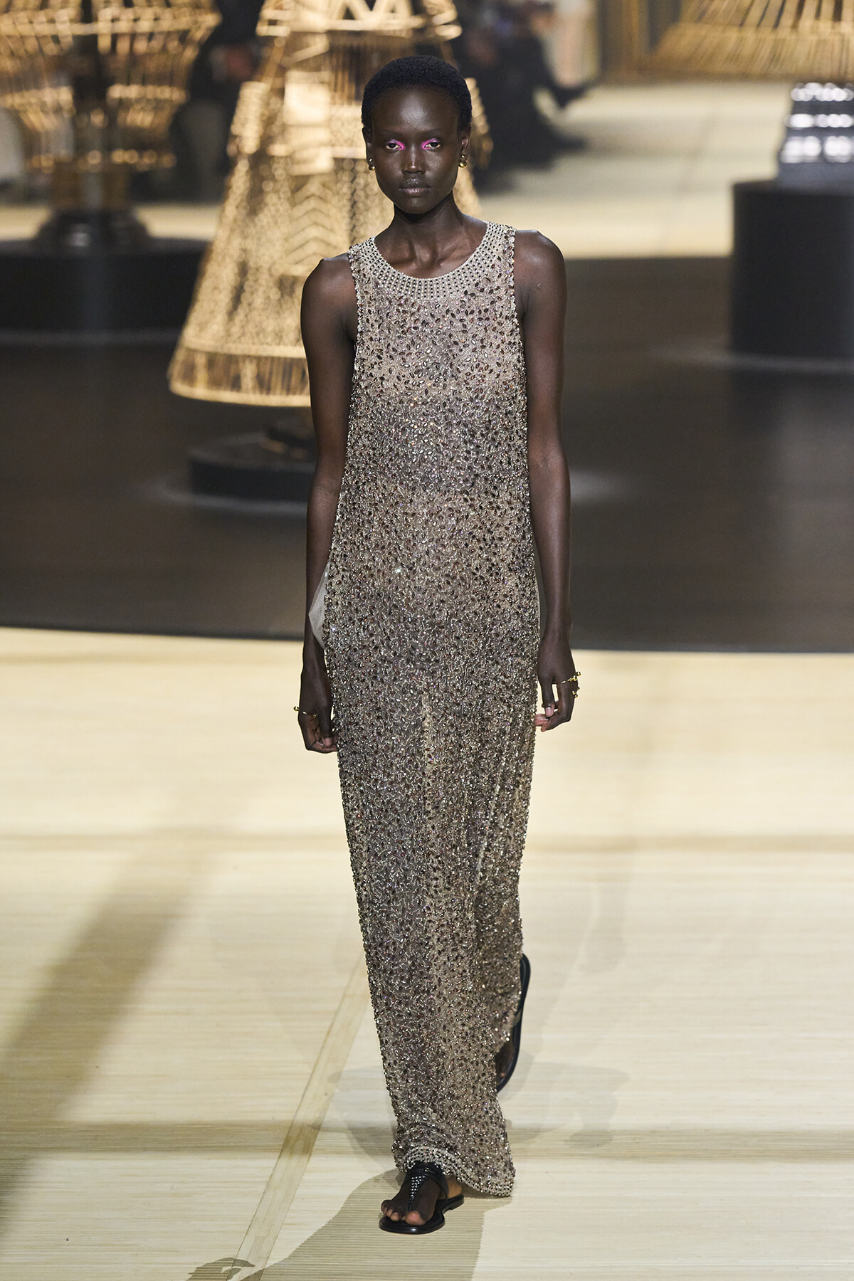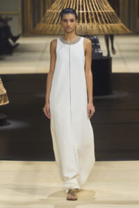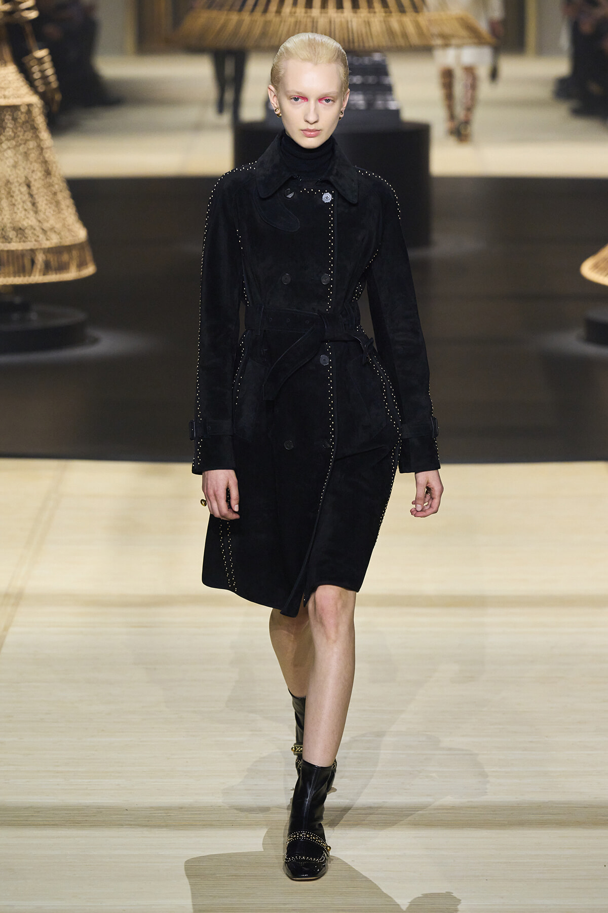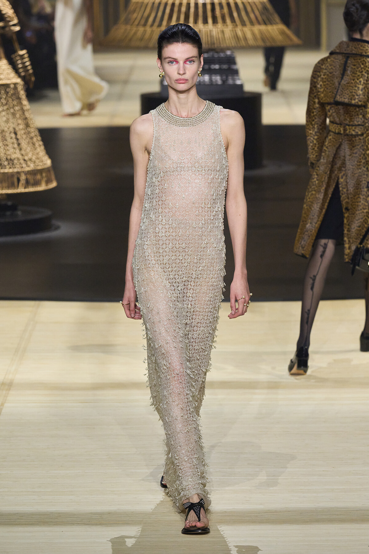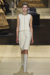 ウーマン・リブが盛り上がり、大量消費社会を迎えて世界的に既製服が普及し始めていた1967年に誕生したプレタポルテのコレクション、「ミス ディオール」をオマージュしたディオール2024-25秋冬コレクション。モデルたちはインド人アーティスト、シャクンタラ・クルカーニによるインスタレーションの中をウォーキング。