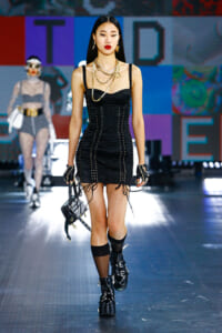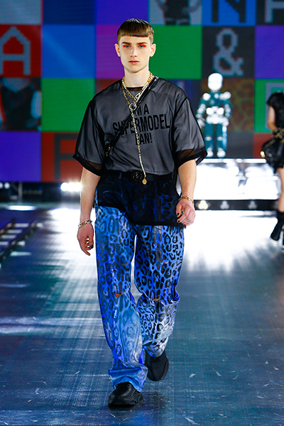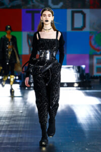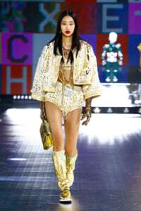 ドルチェ&ガッバーナの21年秋冬コレクションのランウェイには、イタリア技術研究所の(IIT)の多機能ヒューマノイド(人間のような)ロボット「iCub」と「R1」がモデルとともに登場。テーマはずばり「ネクストチャプター(次の章)」。90年代に一世を風靡したスーパーモデルのスタイルを、デジタルの世界を通して新たに解釈した。
