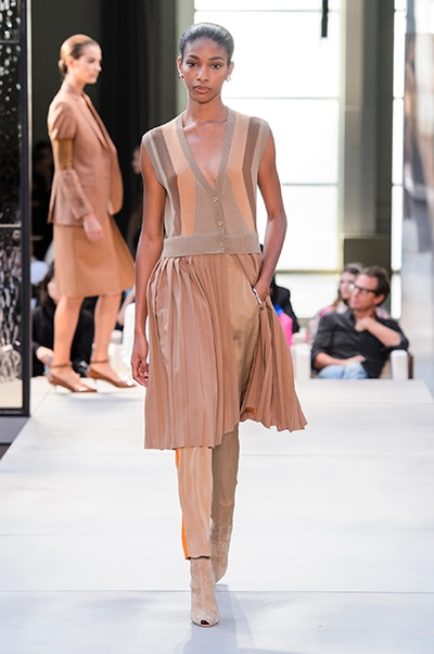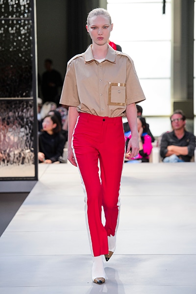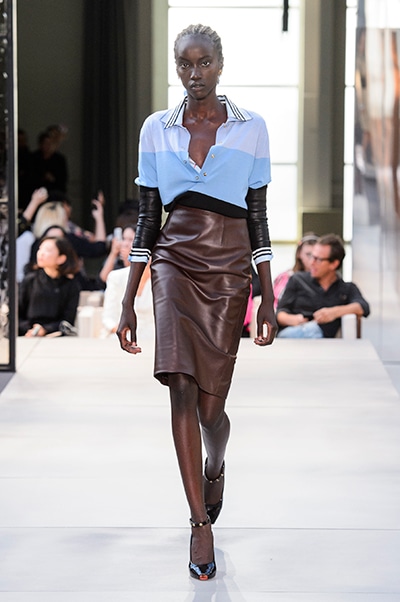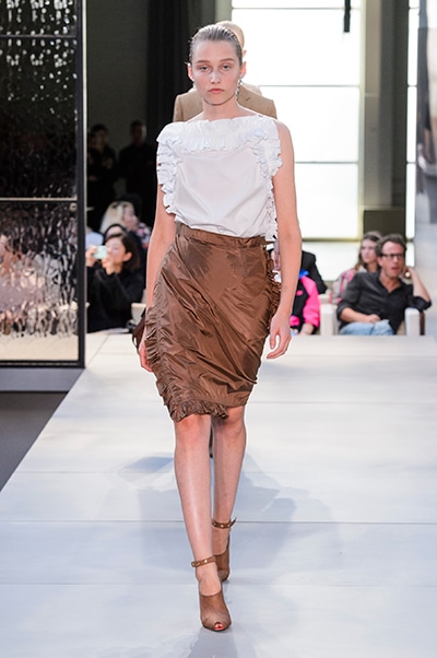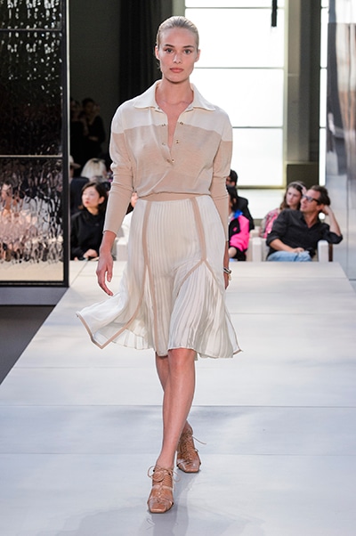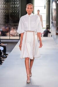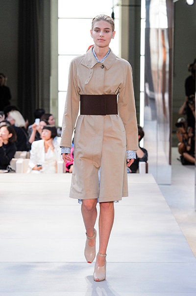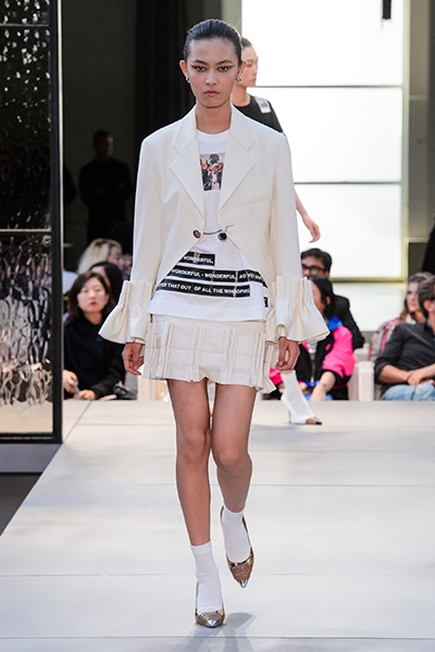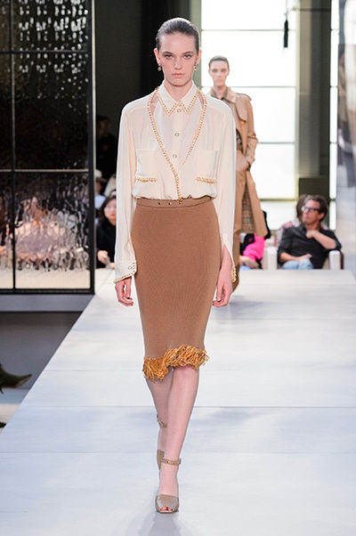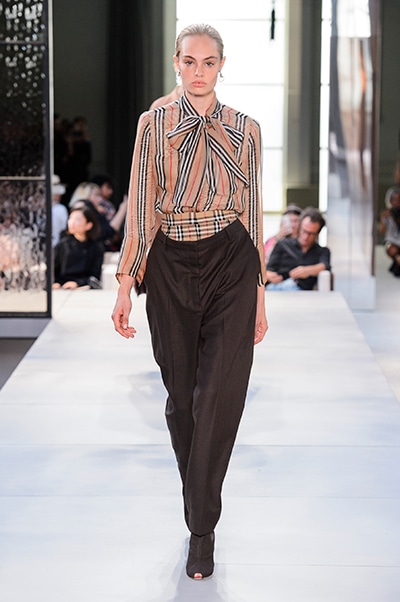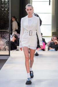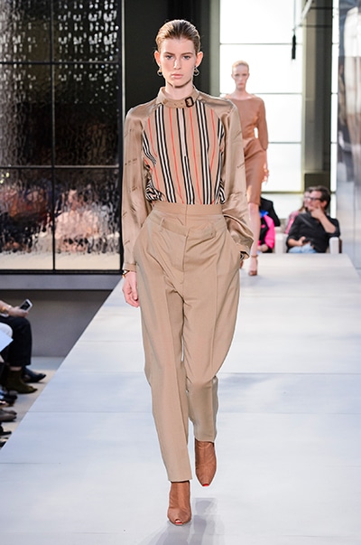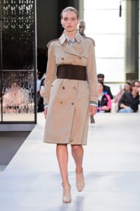 その言葉通り、「キングダム」をテーマに、バーバリーの伝統、コード、英国らしさを、マスキュリンなシャツ、プリーツスカート、ペンシルスカートなどで、モダンにコンテンポラリーに表現した。