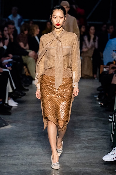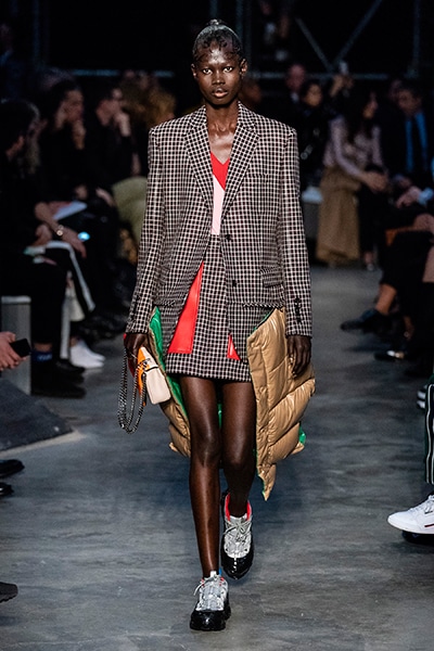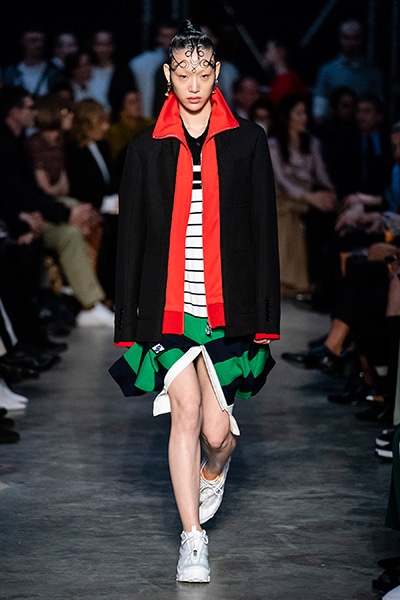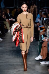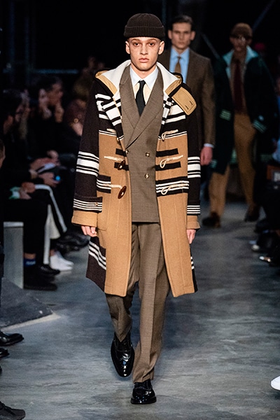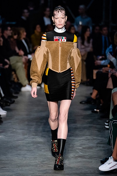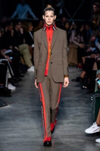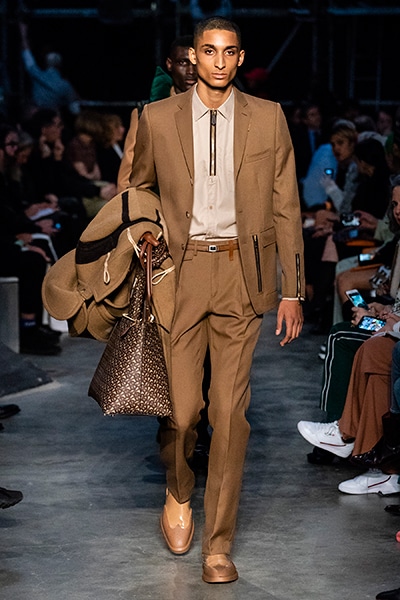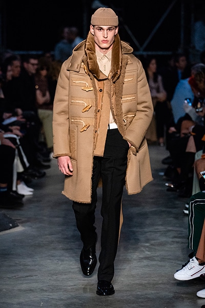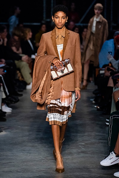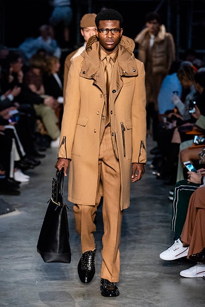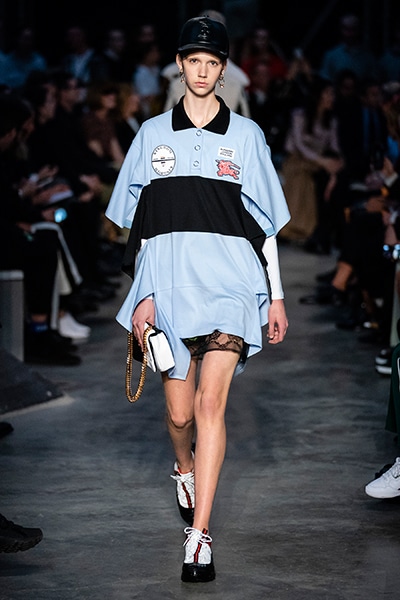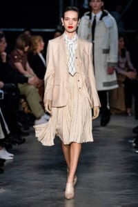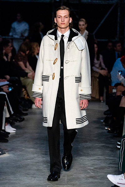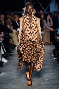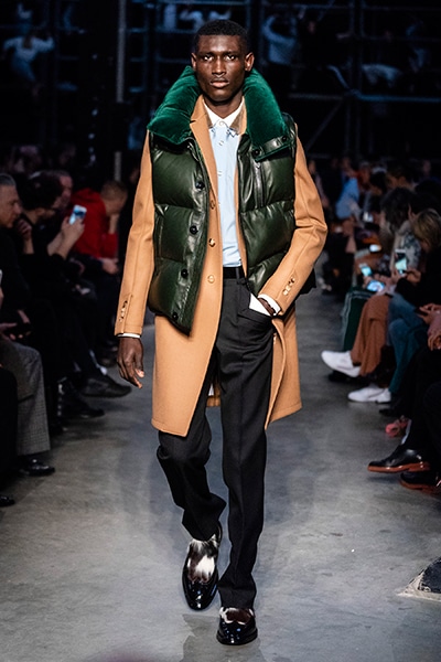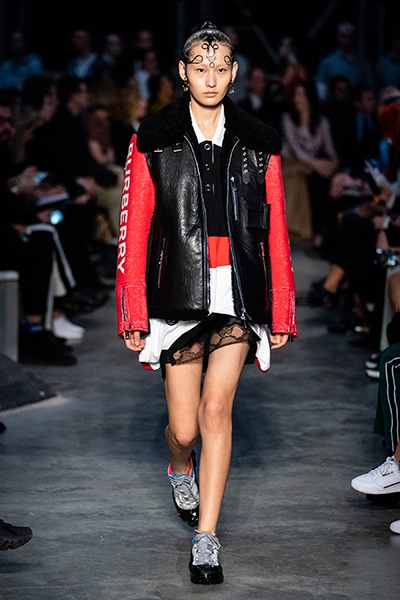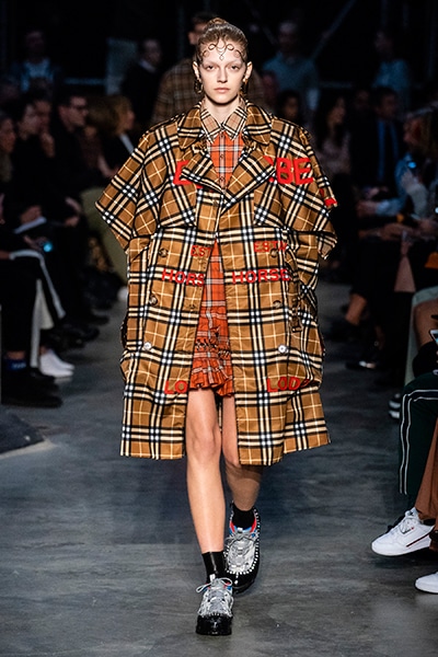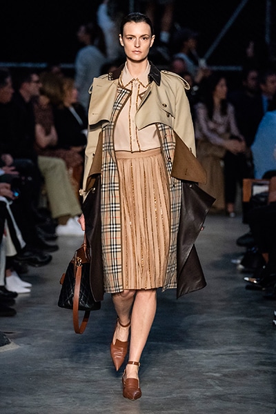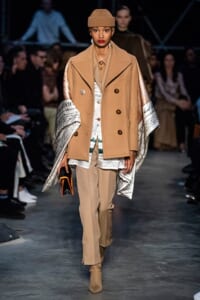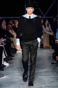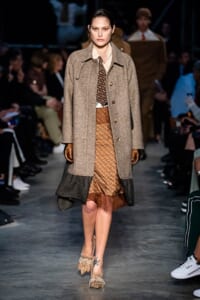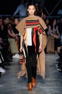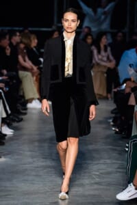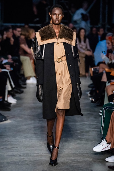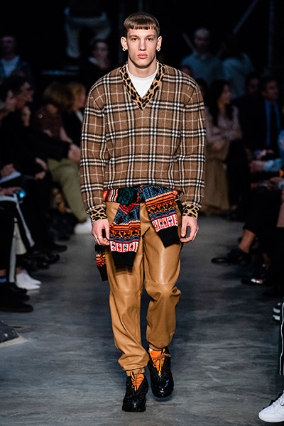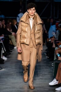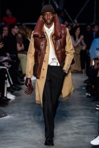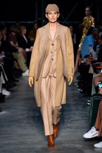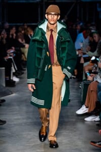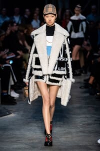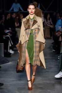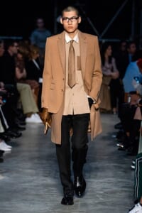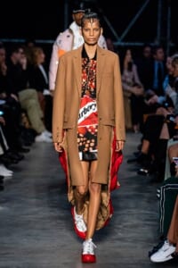2シーズン目を迎えたリカルド・ティッシによるバーバリー。「テンペスト」と名付けられた2019年の秋冬コレクションは、イギリス文化のなかから、確立された構造や形式と、反抗的で自由奔放な側面が共存している様にフォーカスし、ガール、ボーイ、レディ、ジェントルマンの4つのキャラクターを展開。 赤とグリーンなどの強い色同士の掛け合わせ、トラッドと革新性が融合したようなパネル切り替えのトレンチコート、スポーティなドレスとアウターなど、相反する要素をリカルド流のゴシックムードとストリートロックテイスト漂うブリッティシュスタイルとして提案。