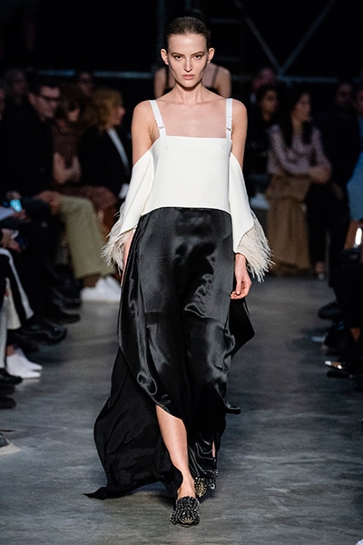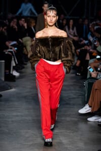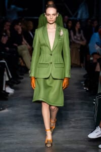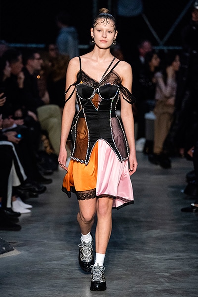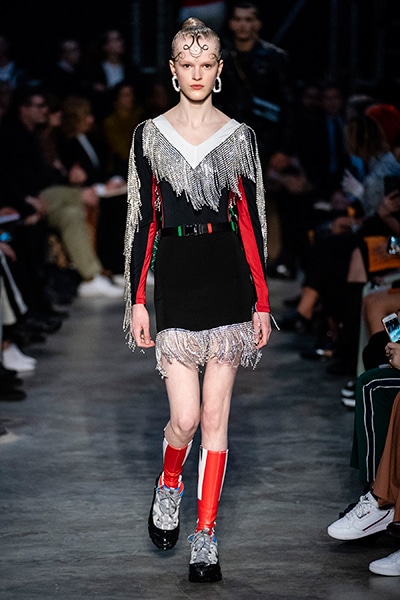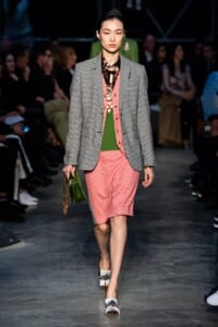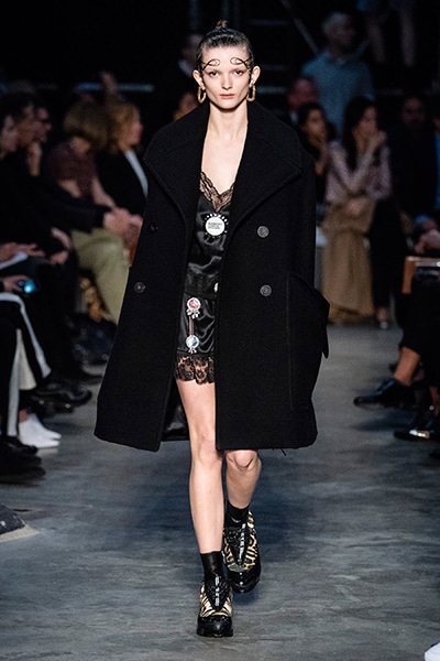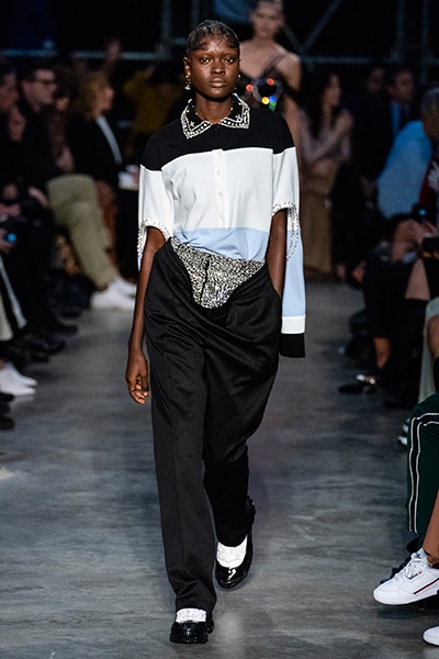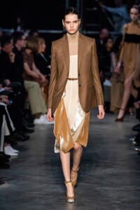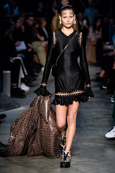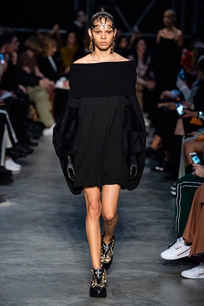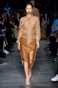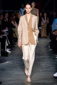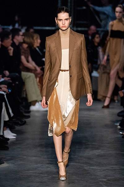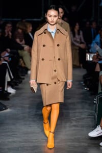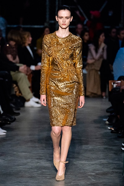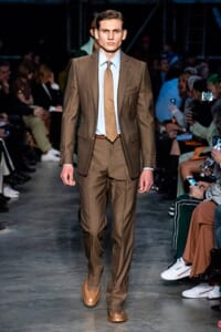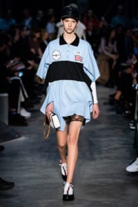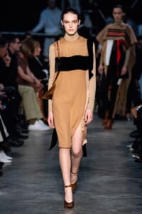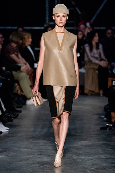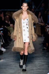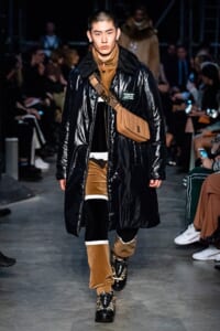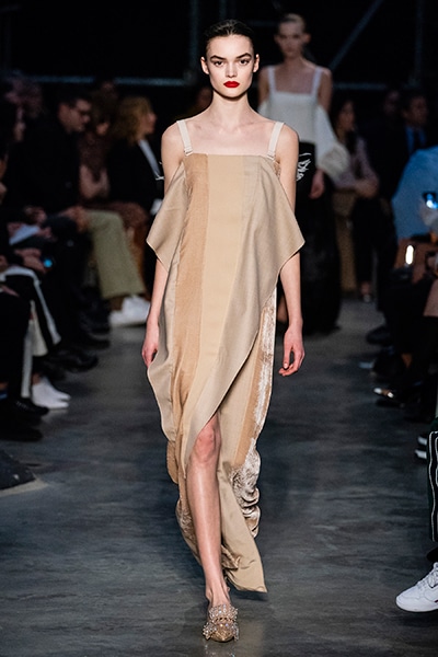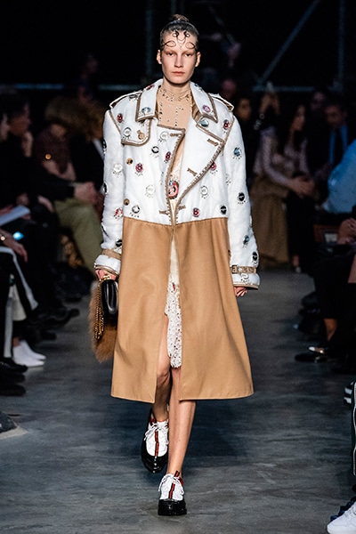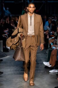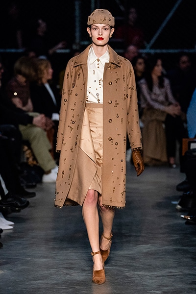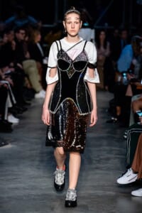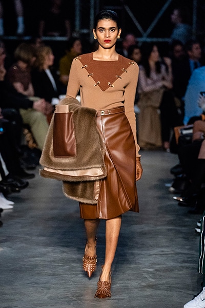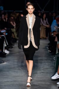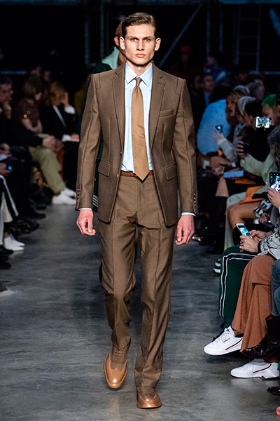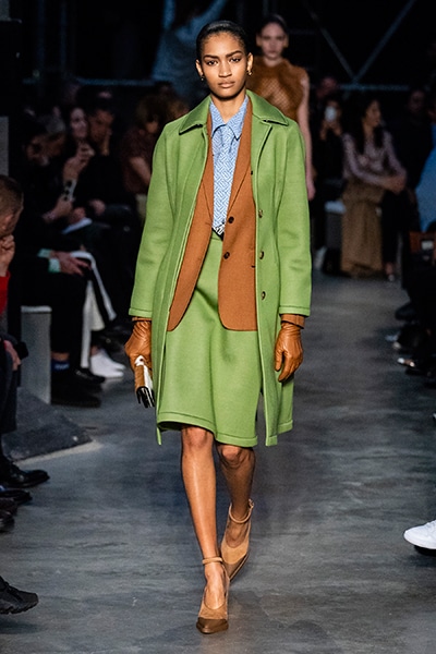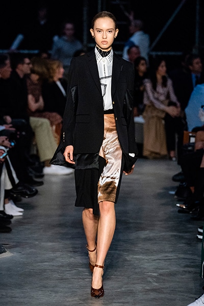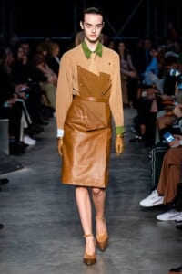 2シーズン目を迎えたリカルド・ティッシによるバーバリー。「テンペスト」と名付けられた2019年の秋冬コレクションは、イギリス文化のなかから、確立された構造や形式と、反抗的で自由奔放な側面が共存している様にフォーカスし、ガール、ボーイ、レディ、ジェントルマンの4つのキャラクターを展開。 赤とグリーンなどの強い色同士の掛け合わせ、トラッドと革新性が融合したようなパネル切り替えのトレンチコート、スポーティなドレスとアウターなど、相反する要素をリカルド流のゴシックムードとストリートロックテイスト漂うブリッティシュスタイルとして提案。