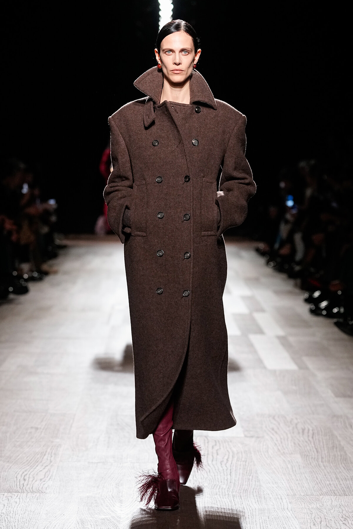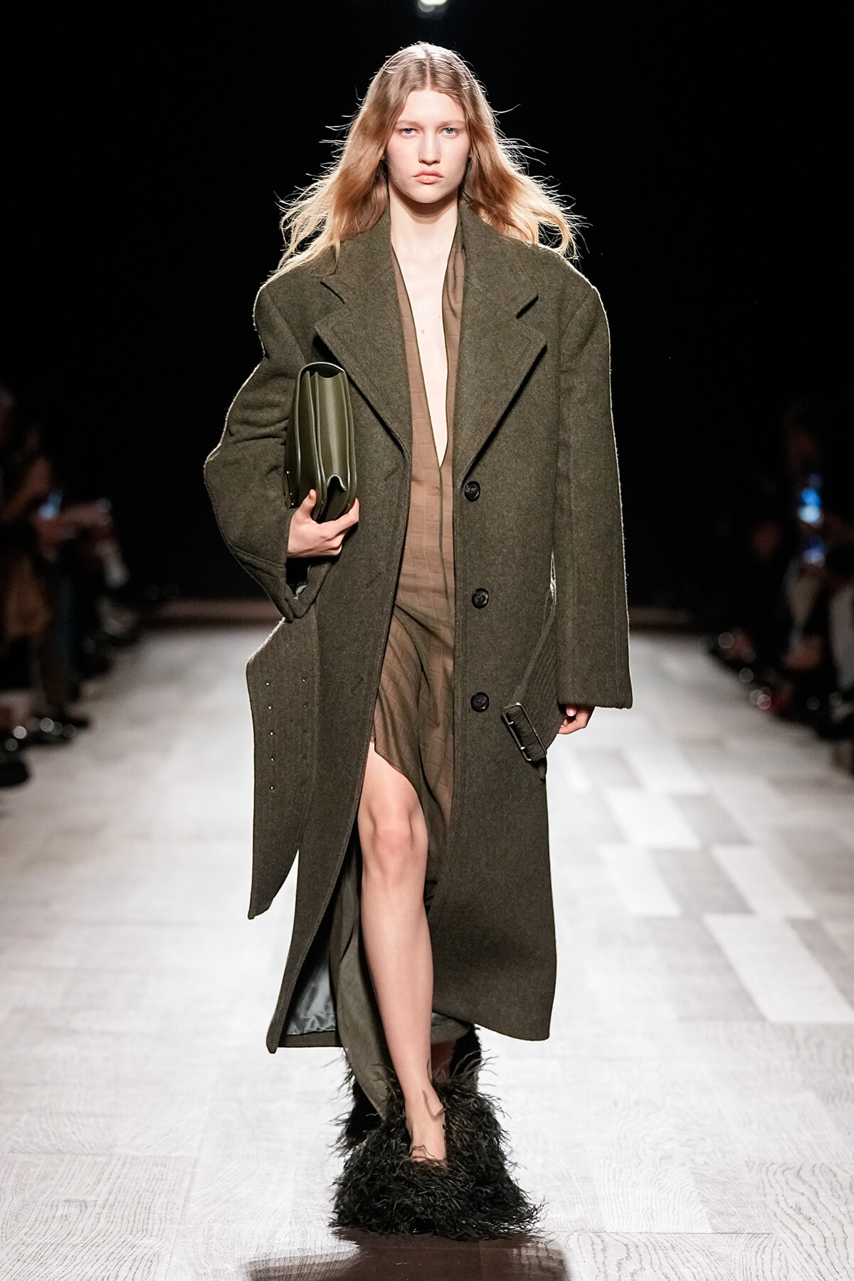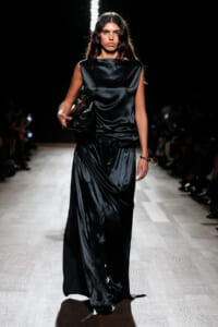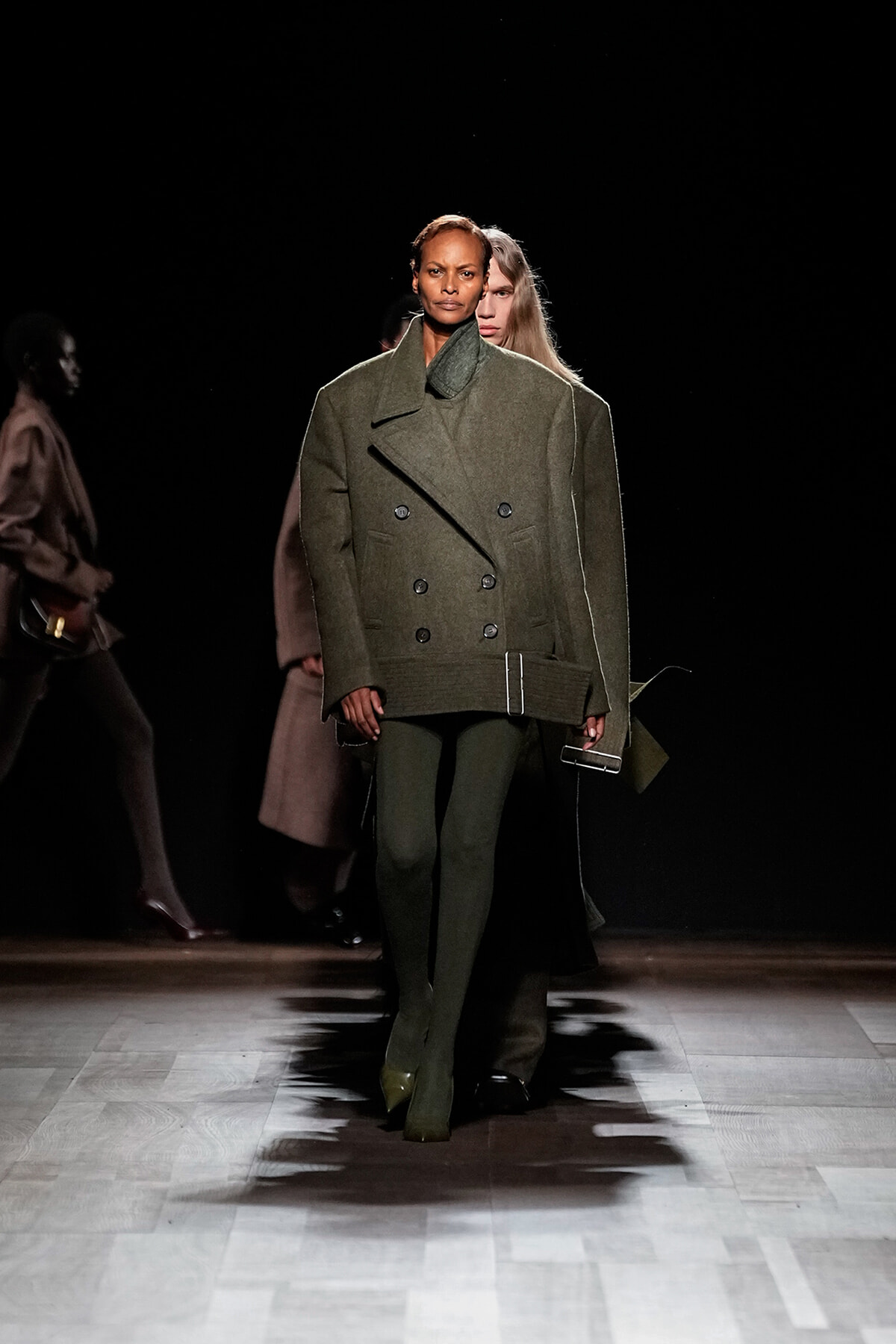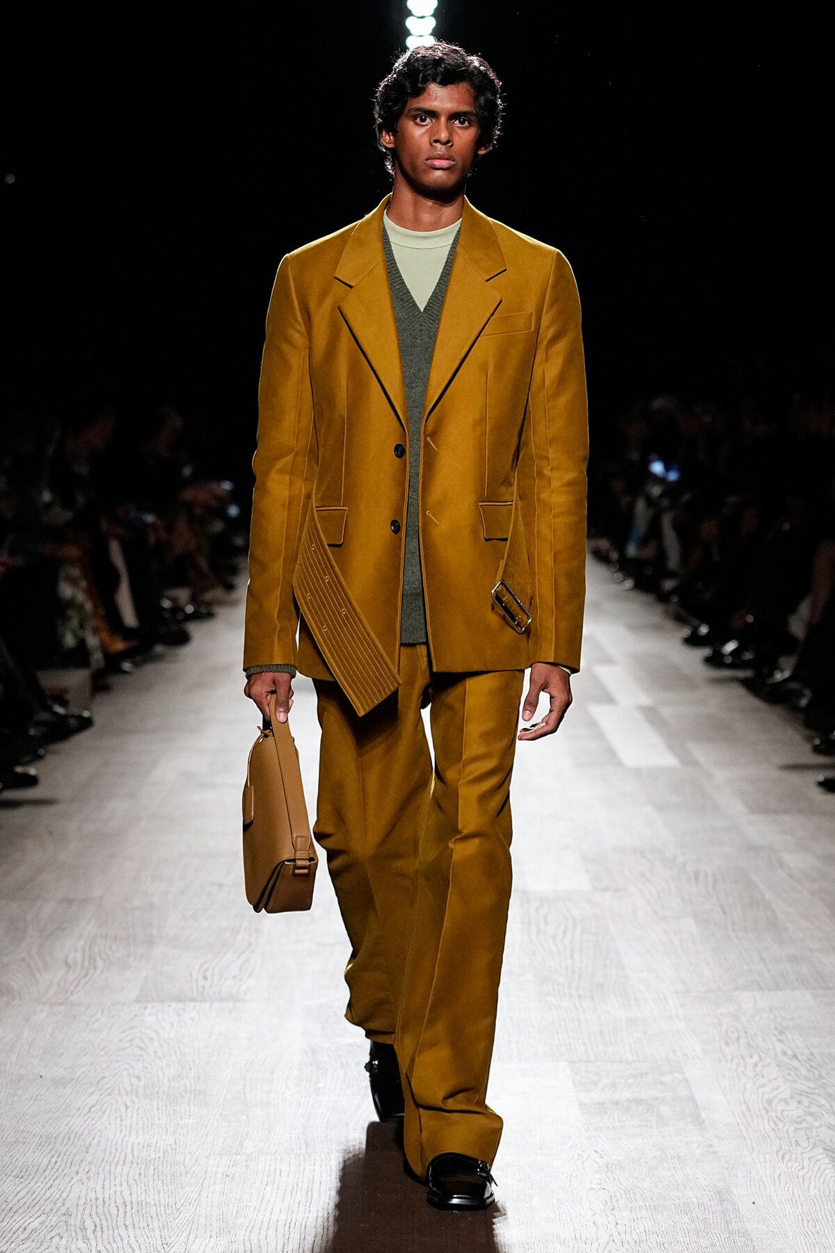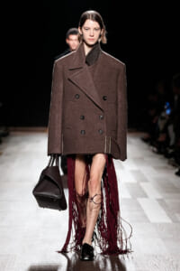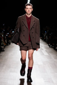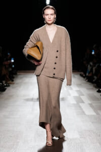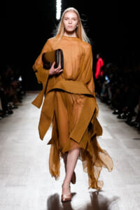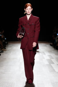 マクシミリアン・デイヴィス率いるフェラガモは、洗練されたミリタリーのムードと1920年代のエッセンスをランウェイに花咲かせた。「1920年代において服は、自由を謳歌する手段の代表のひとつでした。そしてその自由の表現は、私自身や私の財産、そしてフェラガモと共鳴するものなのです」(マクシミリアン・デイヴィス)
