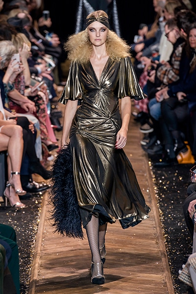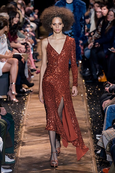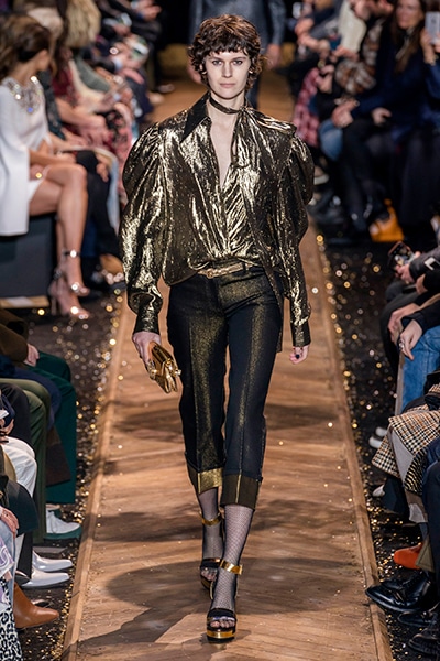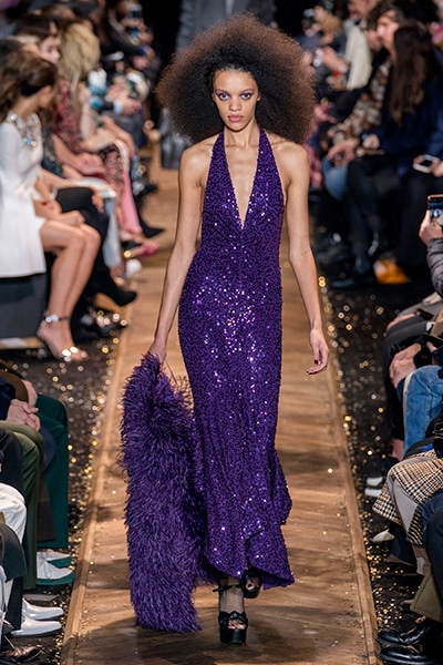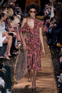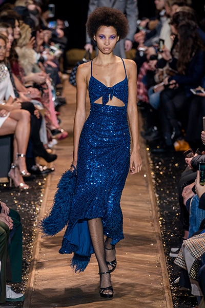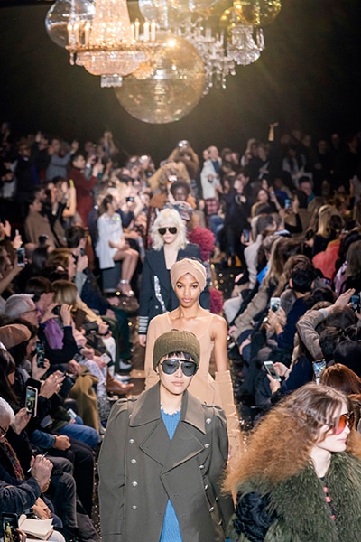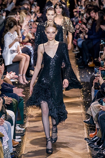 ヴィンテージ風のフローリングにベルベットのカーテン、そしてディスコボールにシャンデリア。まさにオールドスクールのボールルームのような雰囲気のショー会場で、マイケル・コースの秋冬コレクションは開催された。「Dreaming」をテーマに、フラワープリントドレスや70年代風のデニムルック、ラメやフリル使いなど、ディスコ風のグラマーを自由に解釈したスタイルを発表。またフィナーレには、歌手のバリー・マニロウがパフォーマンスし、1970年代の伝説的なクラブ「スタジオ54」とのカプセルコレクションを打ち出すなど、ニューヨークのエネルギッシュでクリエイティブな時代を現代に蘇らせた。