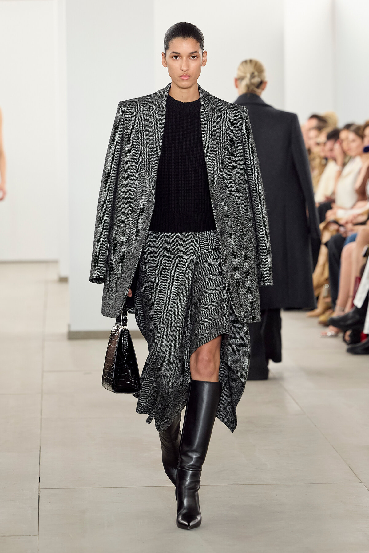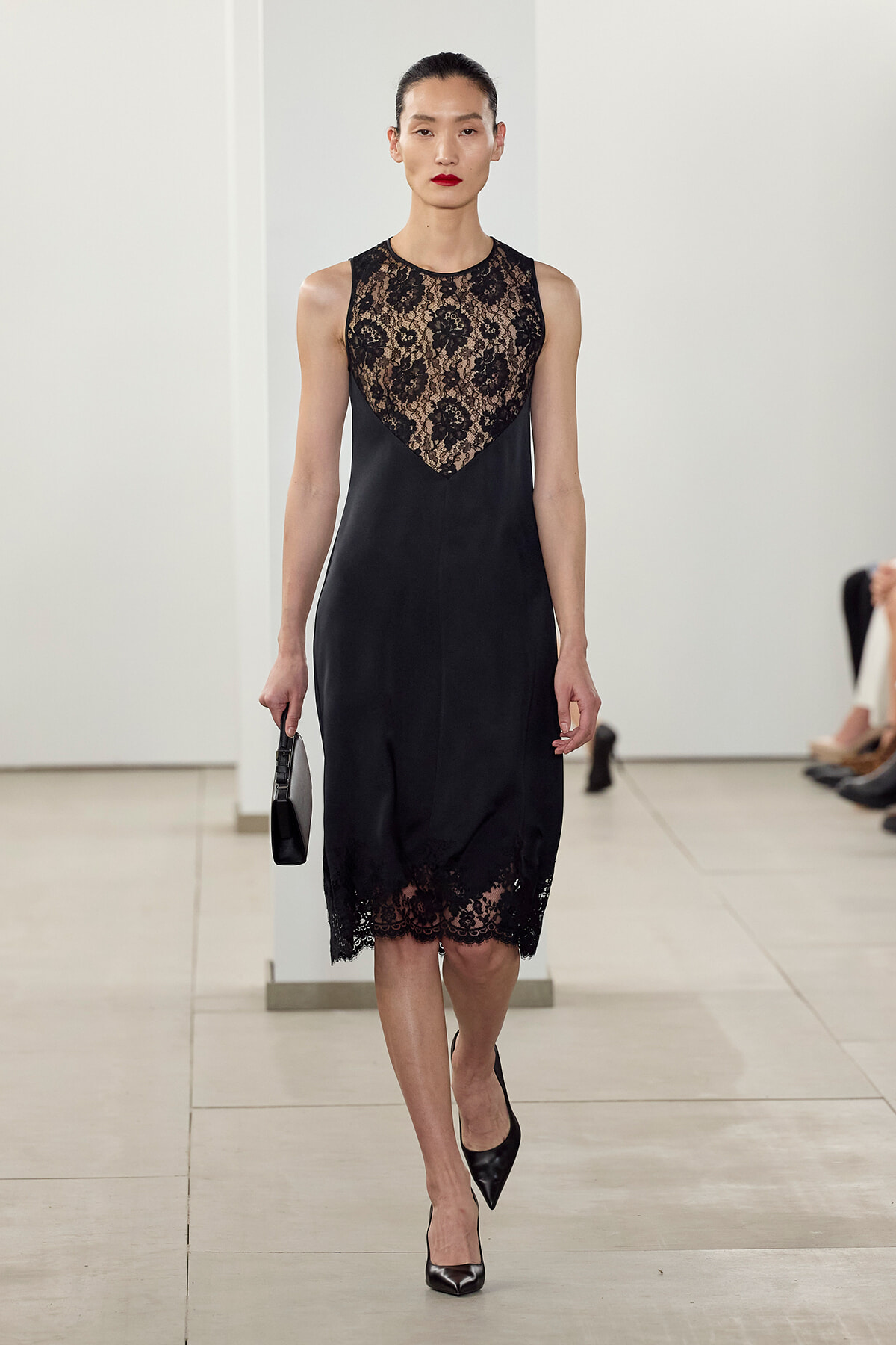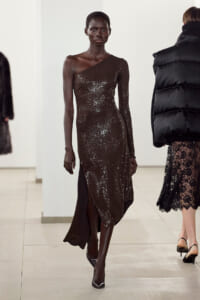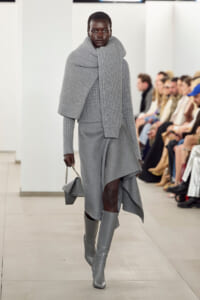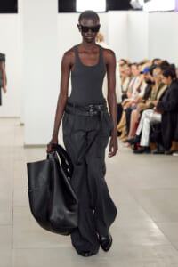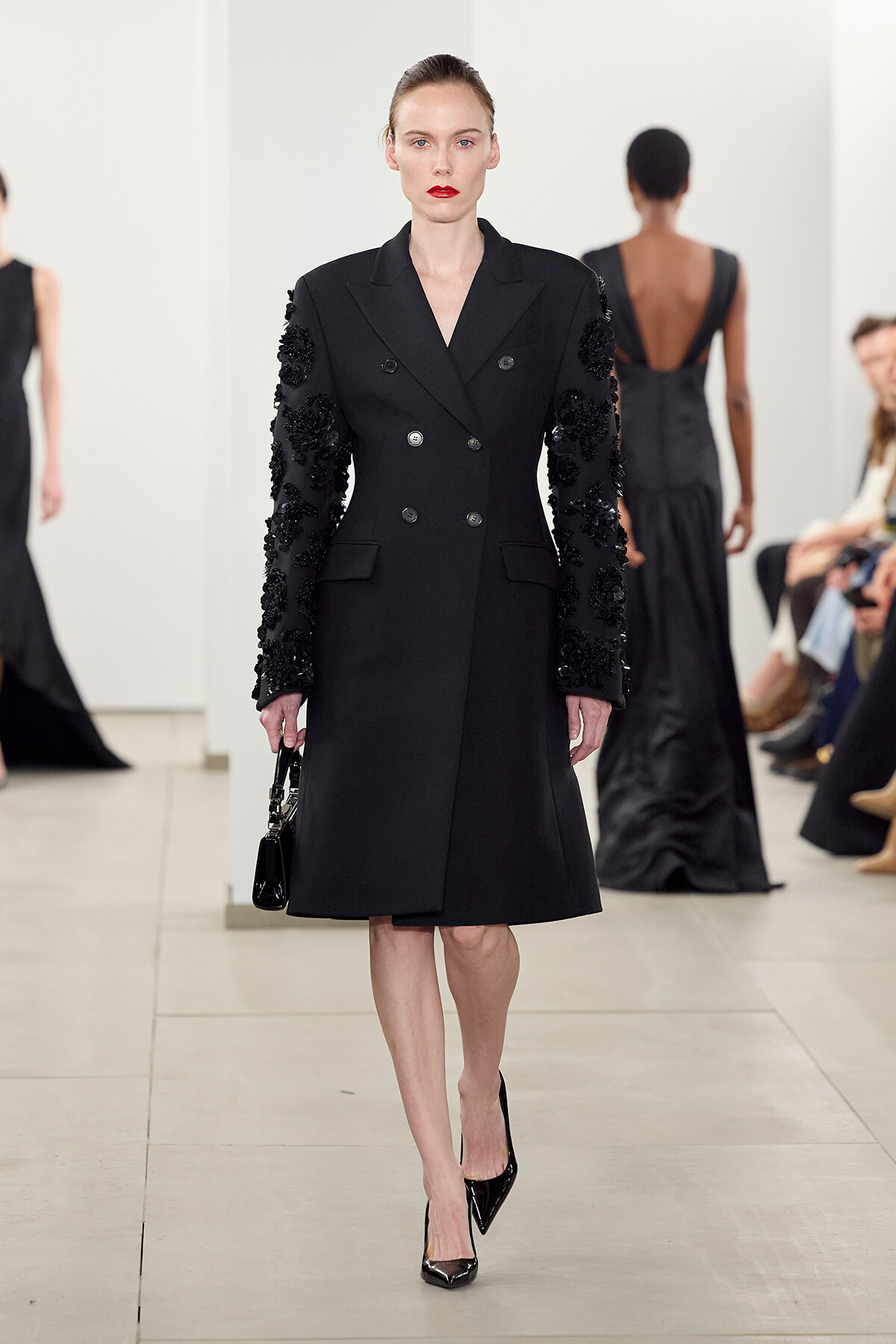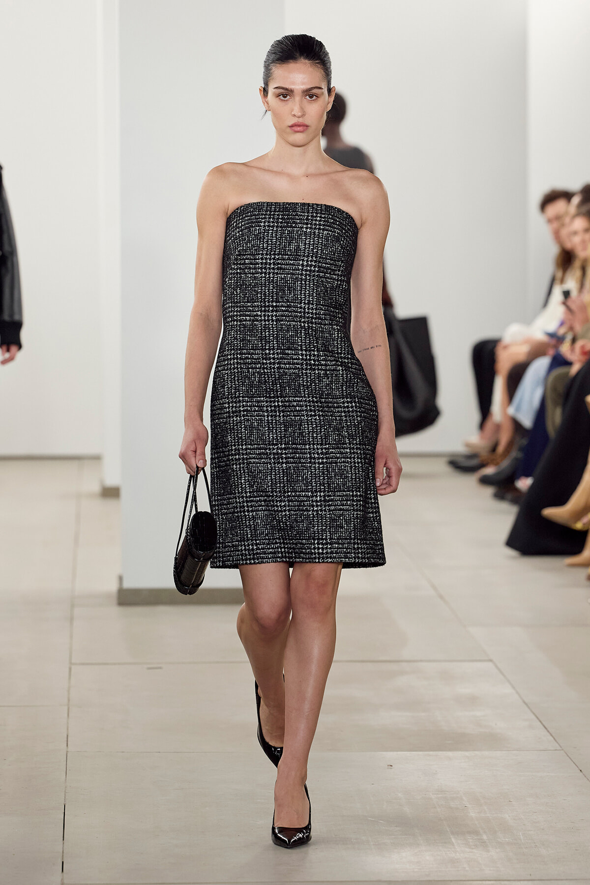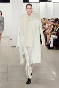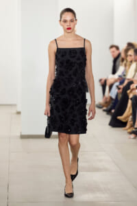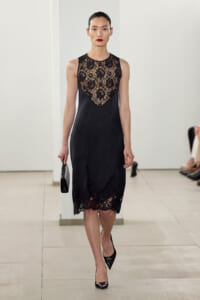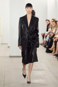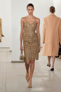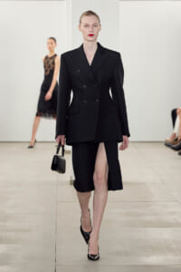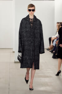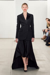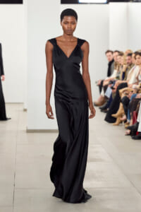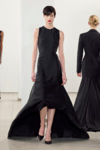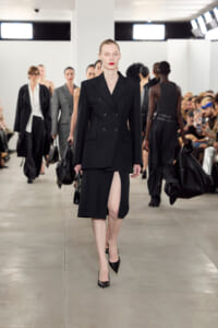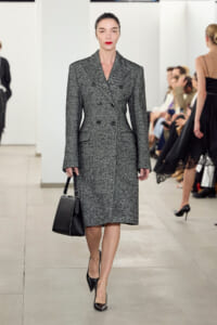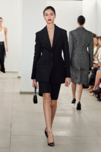 モデルたちは、アイコニックな螺旋階段から姿を見せ、シャープなテーラリングとしなやかなドレープをもつドレスやスカートのコーディネートに、現代のカジュアルなアティチュードをミックスしたルックで登場。タイムレスでグラマラスなスタイルを巧みに表現した。