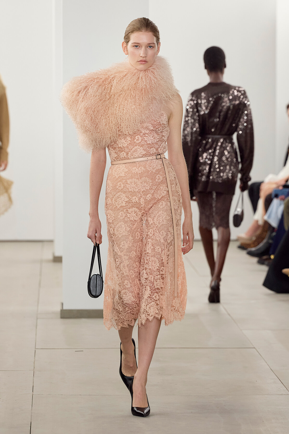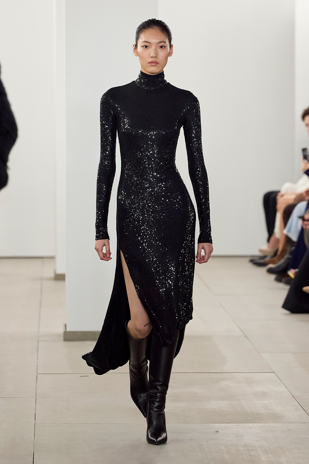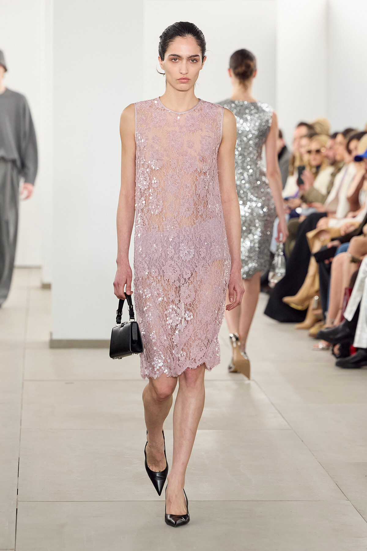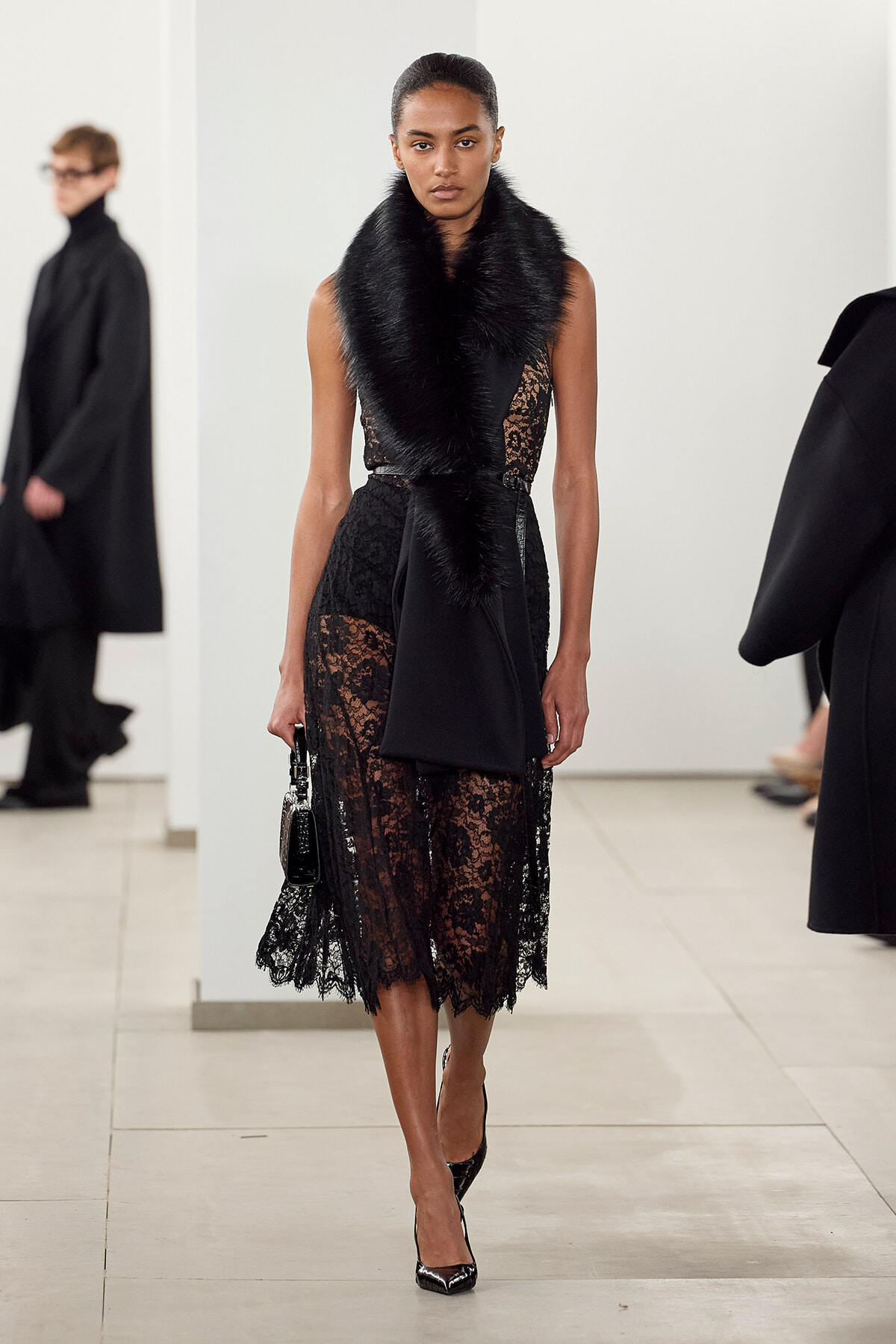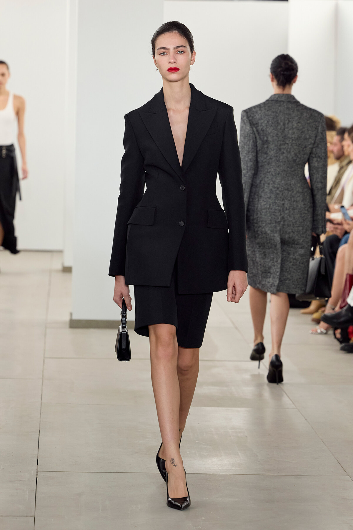 モデルたちは、アイコニックな螺旋階段から姿を見せ、シャープなテーラリングとしなやかなドレープをもつドレスやスカートのコーディネートに、現代のカジュアルなアティチュードをミックスしたルックで登場。タイムレスでグラマラスなスタイルを巧みに表現した。