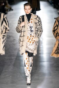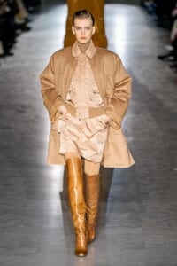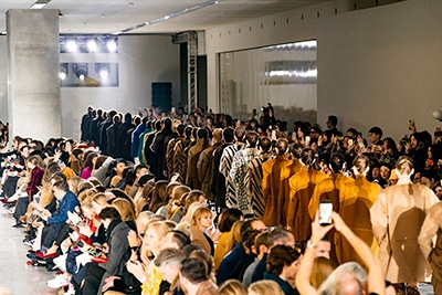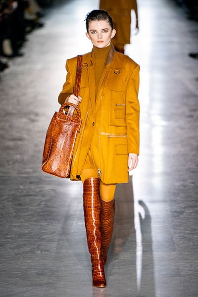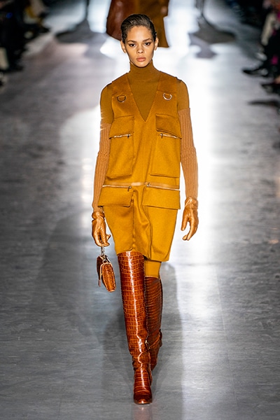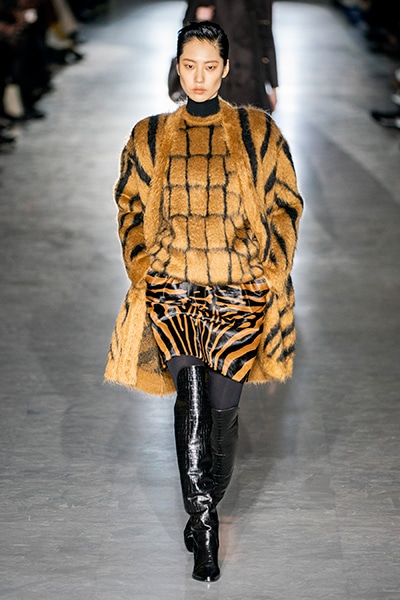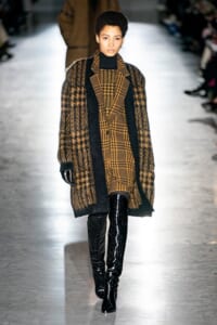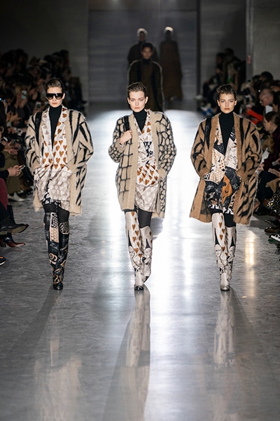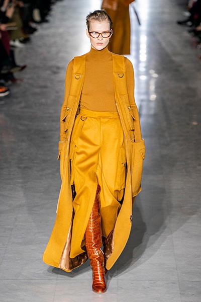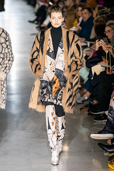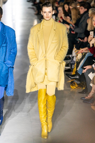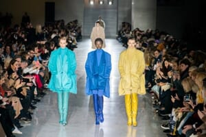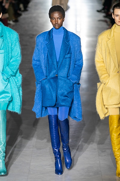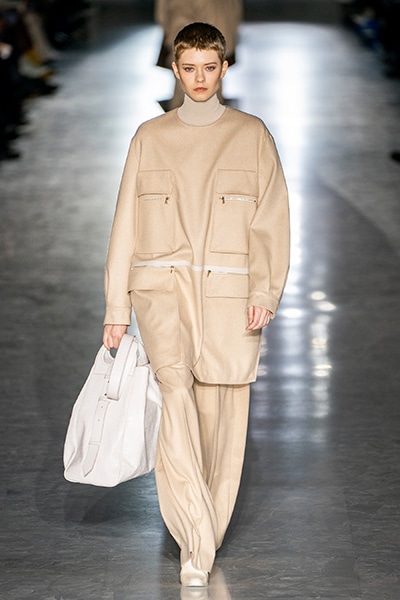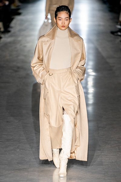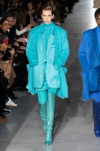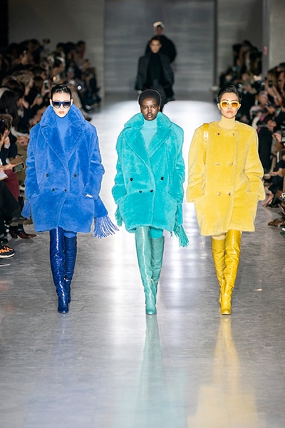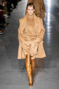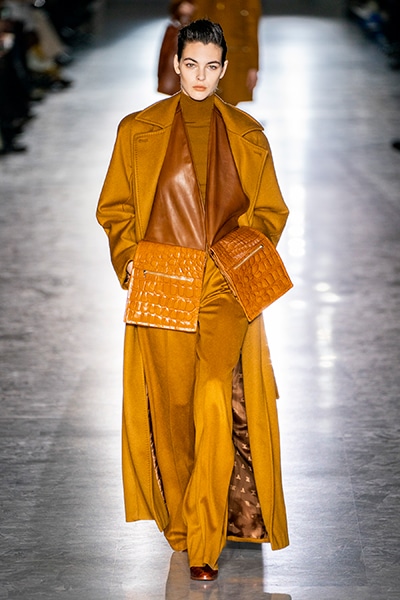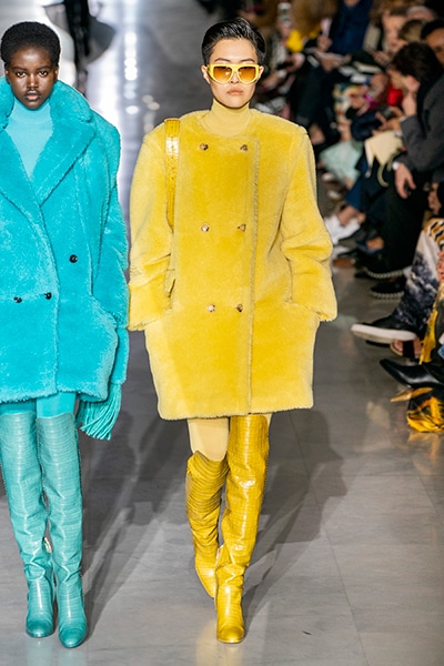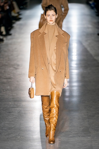 2019年秋冬のマックスマーラは、1990年代初頭にスーパーモデルたちが3,4人でランウェイを闊歩していた、女性がパワフルでセクシーな魅力を放っていた時代を思い出させた。 「グラマーが好き、私はそれを恐れないわ」。90年代のスーパーモデルでありマックスマーラのアイコン的な女性、リンダ・エヴァンジェリスタの言葉を引用し、女性に力を与えるスタイルとは何か?を改めて提案。キャメル、ブラウン、ツイードといったブランドらしい色を使いつつ、シルエットはパワーショルダーやメンズスーツのようなタフなデザイン。また、人気のテディベアコートは今季はシアン、セルリアン、コーンイエローと明るいカラーリングで登場。女性の特権であるグラマーなファッションをいま改めて楽しみたい! そんな思いが膨らむコレクション。