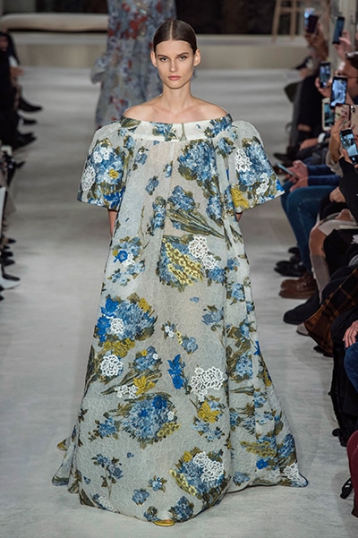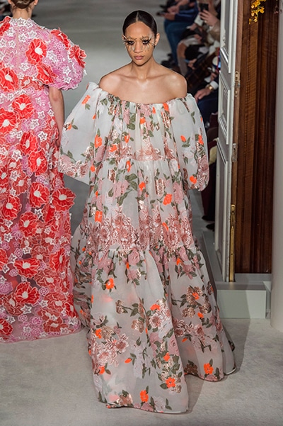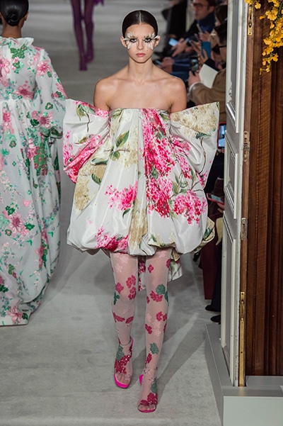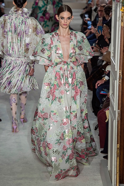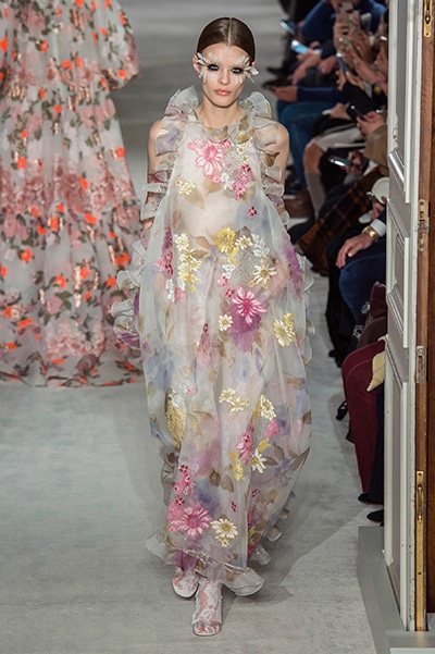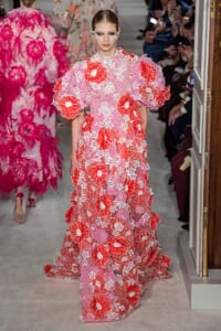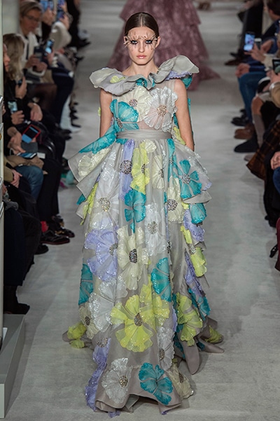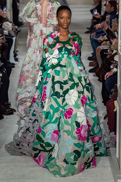 ヴァレンティノのオートクチュールは、咲き誇る花、虹色の輝き。