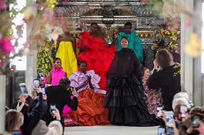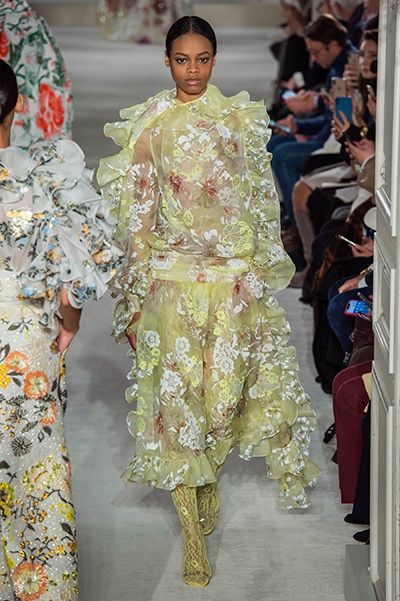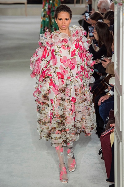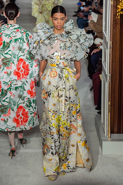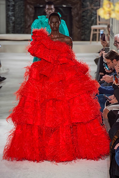 ラッフル、フリル、フリンジ、ボリューム、フラワー。 ヴァレンティノが得意とするロマンティックなディテールがより強くパワフルな色合いを纏って登場した2019年の春夏オートクチュール。 「あらゆるものはうつろい、変化と進化を経て繰り返し、花開く」 そんな変化するクチュールをテーマに、劇的に美しいモードな花々が咲き乱れた。
