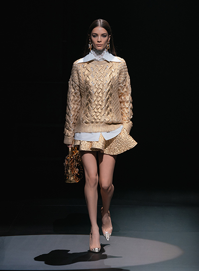 パンデミックの影響で劇場が閉鎖されているミラノ。21年秋冬シーズンの「ヴァレンティノ アクト コレクション」は、ミラノの歴史と文化の象徴、劇場「ピッコロ・テアトロ・ディ・ミラーノ」で無観客ショーのライブ配信を行った。「いま劇場を再開しショーをすることは、パンクのジェスチャーと言っていいでしょう。これは私たちの国の文化的な場がリスタートするプロセスでもあるのです」とクリエイティブディレクターのピエールパオロ・ピッチョ―リは、自身のインスタグラムで述べた。舞台ではイギリス出身のシンガー、コジマがミラノ・ジュゼッペ・ヴェルディ交響楽団の弦楽五重奏とともに、圧巻のパフォーマンスを披露した。