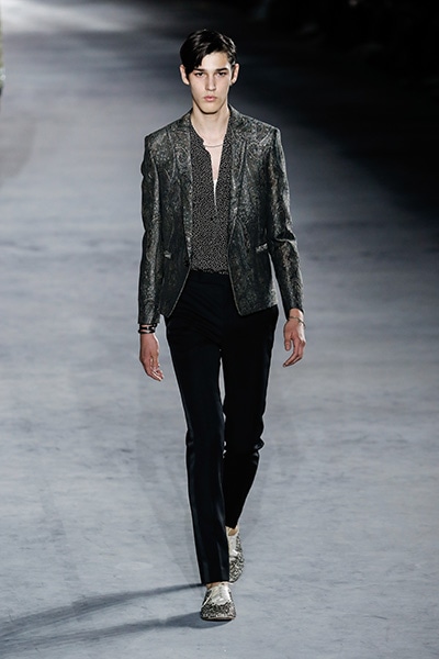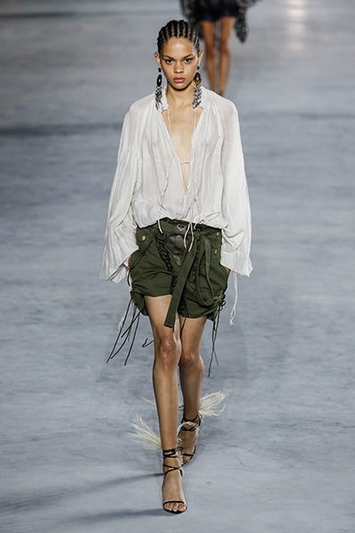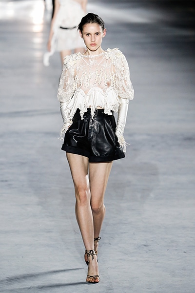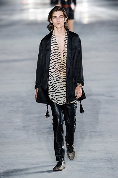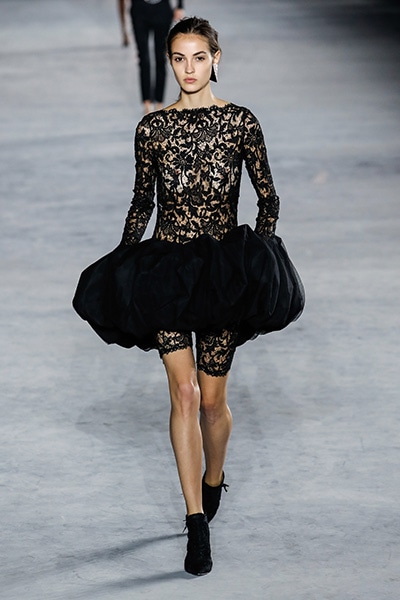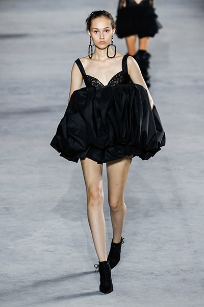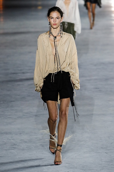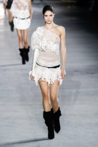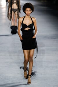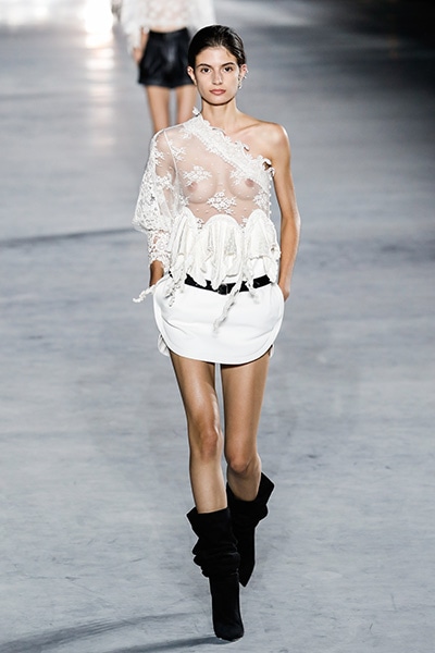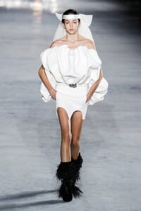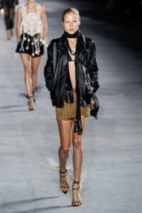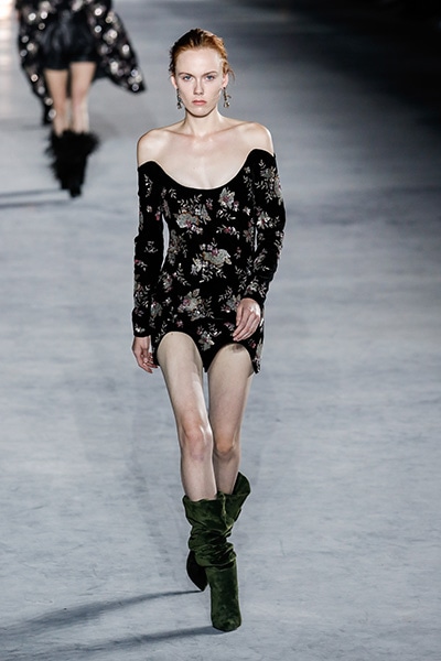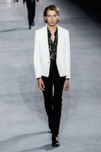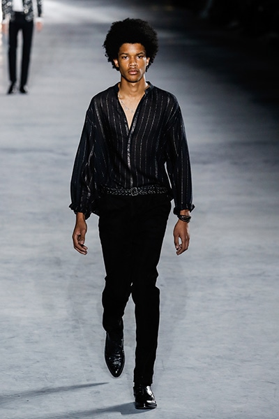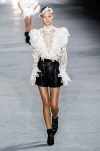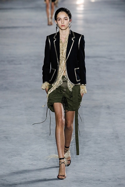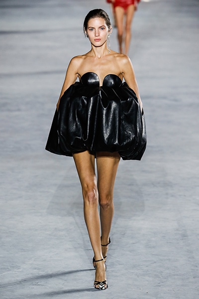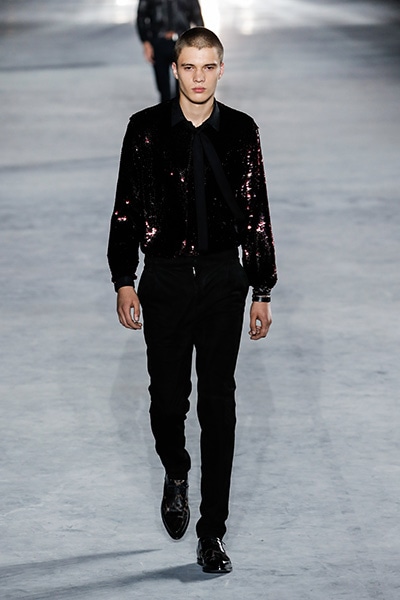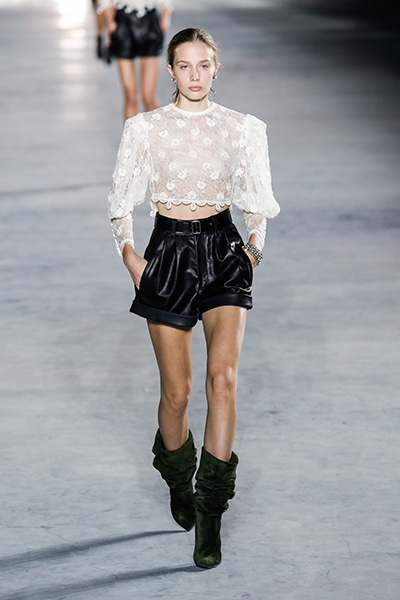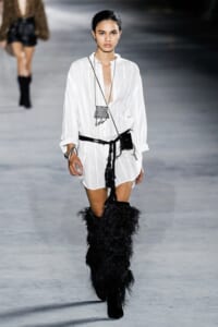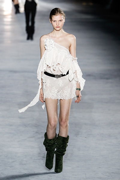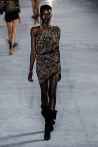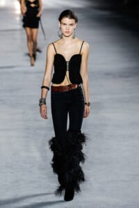 サンローランはトロカデロ広場でドラマティックなショーを開催。この3週間ほど前にイヴ・サンローランの長年のパートナー、ピエール・ベルジェが亡くなったばかり。ショーの始まりを告げるエッフェル塔の点滅が、彼に別れを告げているようだった。