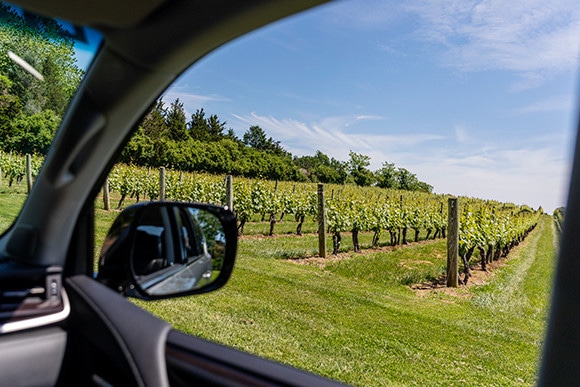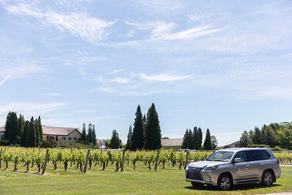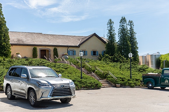 ウォルファー・エステート・ヴィニヤードのワイン畑と、レクサスのSUV「レクサスLX」。その高級感あふれるエクステリアは、大人のためのラグジュアリーなアウトドアライフにも適したスタイリッシュさ。