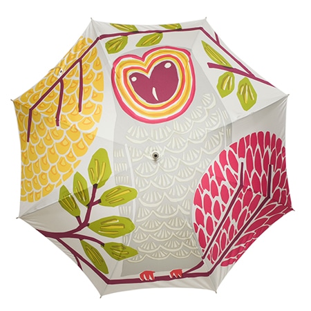 「動物のフォルムに興味を持っています。でも、可愛らしい動物を描こうとしているわけではないんですよ」。だからこそ、味のある表情、姿なのですね。たとえば昨年の傘コレクションのフクロウもナマケモノも、見るほどに気になります。