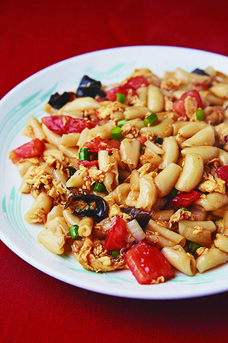 まず訪れたのは、東新宿の山西亭(A)。麺の故郷、中国・山西省の郷土料理を出す店だけに、レパートリーは数知れず。現地では、麺の種類がなんと400種類以上もあるのだとか。イタリアのオレキエッテにも似た「猫耳麺」もそのひとつだ。山西省では家庭の味だそうで、トマトや卵などと炒める五目炒めは定番メニュー。つるんとなめらかな食感の中にもシコッとした歯ごたえがあり、つい後を引く旨さだ。