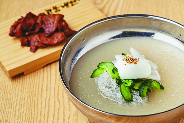 カフェのような店内で、冷麺だけでも気軽に楽しめるカジュアルさが魅力。ビビン冷麺もおすすめ。キムチ餃子など餃子類も。