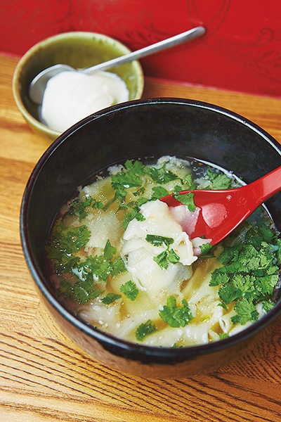 羊を煮込んだ塩味「ちぎり麺」¥880。ヨーグルトを入れて、本場モンゴル風味に。