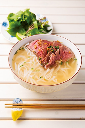 牛モモ肉のローストビーフやハーブをのせた、スガハラ フォーの「牛肉のフォー」¥1,296